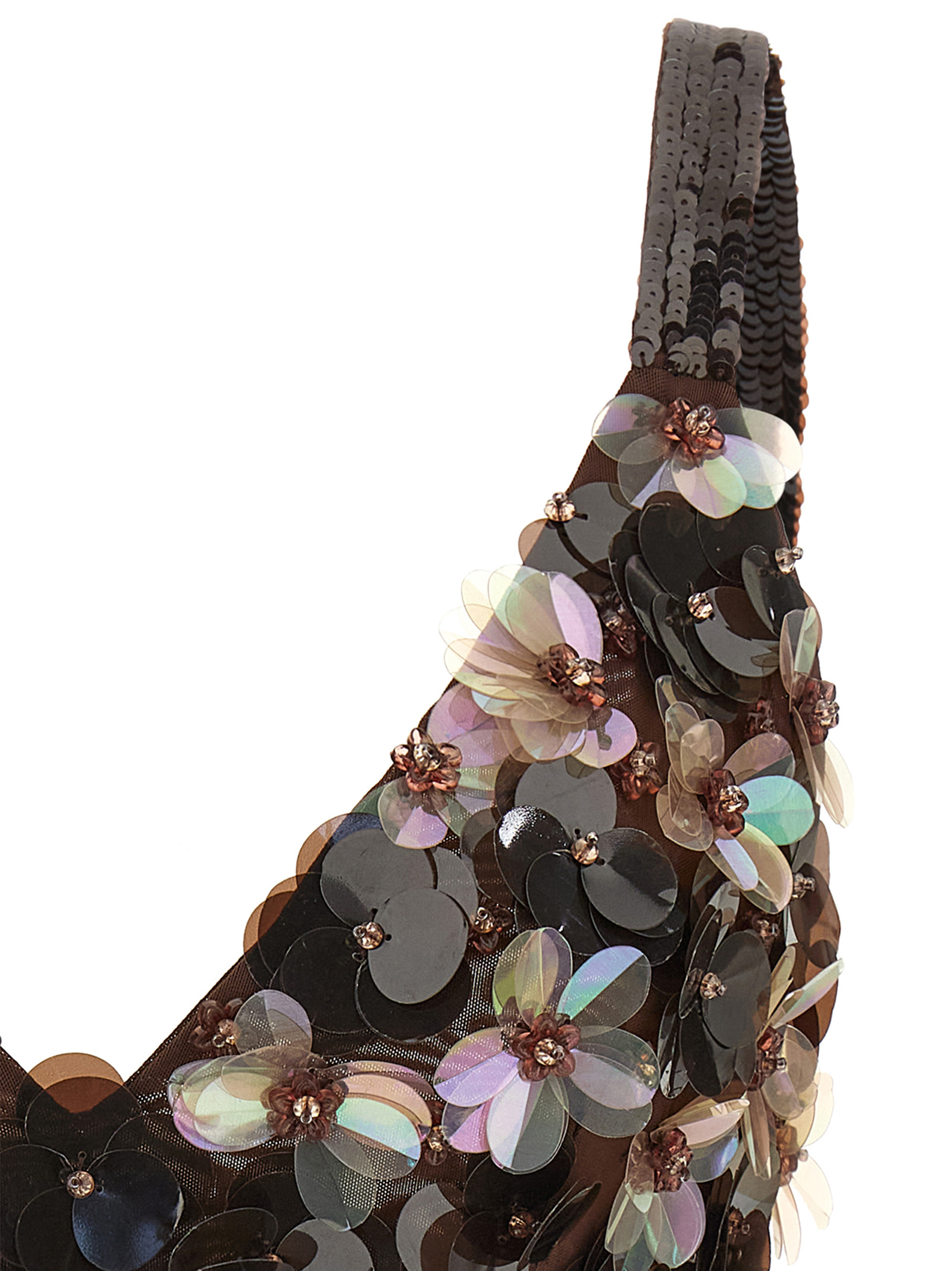 Топ 'Gym' з тканини з об’ємною 3D флористичною вишивкою по всій поверхні, у стилі короткого бралету, з V-подібним вирізом, широкими бретелями та спинкою, прикрашеною паєтками, із застібкою на гачок ззаду.