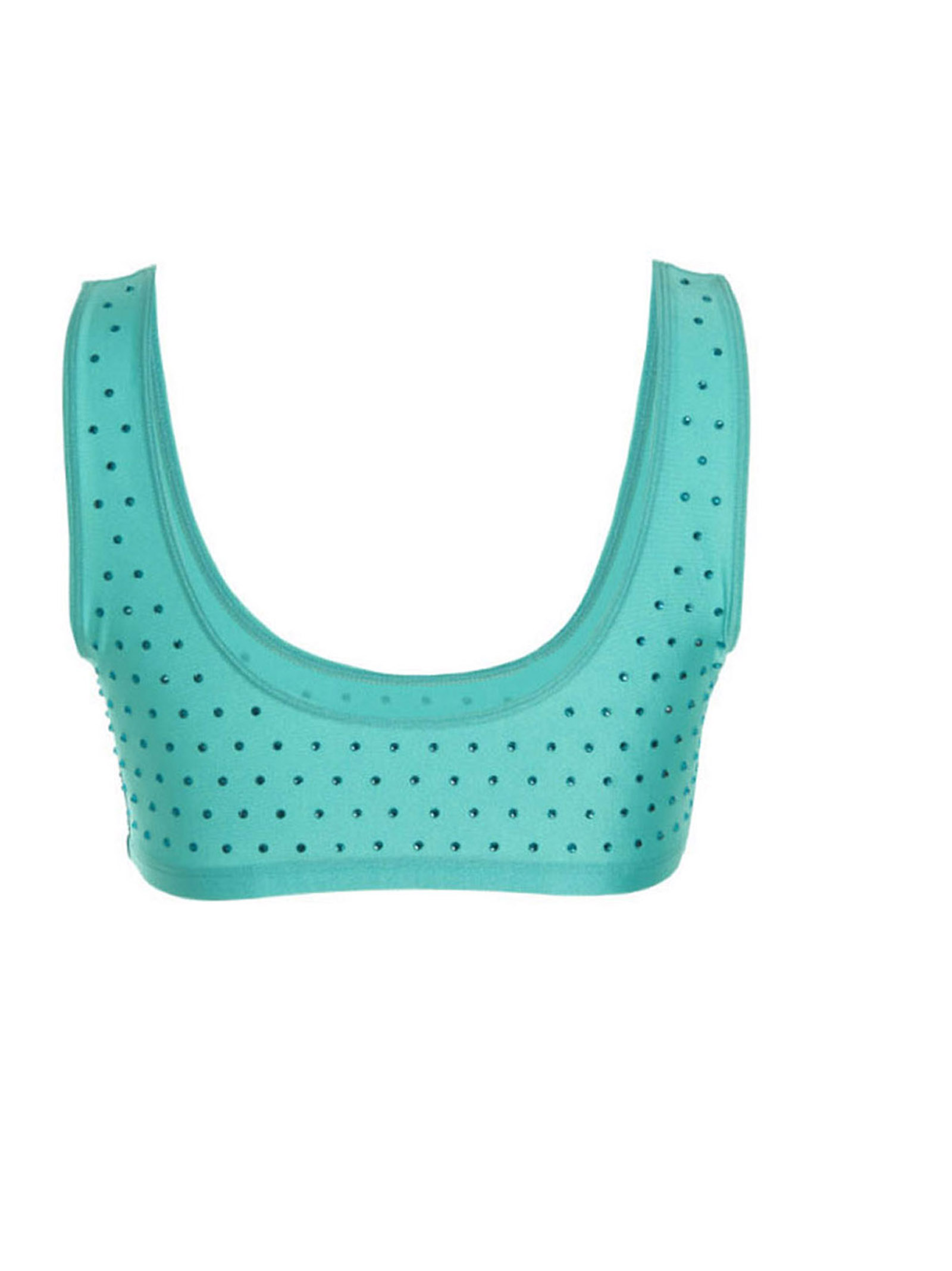 'Hollywood' блискучий лікра безрукавний топ з аплікацією з паєток, плечовими straps і укороченим стилем.