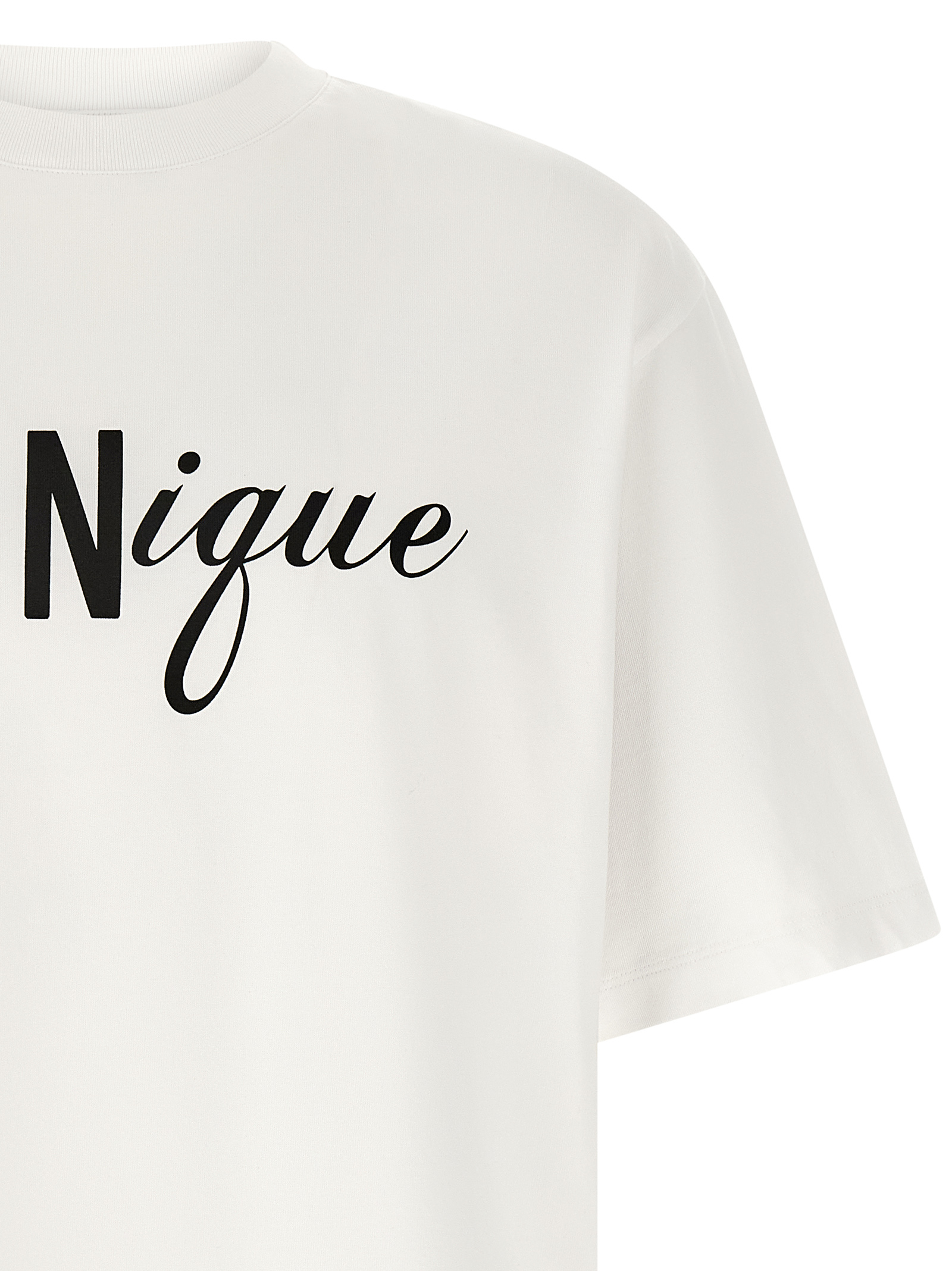 'ICONique' футболка з бавовняного джерсі з принтом спереду та ззаду, круглий виріз, короткі рукави зі спущеним плечем.