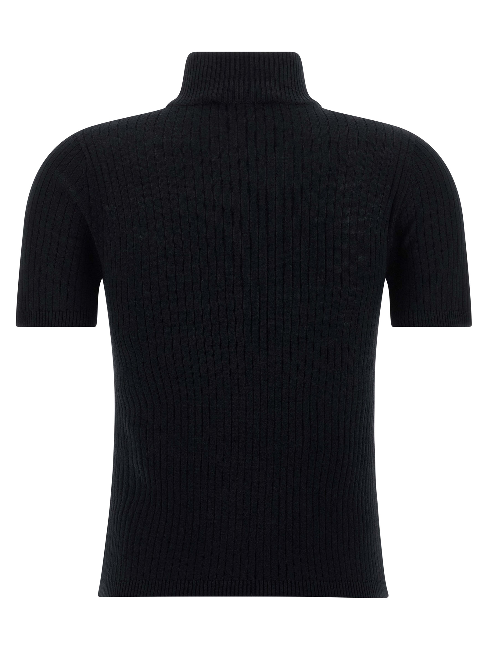 'Jnagy' светр з ribbed вовни та шовку, високий комір і короткі рукави.