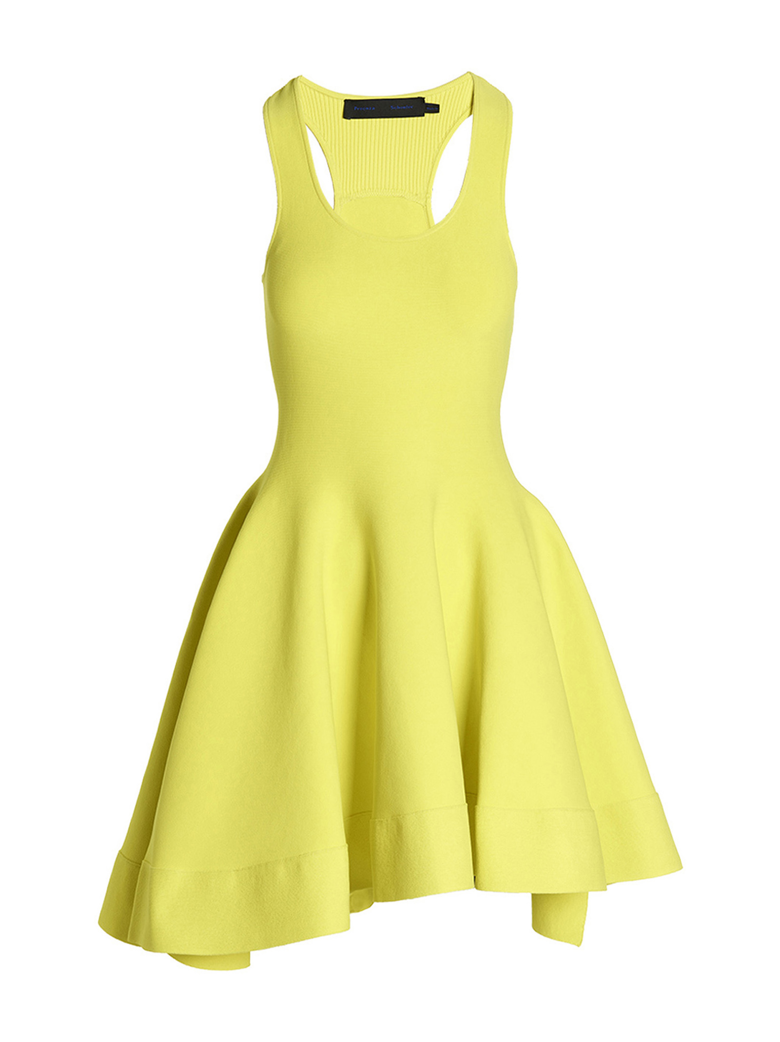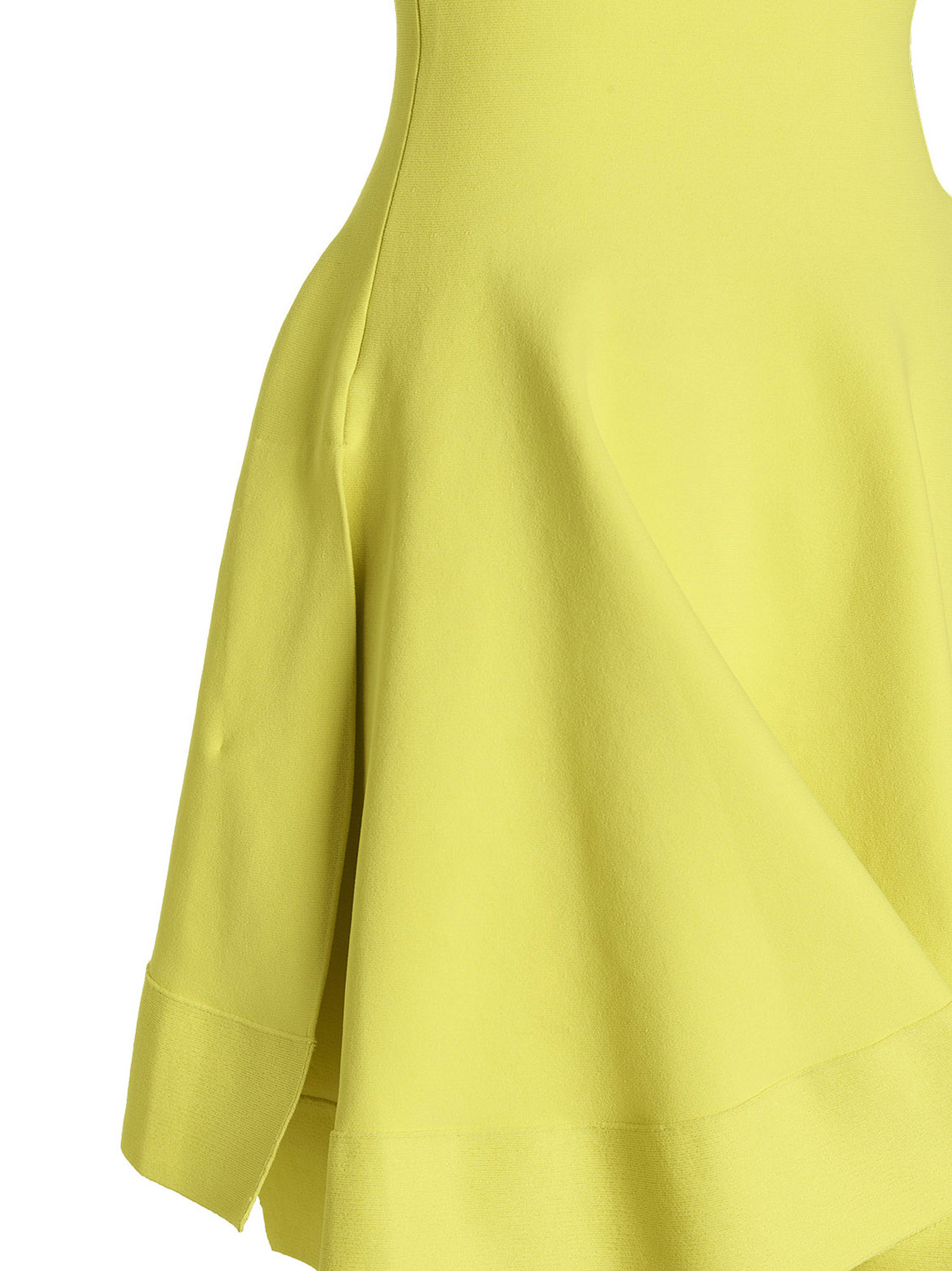Viscose blend knit dress with round neckline, wide skirt with asymmetric hem and a side split on the hem.
