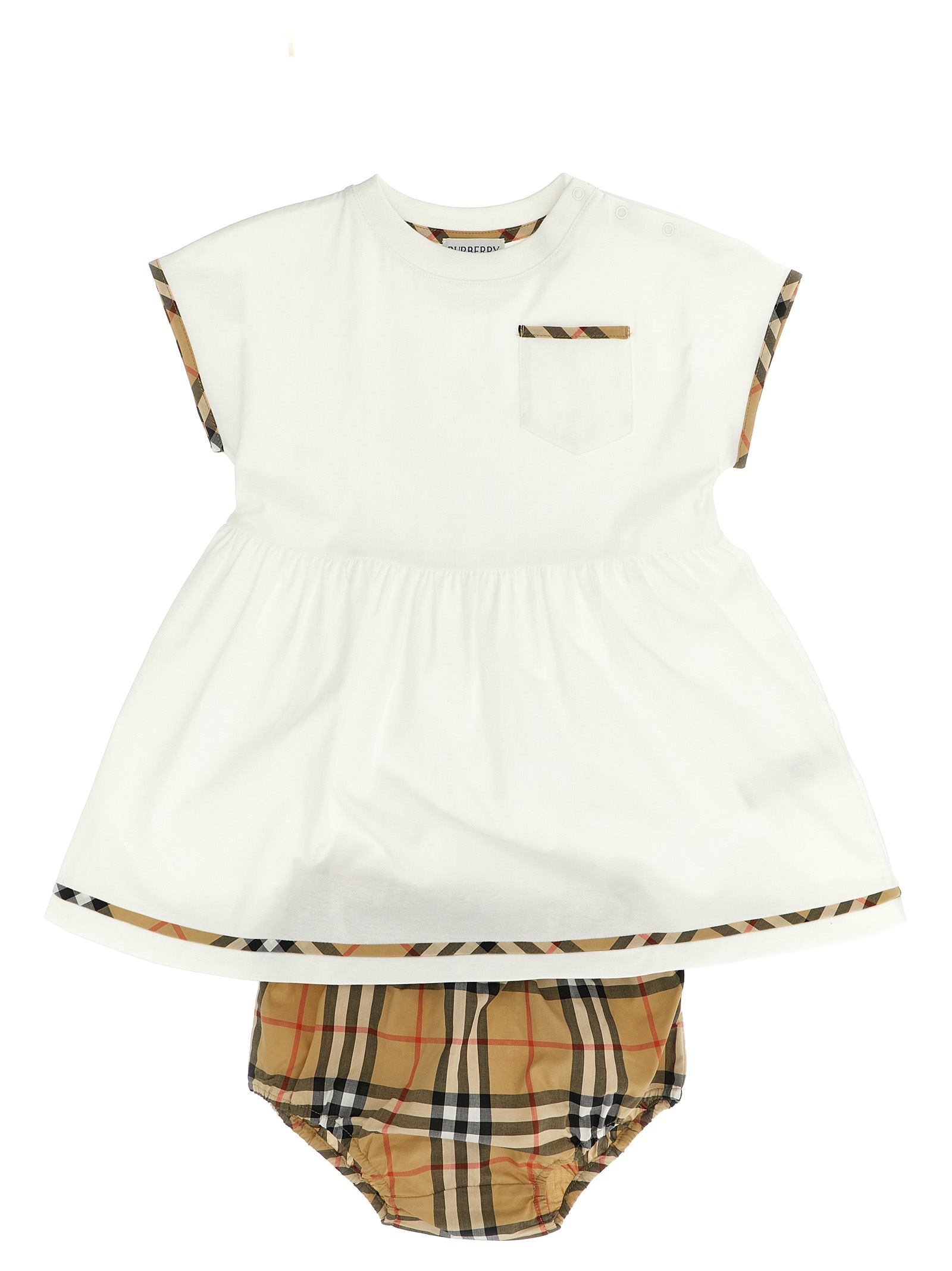 ДІТИ Комплект 'Lea', що складається з сукні з бавовняного джерсі з деталями Burberry Check, круглий виріз, нагрудна кишеня, короткі рукави, кнопки на лівому плечі та бавовняних шортів стилю Burberry Check, модель блузон, еластичний пояс.
