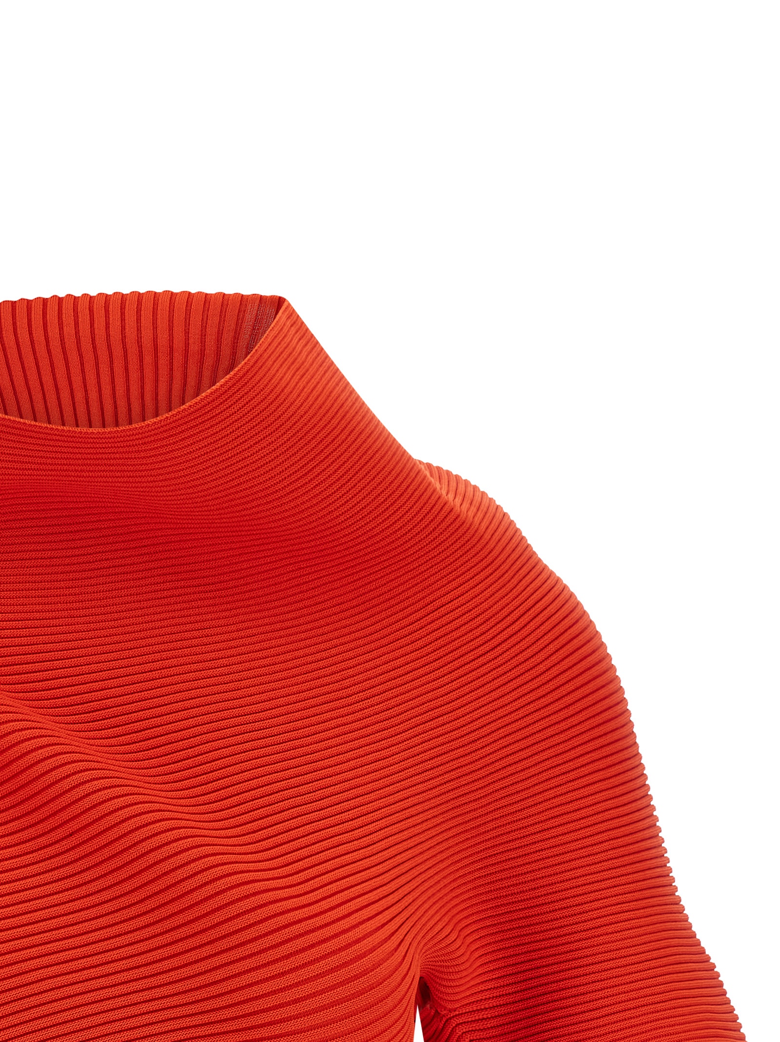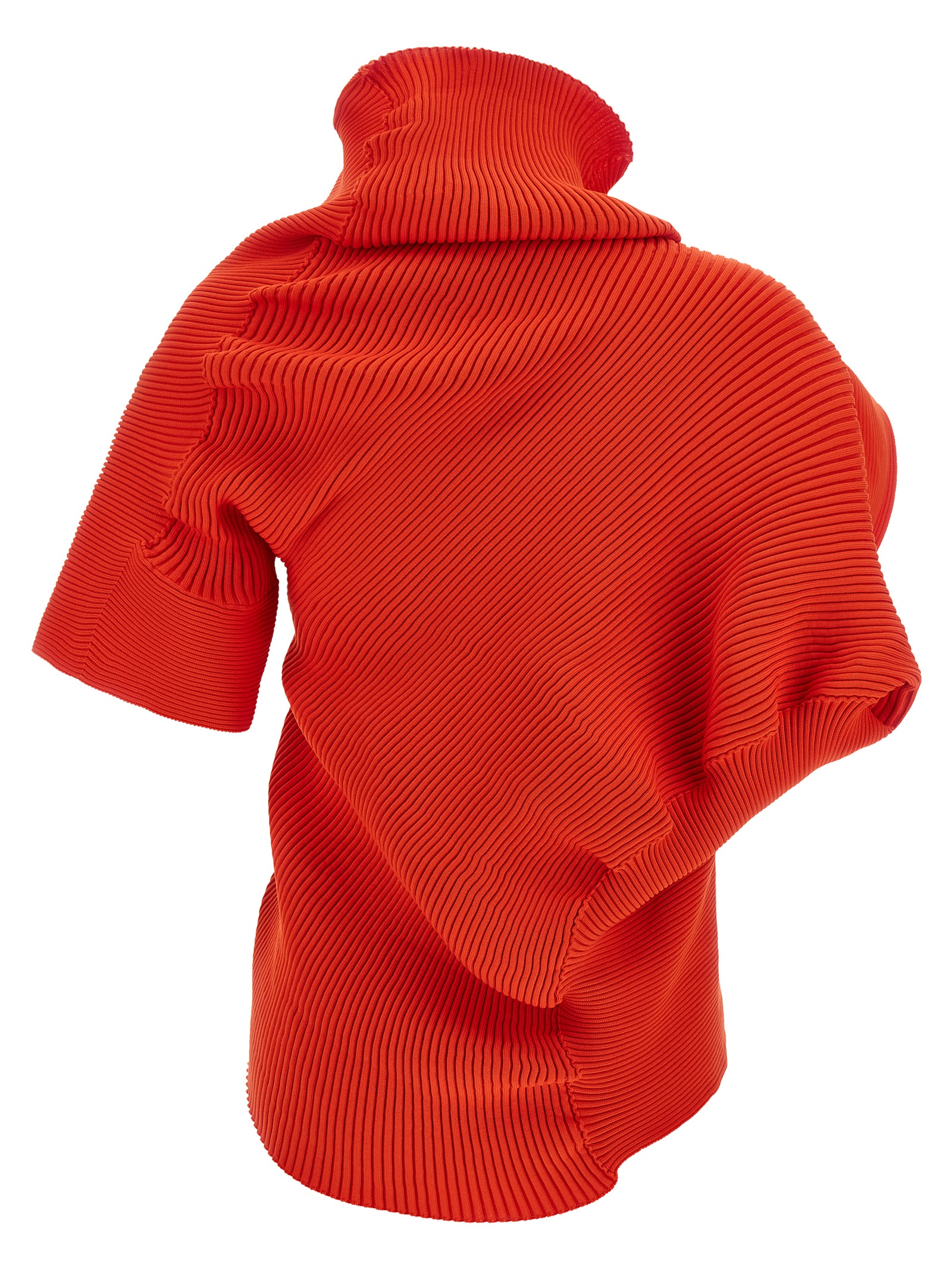 'Life form' еластичний в'язаний топ з рифленим візерунком, трубчасті форми, асиметричний фасон, широкий високий горловий виріз і скошені короткі рукави.