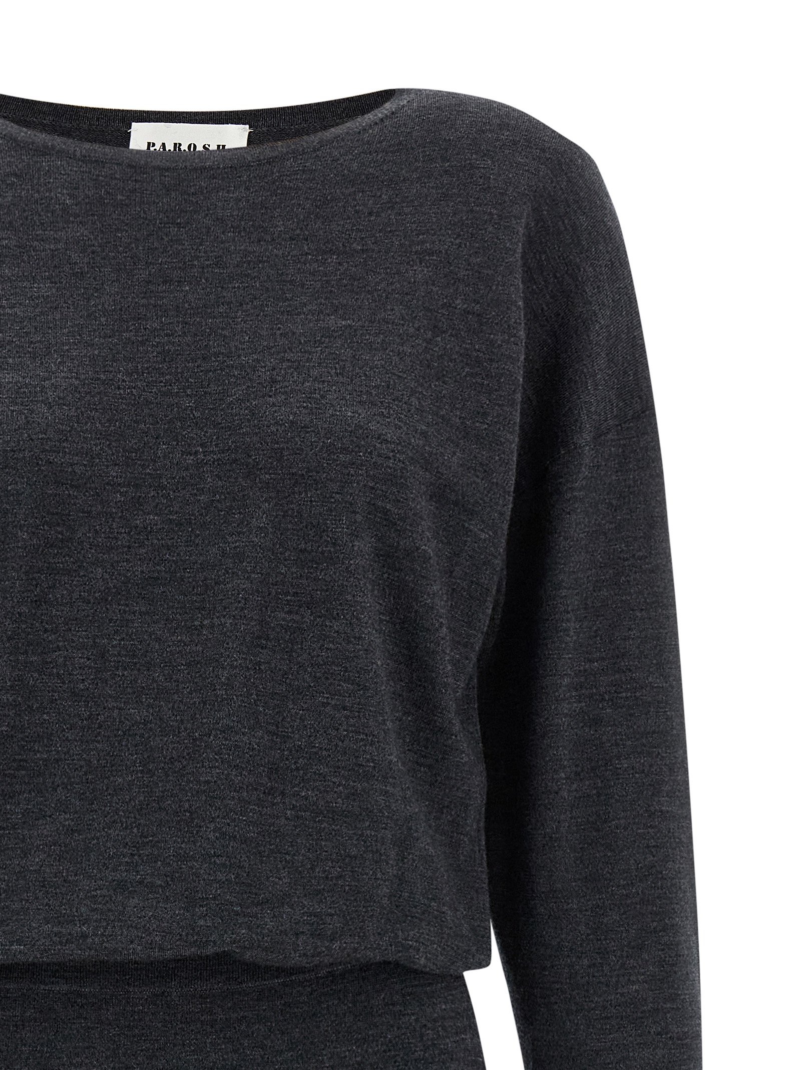'Lime25' вовняна та кашемірова міді сукня з круглим вирізом, еластичним поясом, що дозволяє злегка зрушити верхню частину, знімні підкладки на плечах, довгі рукави-ліхтарики з манжетами, бічний розріз.