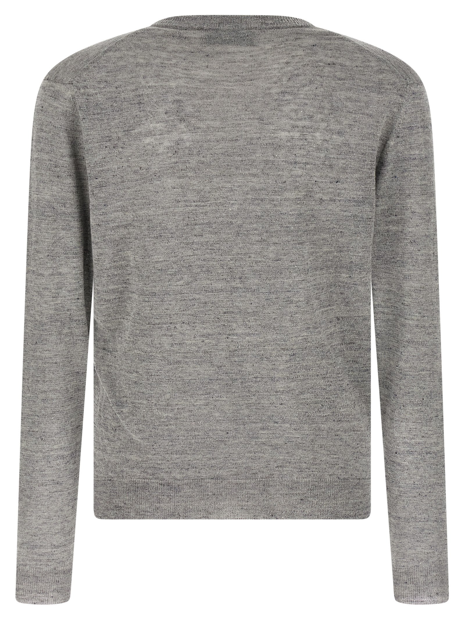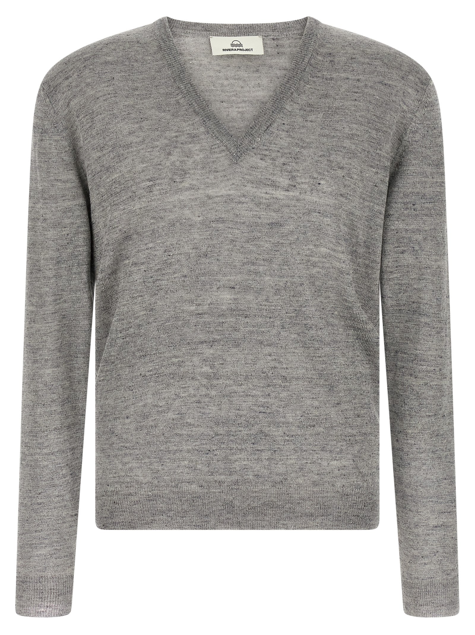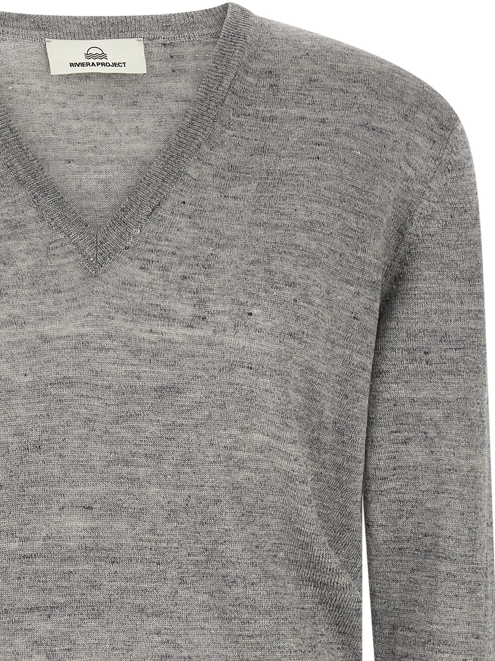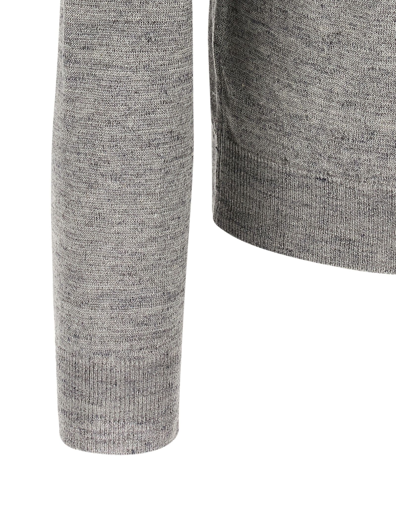 Меланжевий светр з суміші льону та шовку, V-подібний виріз, довгі рукави з манжетами та планка по низу.
