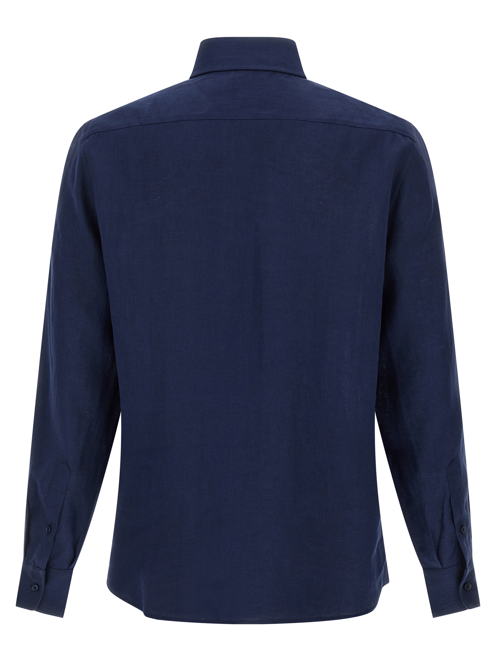 Льняна сорочка з французьким коміром, переднє закриття на гудзиках, довгі рукави з манжетами.