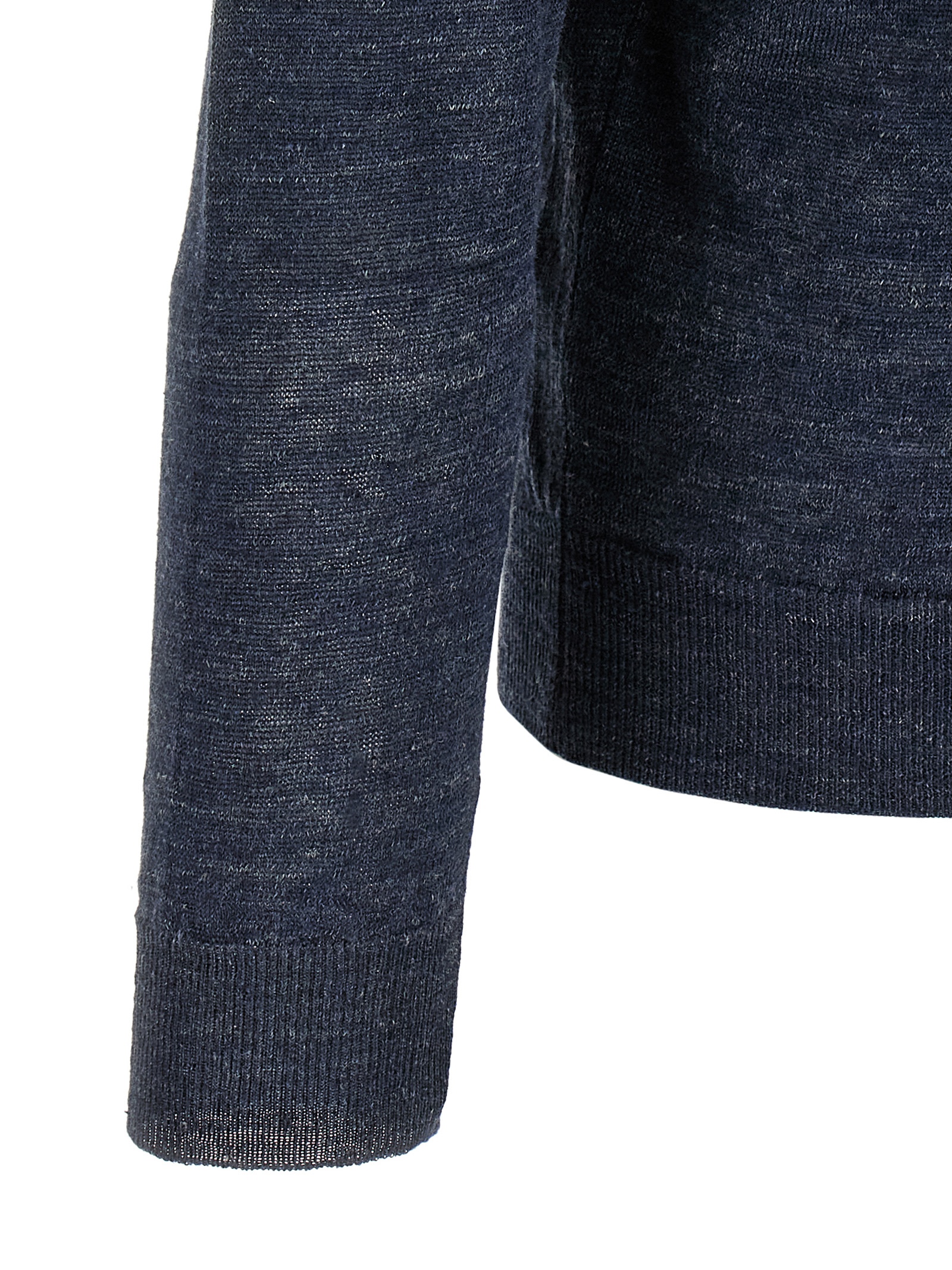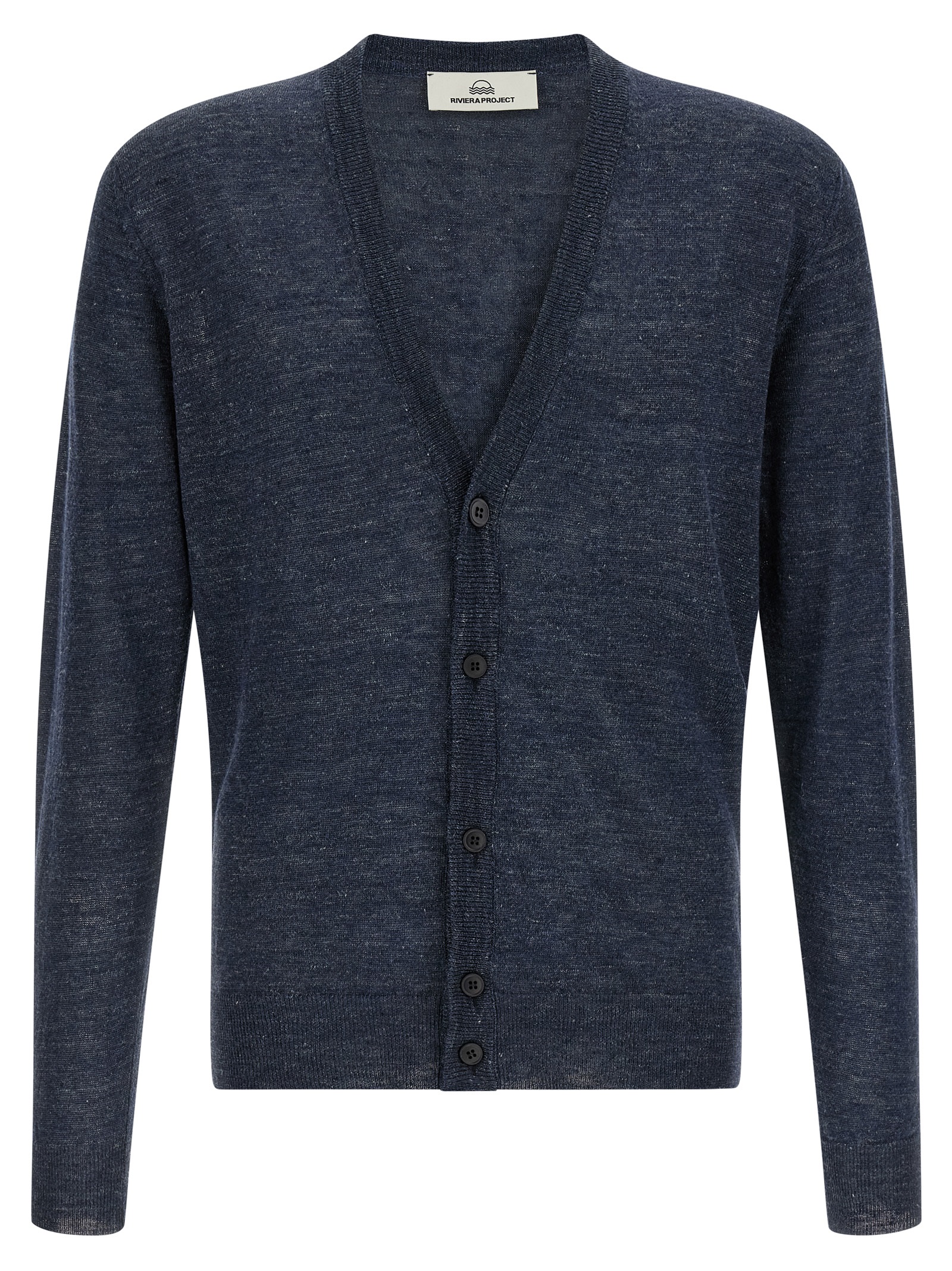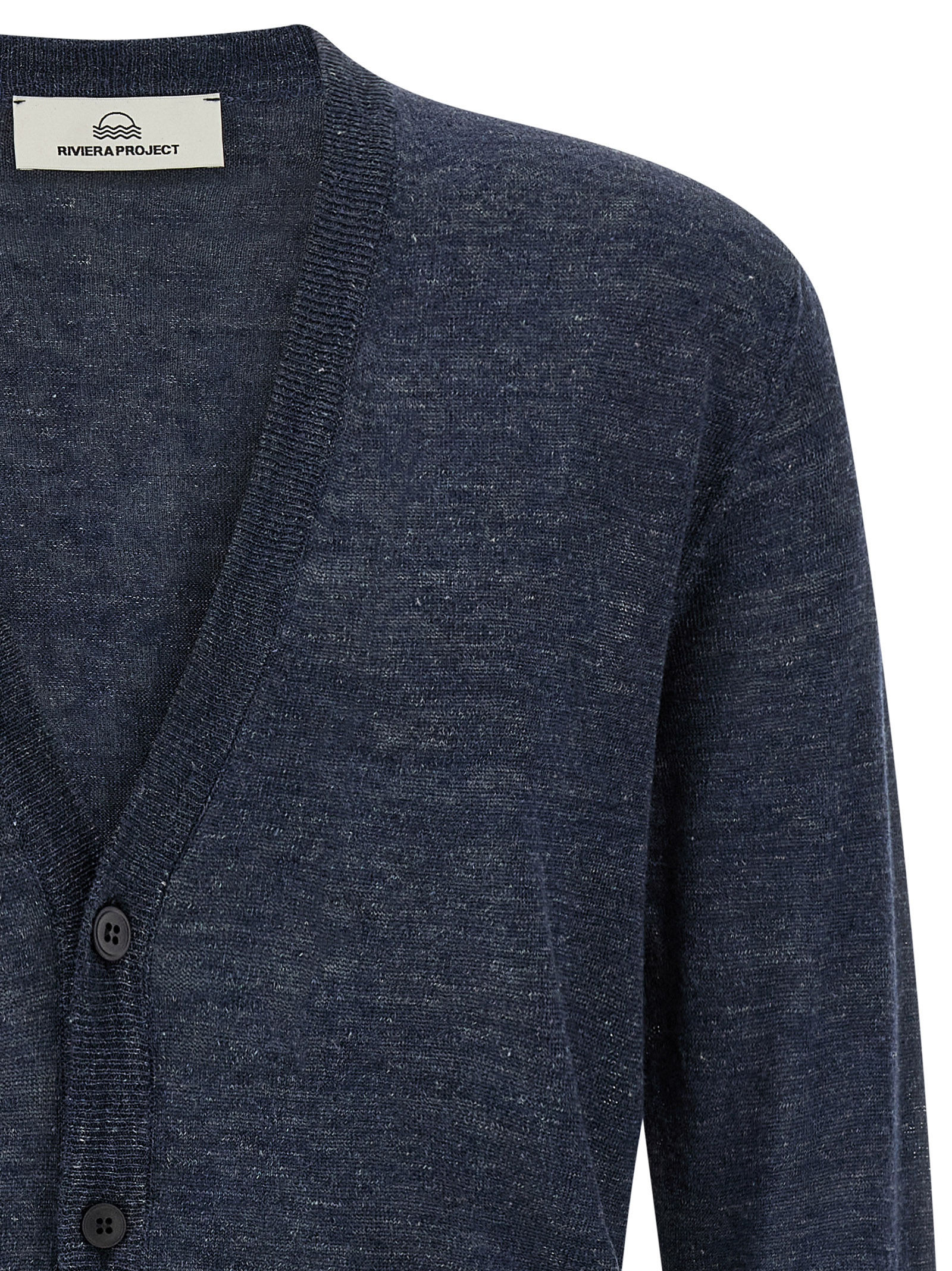 Меланжевий кардиган із суміші льону та шовку, V-подібний виріз, передня застібка на ґудзики, довгі рукави з манжетами та ободок по низу.