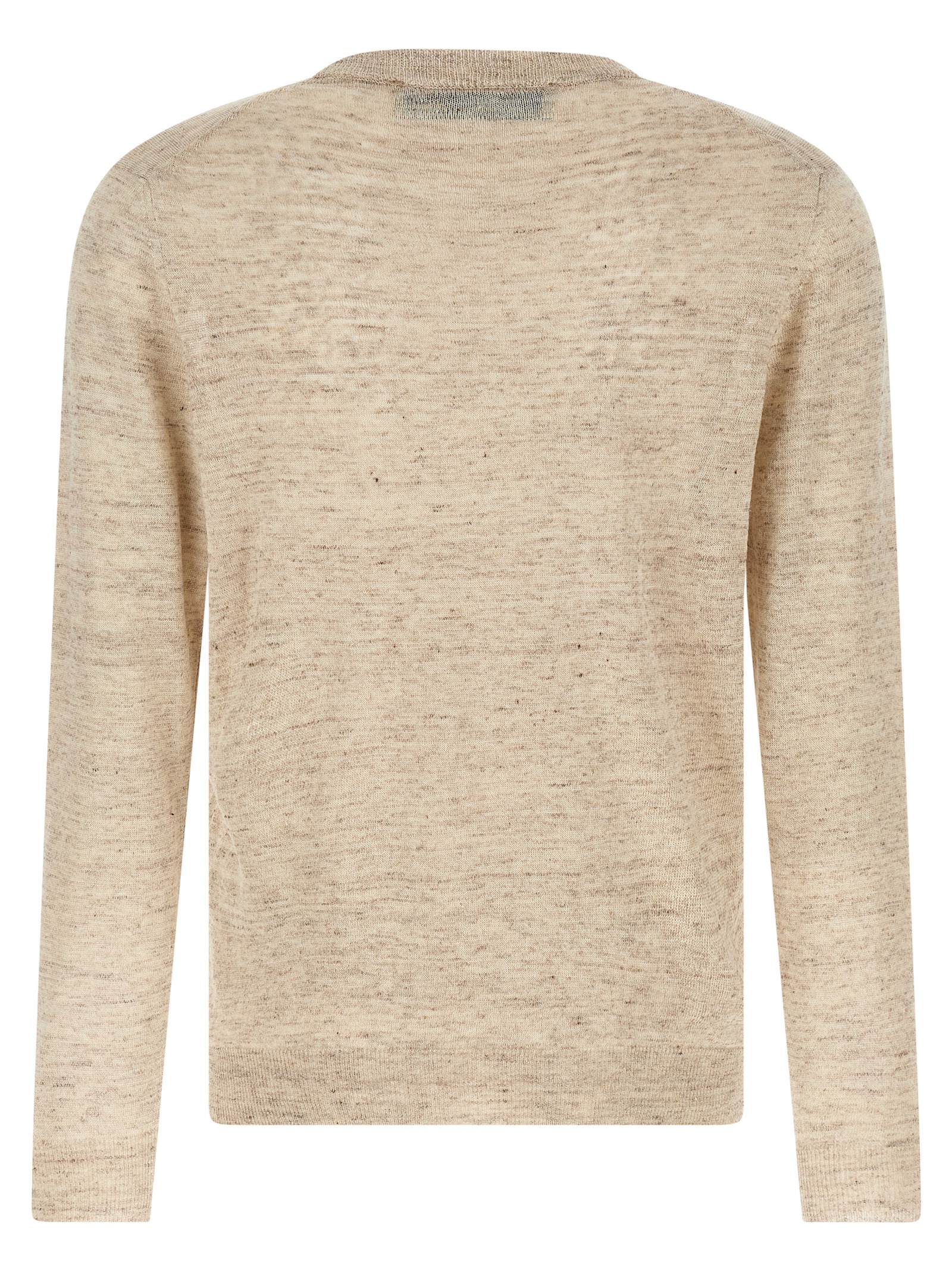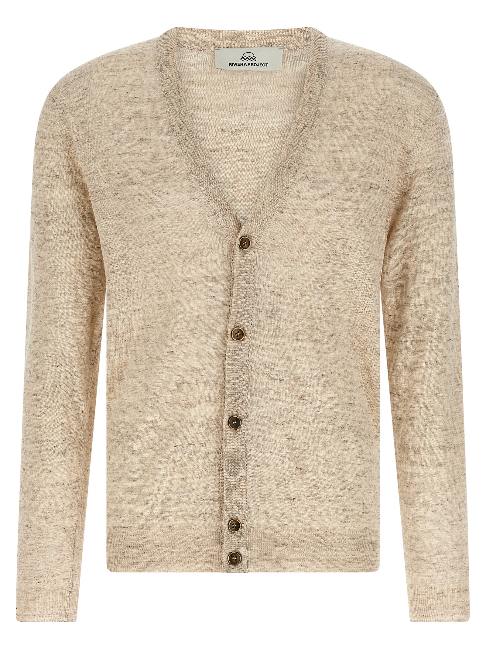 Меланжевий кардиган з суміші льону та шовку, V-подібний виріз, застібка на гудзики спереду, довгі рукави з манжетами, планка по низу.