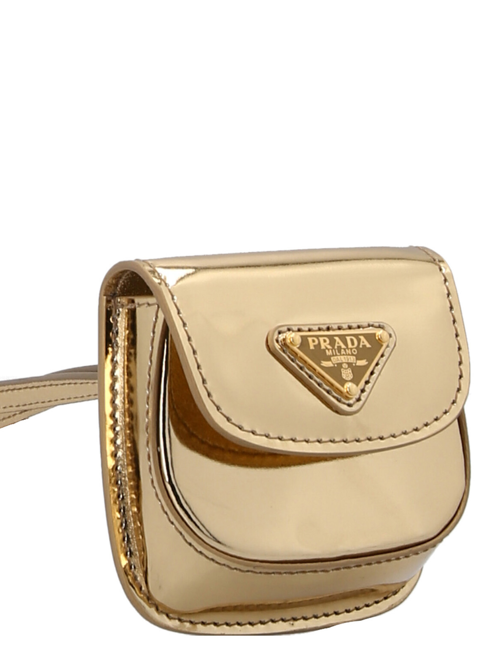Шкіряний чохол для AirPods з аплікацією логотипу спереду, магнітною застібкою та регульованим плечовим ремінцем.