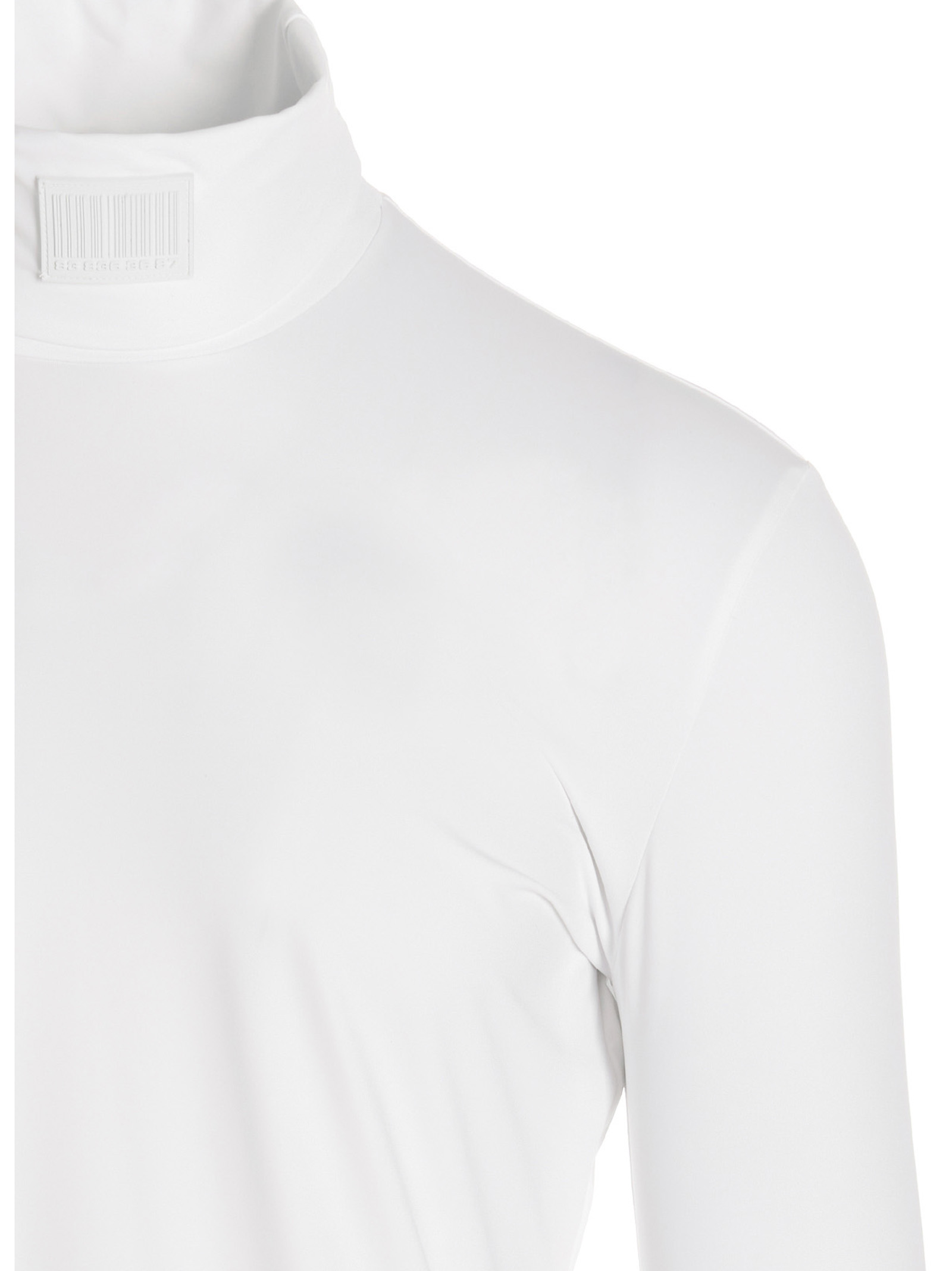 Stretch lycra sweater with a tone-on-tone rubberized logo application on the turtleneck and long sleeves.