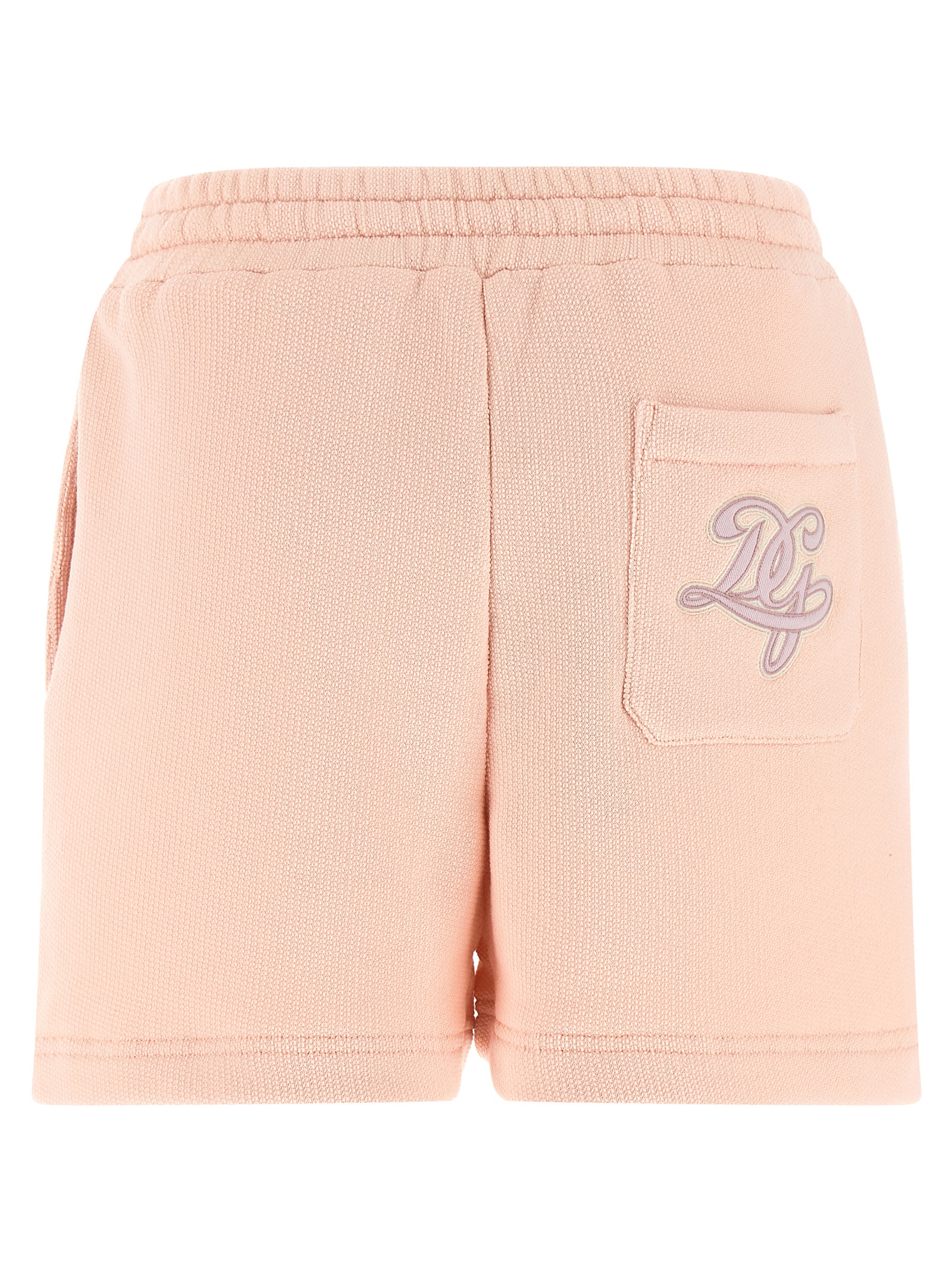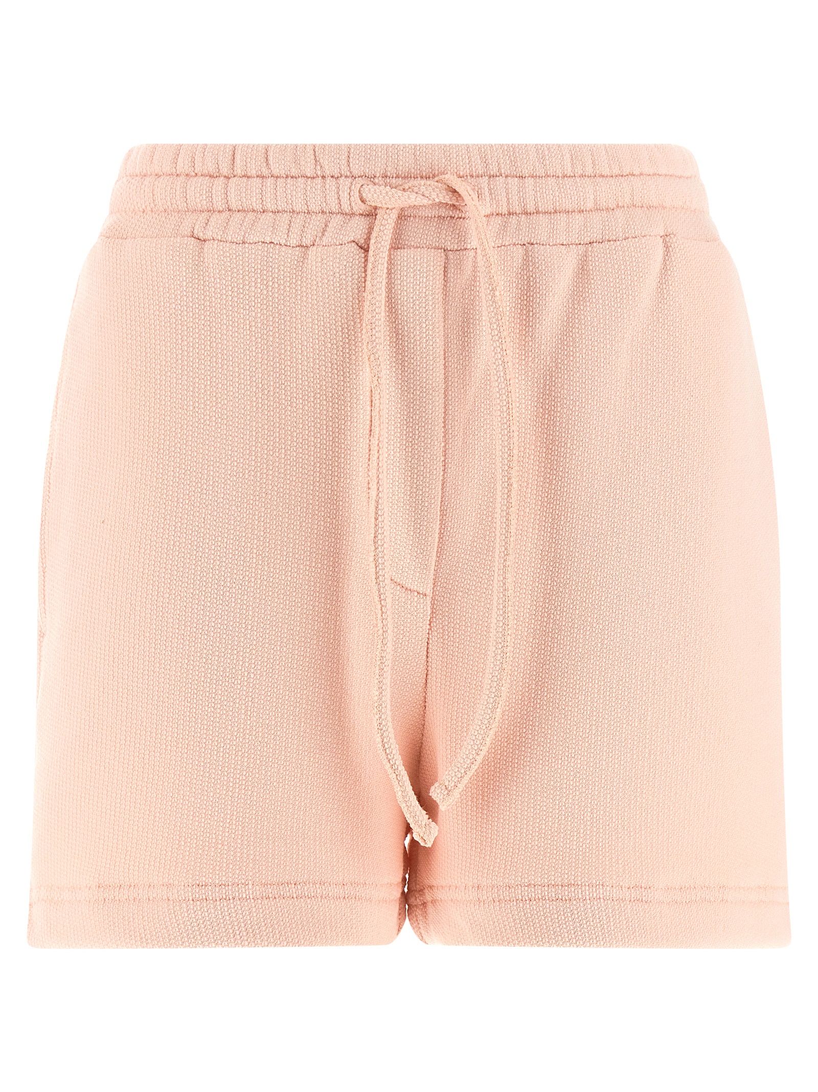 Шорти з махрової бавовняної тканини з м'якою ворсистою поверхнею, з еластичним поясом на шнурку, кишенями, задньою нашивкою з логотипом, бічними розрізами по подолу.