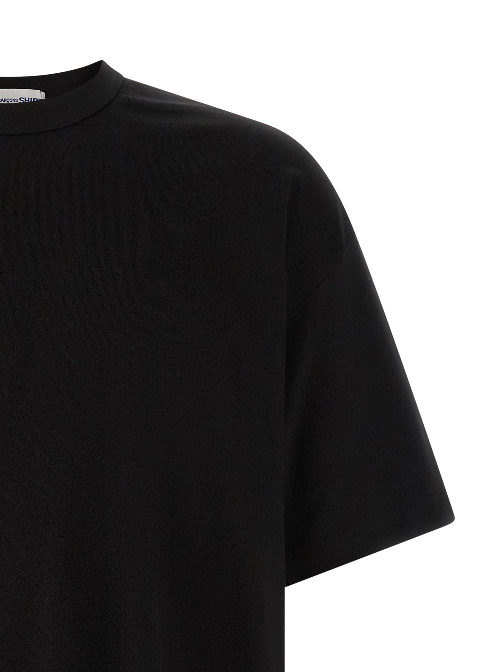 Футболка з бавовняного джерсі з принтом логотипу на спинці, круглий виріз, короткі рукави зі зміщеними плечима.