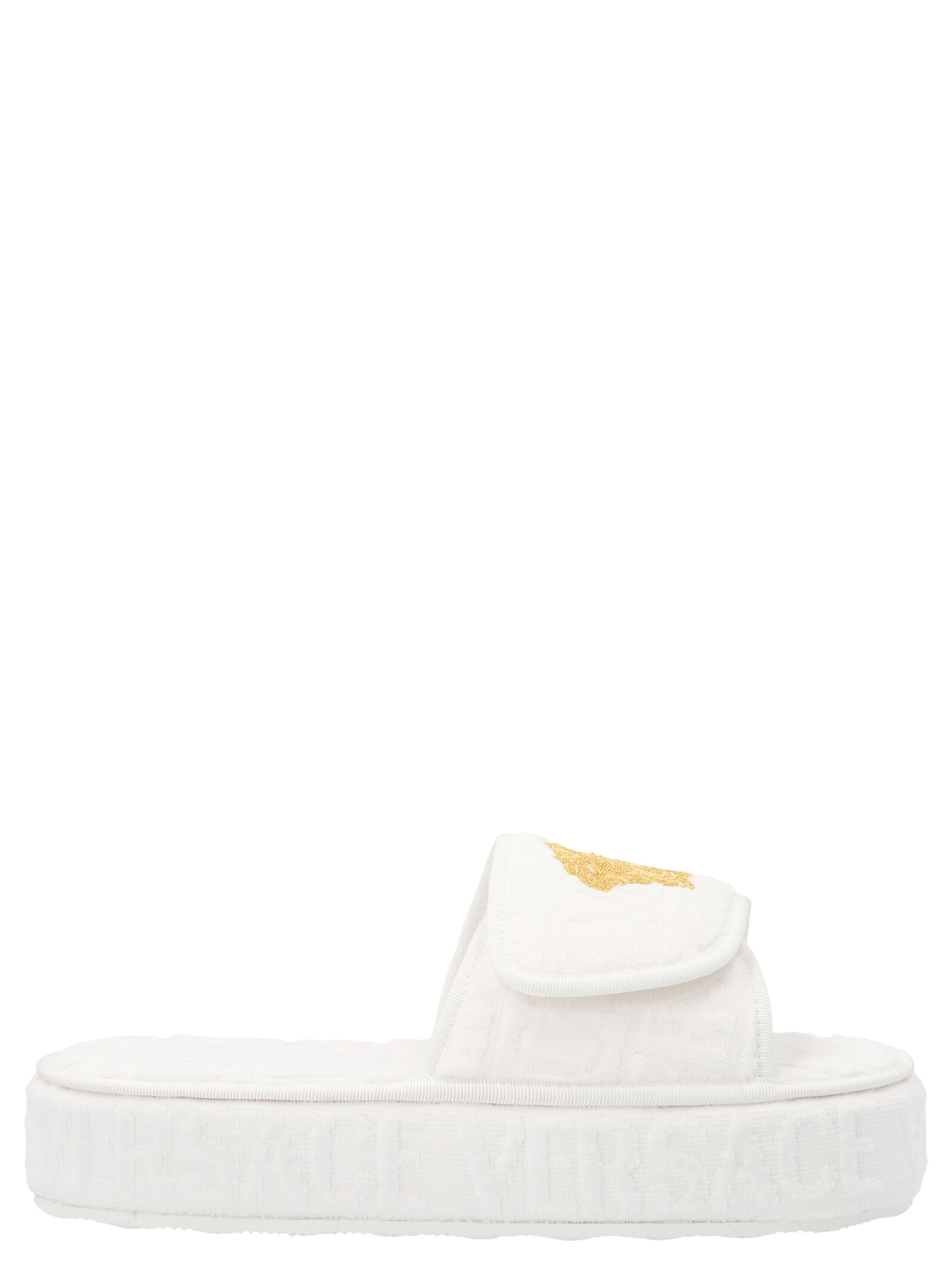 Тапочки з махрової тканини з логотипом, зі застібкою на липучці та контрастним логотипом 'Medusa'.