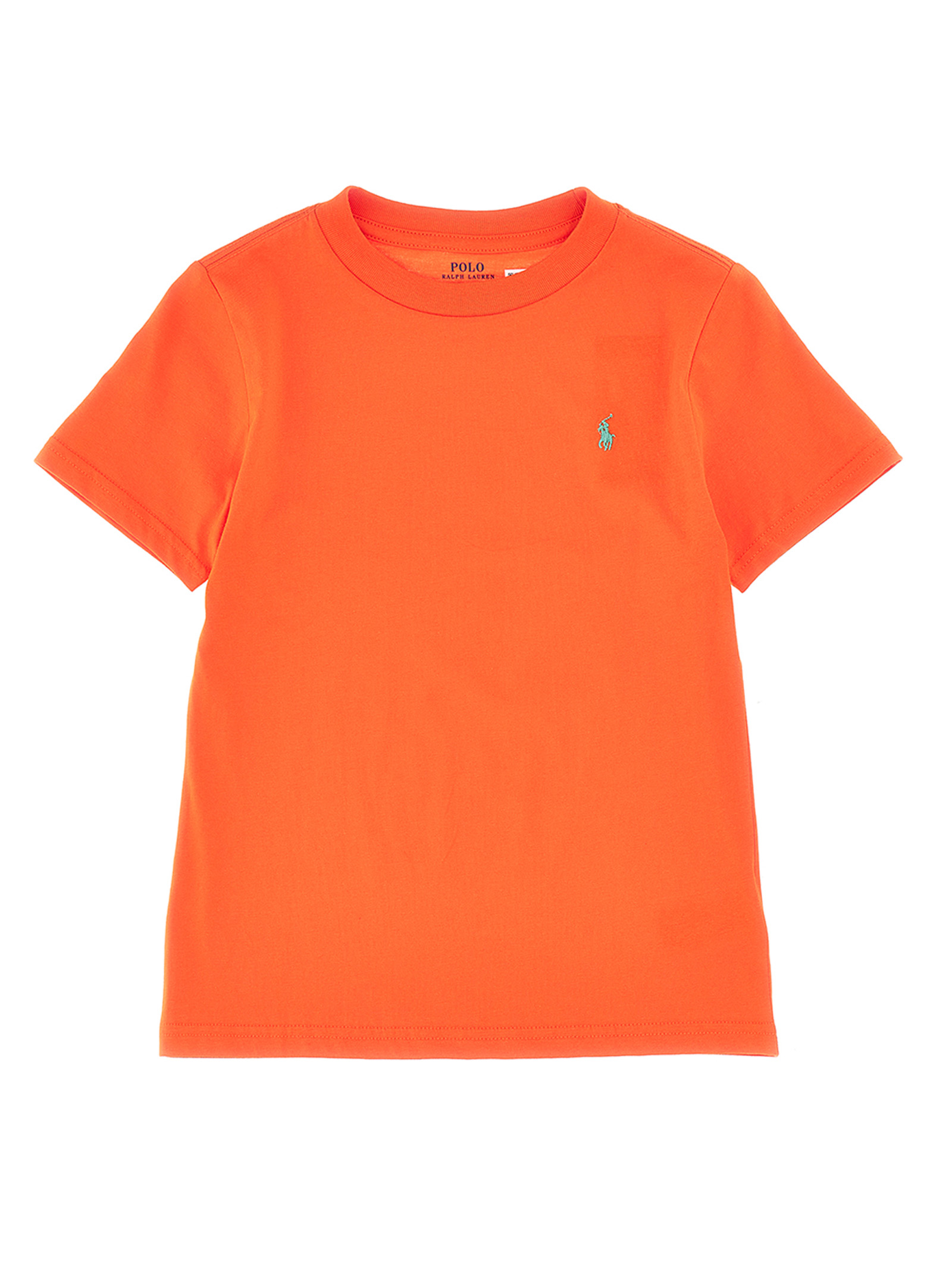 JULIAN KIDS бавовняна футболка з круглим вирізом, з вишивкою логотипу спереду та короткими рукавами.