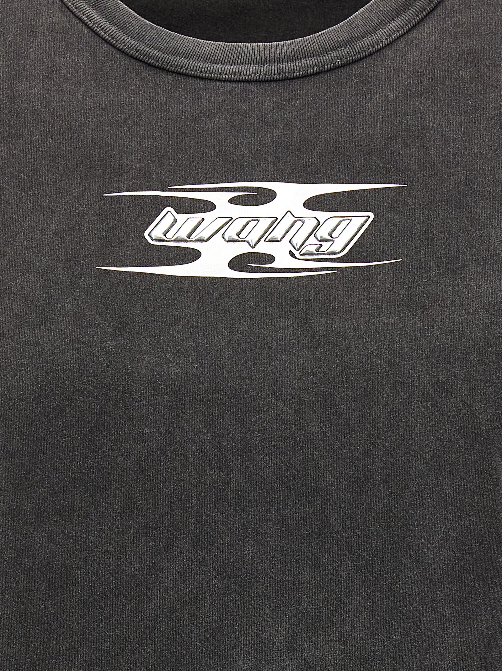 Бавовняна футболка з рельєфним принтом і логотипом спереду, круглий виріз, короткі рукави.