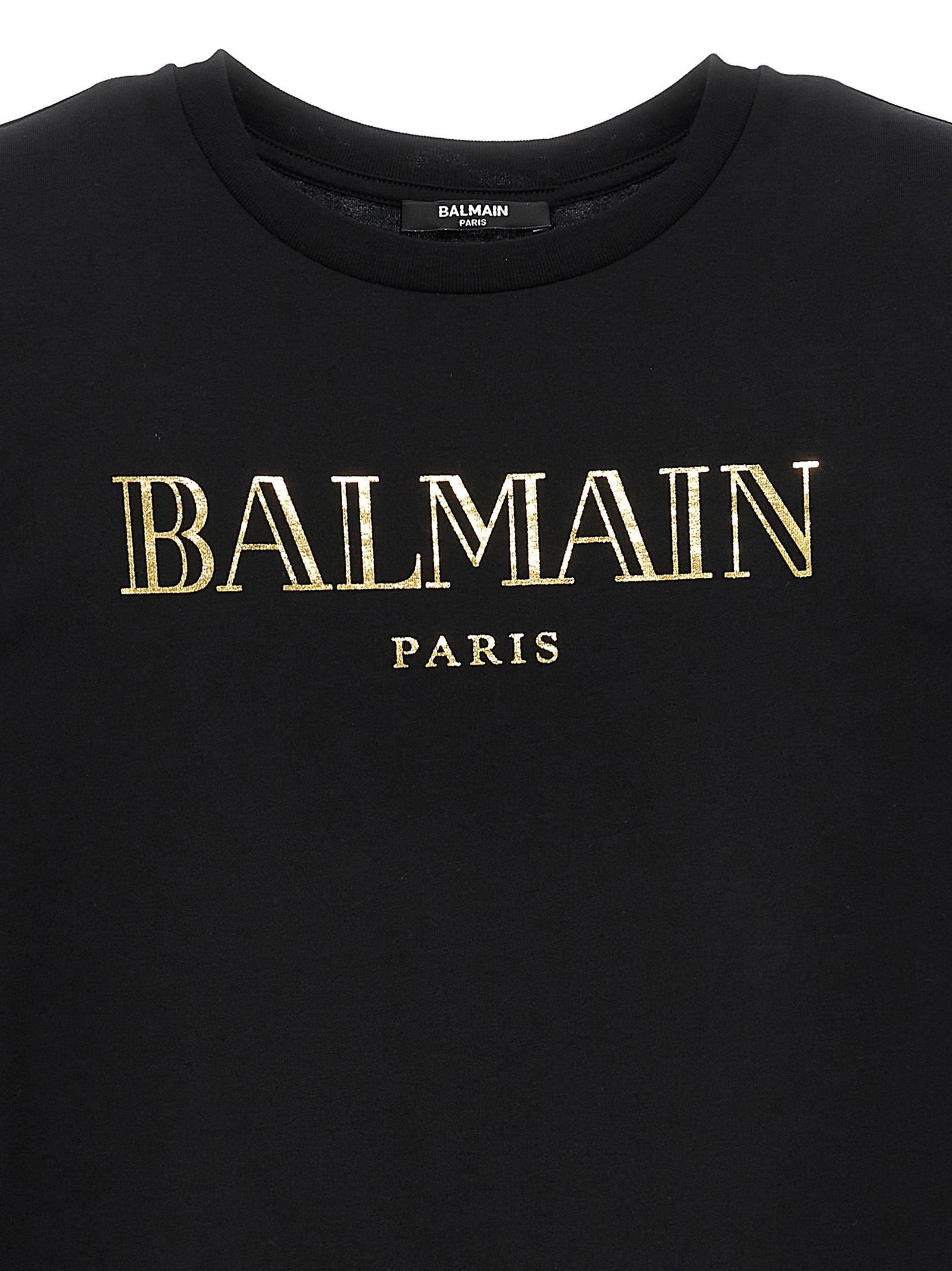 ДІТИ Бавовняна футболка з принтом логотипу спереду, круглий виріз, короткі рукава з подушечками.