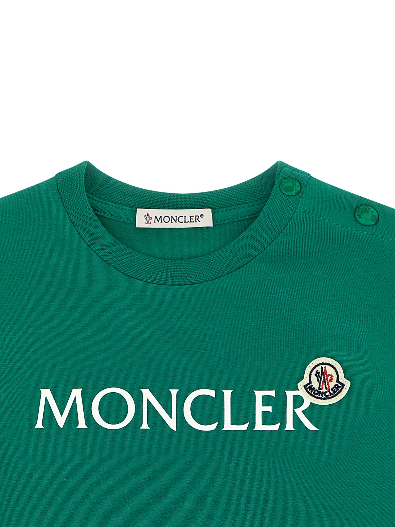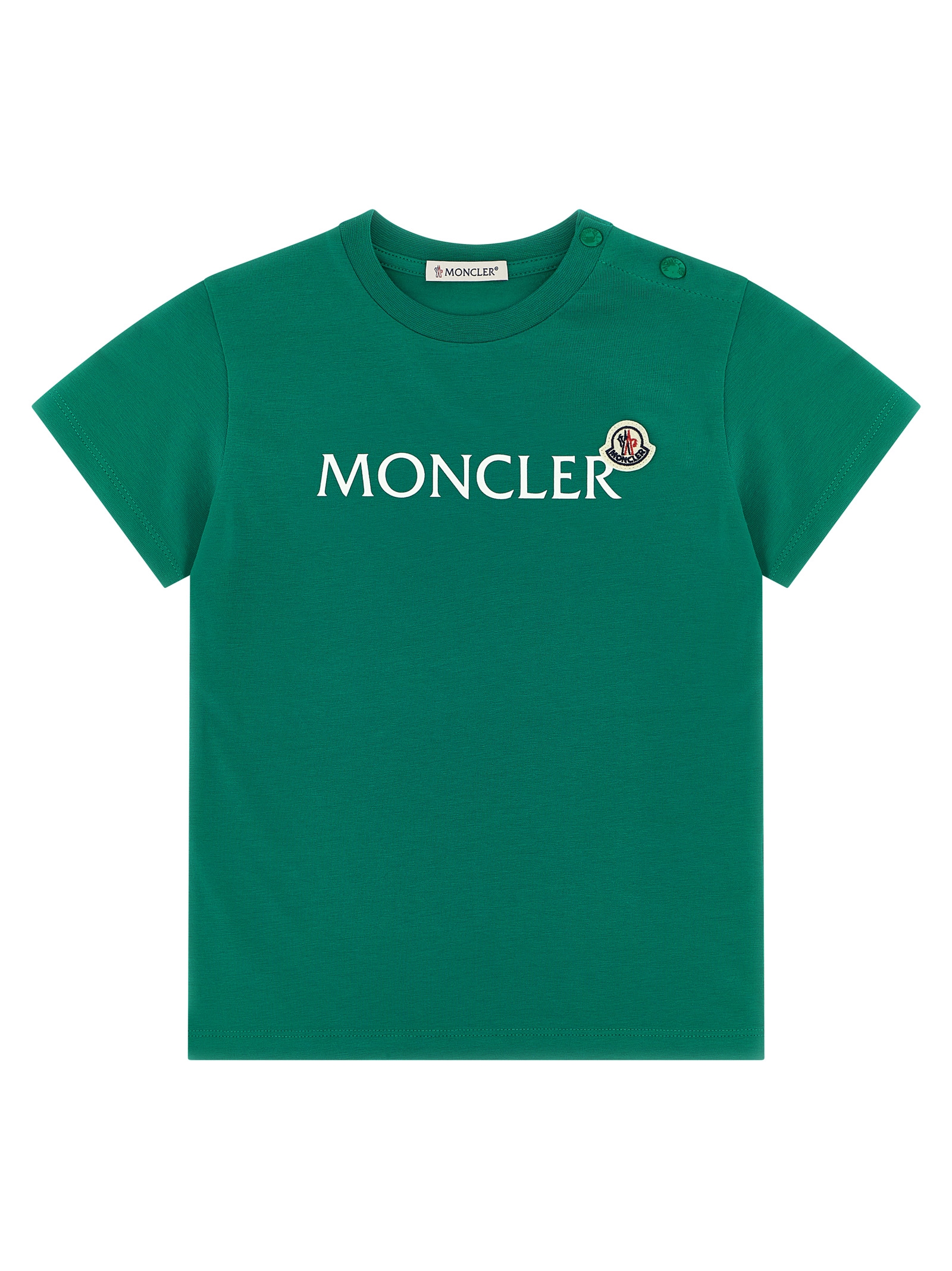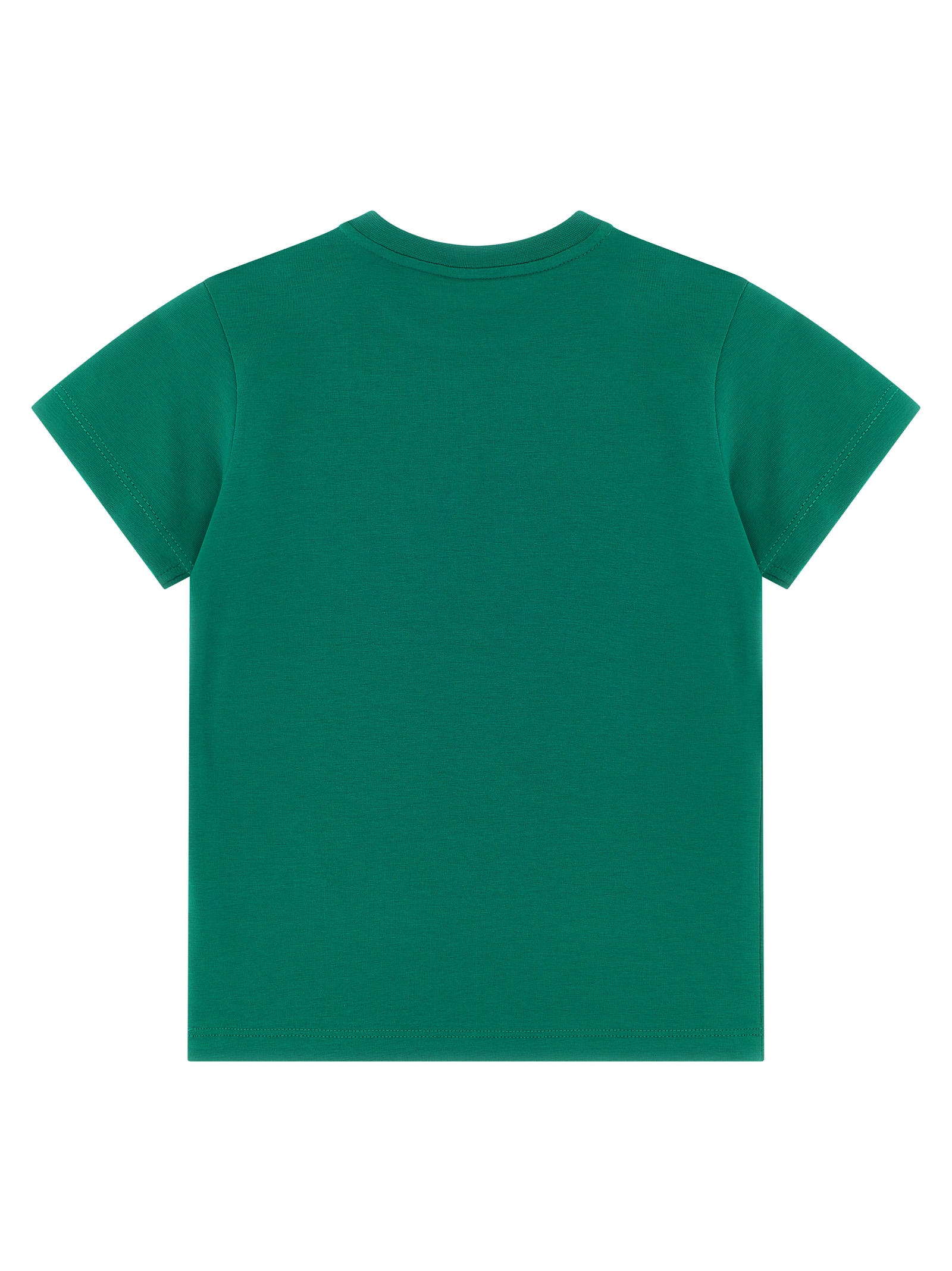 ДІТИ Бавовняна джерсі футболка з принтом логотипу та патчем з фетру спереду, круглий виріз, кнопки на лівому плечі, короткі рукави.