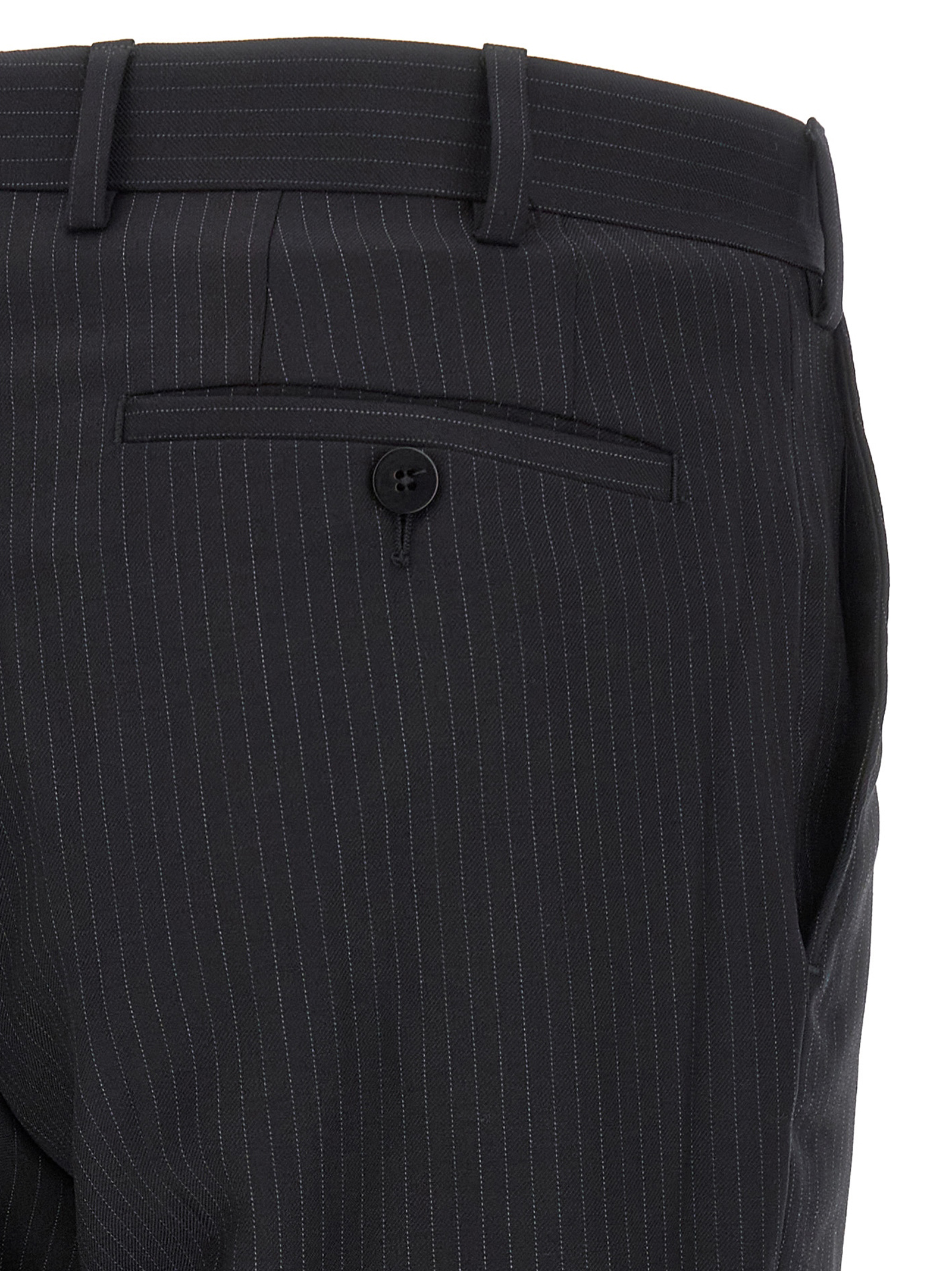 'Lord' сукня з візерунком у смужку з вовни, що складається з двобортного блейзера з передньою застібкою на гудзиках, лацкани знімні з металевою брошкою, нагрудна кишеня, накладні кишені, підкладка з купро, дві внутрішні кишені, структуровані плечові ремені, манжети з отворами для гудзиків, розрізи ззаду та штани з розтягнутими складками, передні кишені 'американки', задні кишені з клапанами, передня застібка на блискавці та гудзиках, підкладка з віскози.
