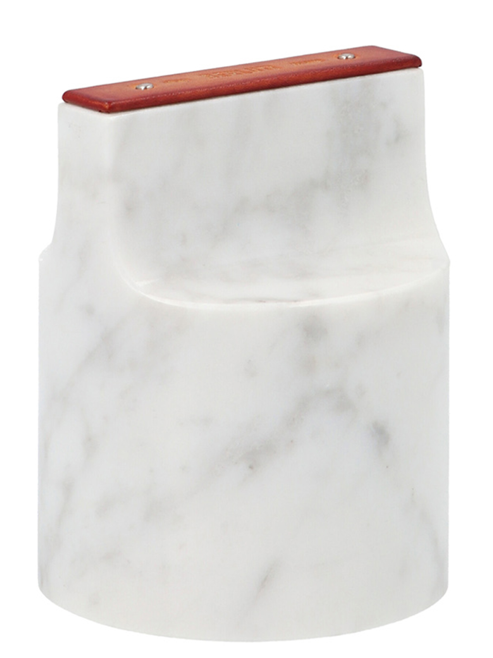 Мармурова підставка для паперу з деталями шкіряного логотипу.