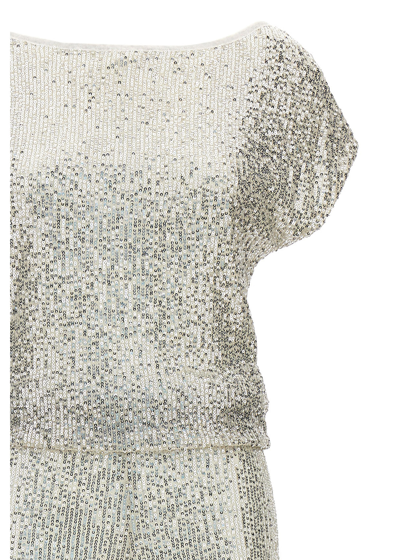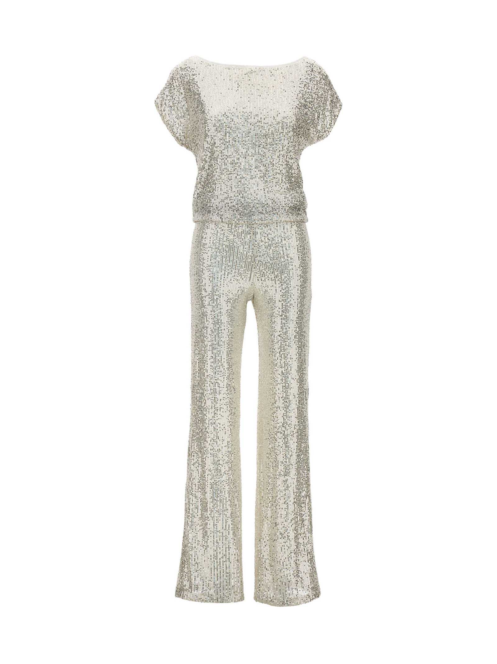 'Mascia' боді з еластичної тканини з аплікаціями з паєток по всій поверхні, круглим вирізом, еластичним поясом та довгими штанинами.