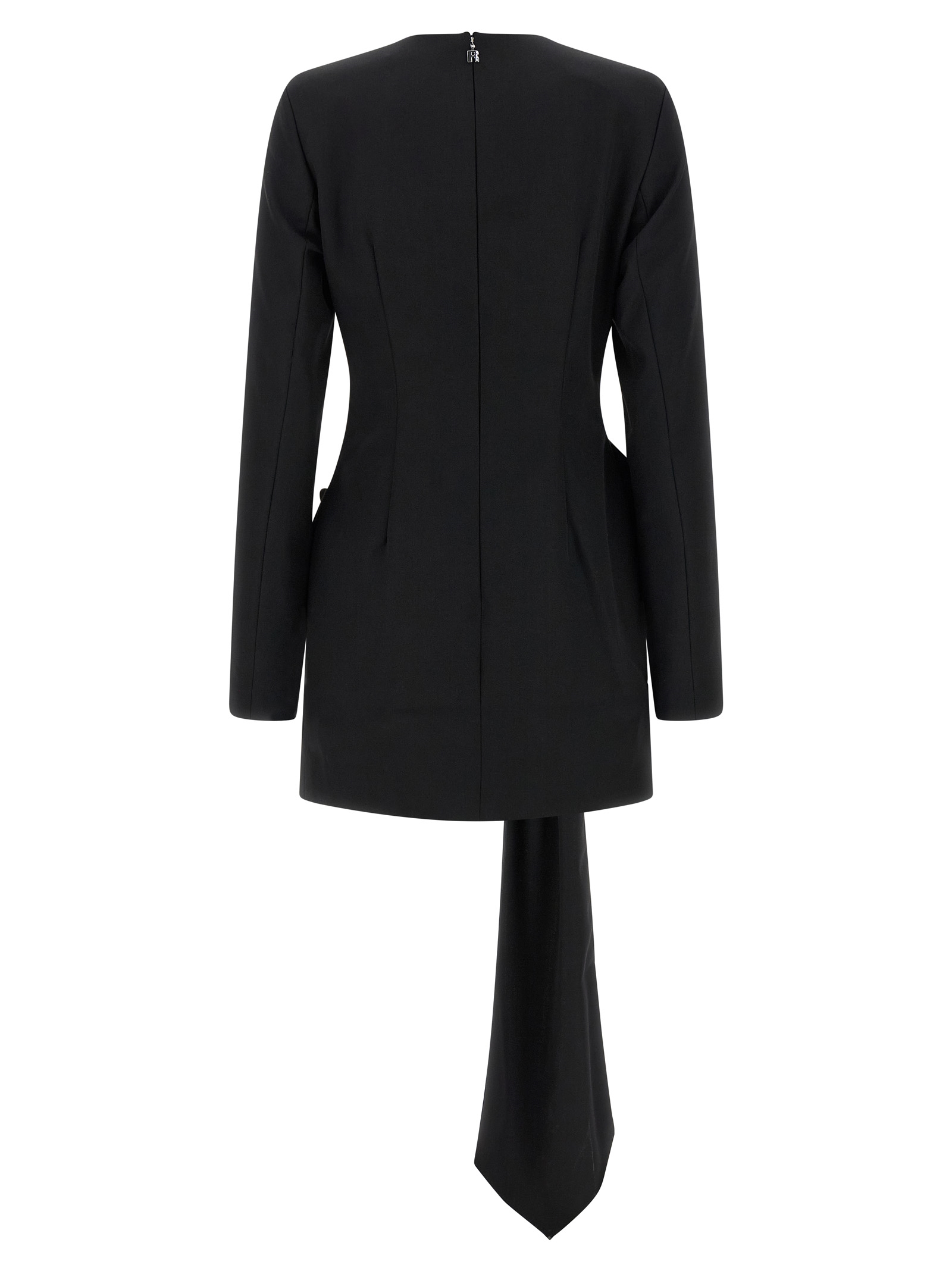 Міні-сукня з поліестеру та суміші вовни, круглий виріз, структурований плечовий ремінь, довгі рукави, задня застібка на блискавці, максі драпірування банта спереду, підкладка. СТАЛИЙ: Продукт виготовлений з переробленого поліестеру.