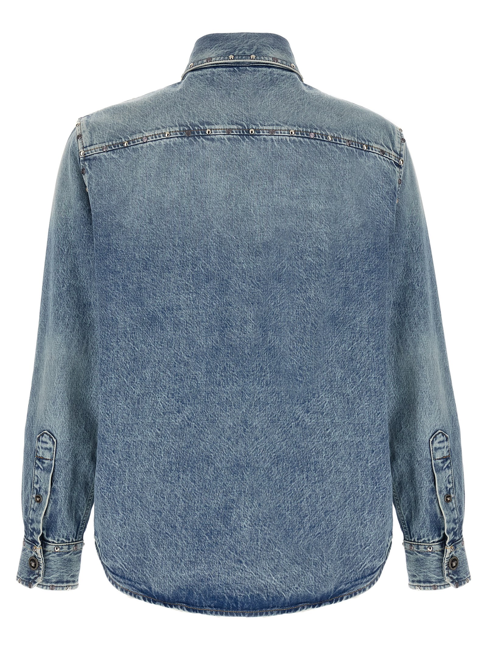 Сорочка з бавовняного деніму з кам'яним миттям з аплікацією з металевих шипів, передня емальована застібка 'Medusa' на кнопках, кишені, довгі рукави з манжетами.