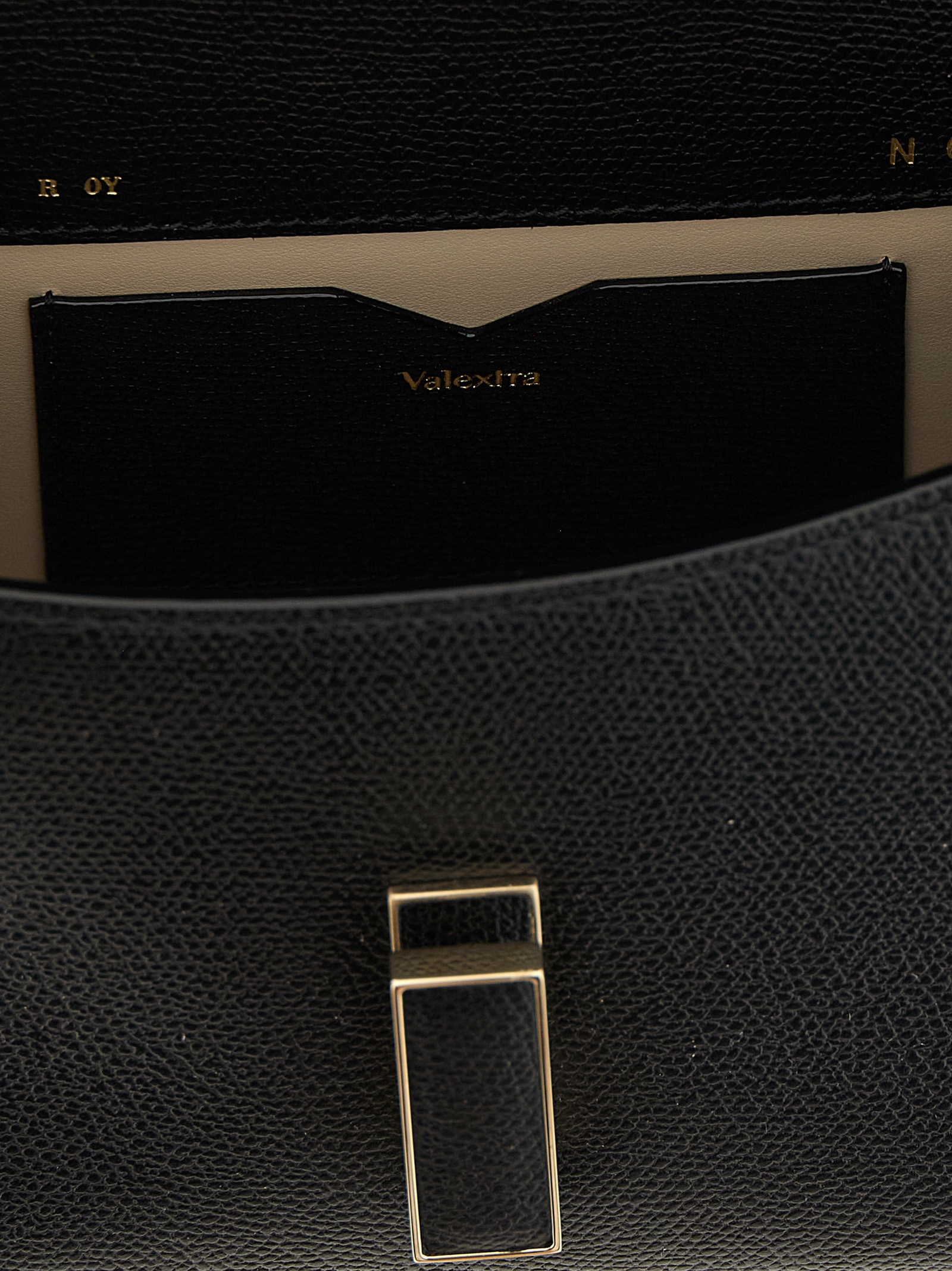 Мікро 'Iside' сумка через плече з мілепунте телячої шкіри, обробка Costa Valextra, фіксована ручка, застібка на клапан з поворотним замком, металеві деталі, регульований і знімний плечовий ремінь.