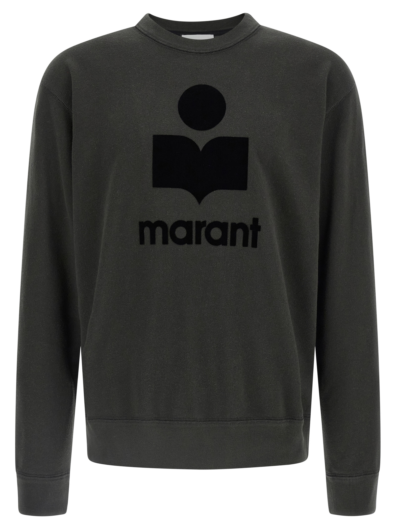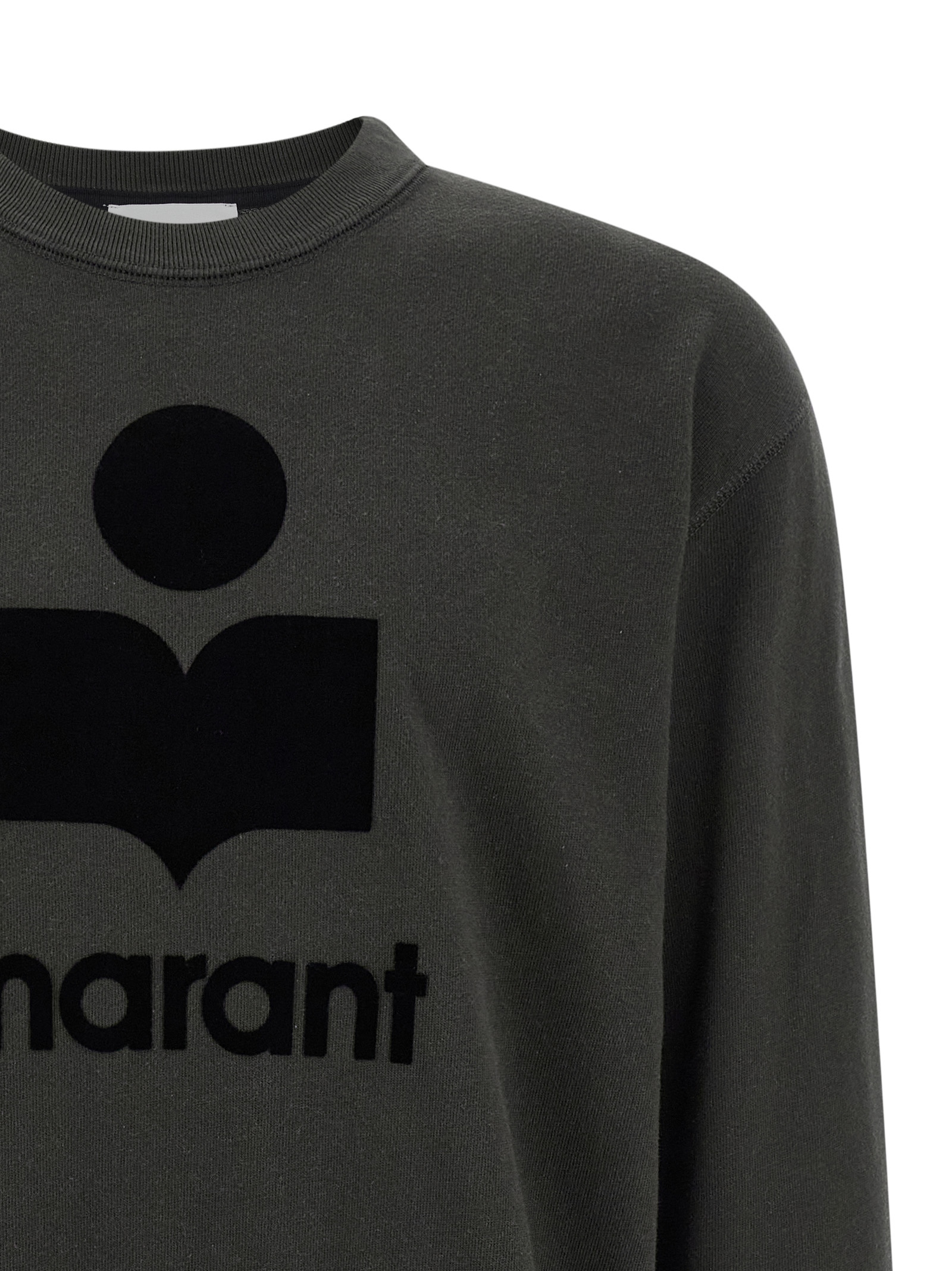 'Mikoy' светр з щетинистого бавовняного джерсі з переднім логотипом з оксамиту, круглим вирізом, довгими рукавами з манжетами та трохи зменшеними плечима.