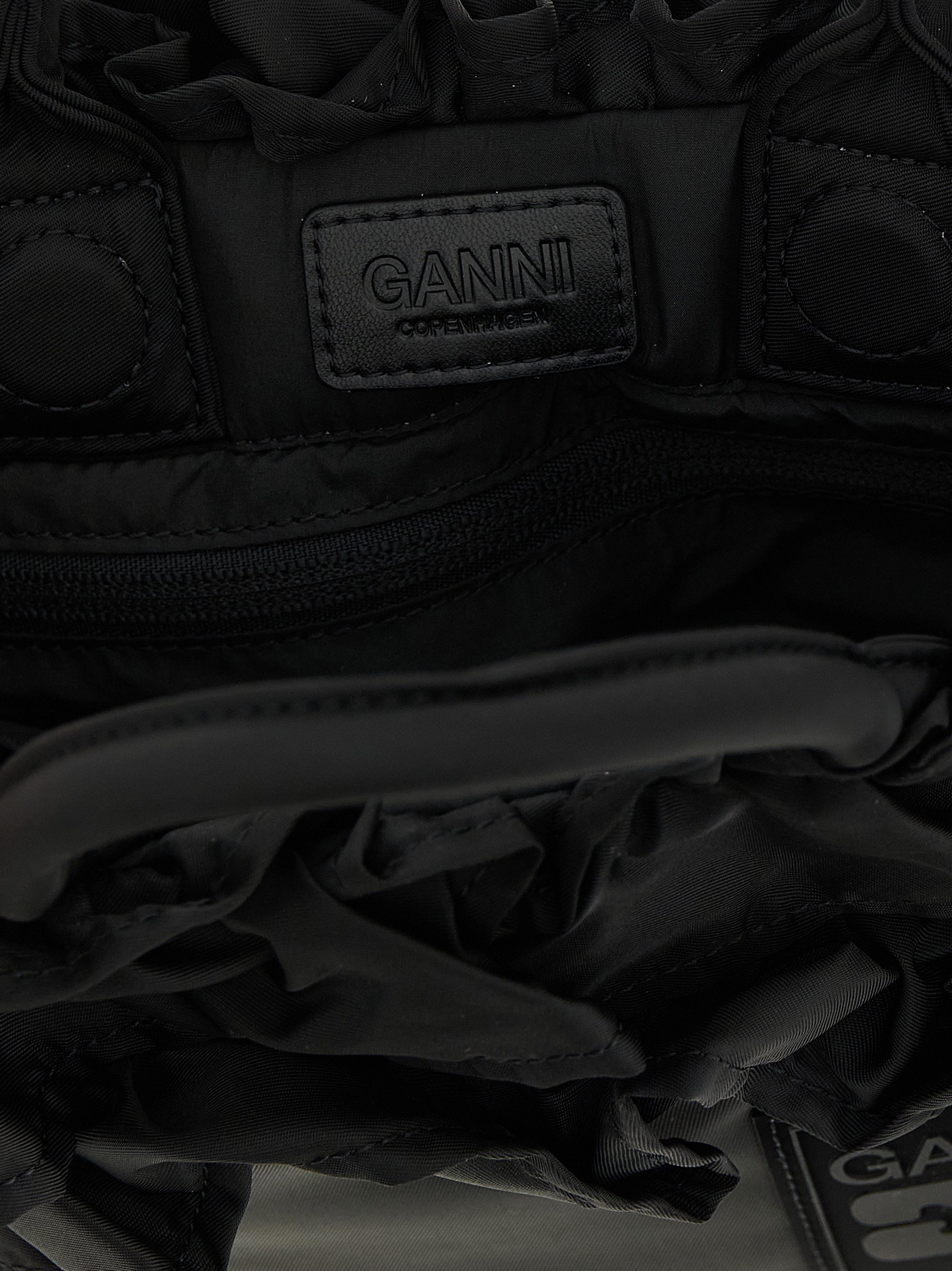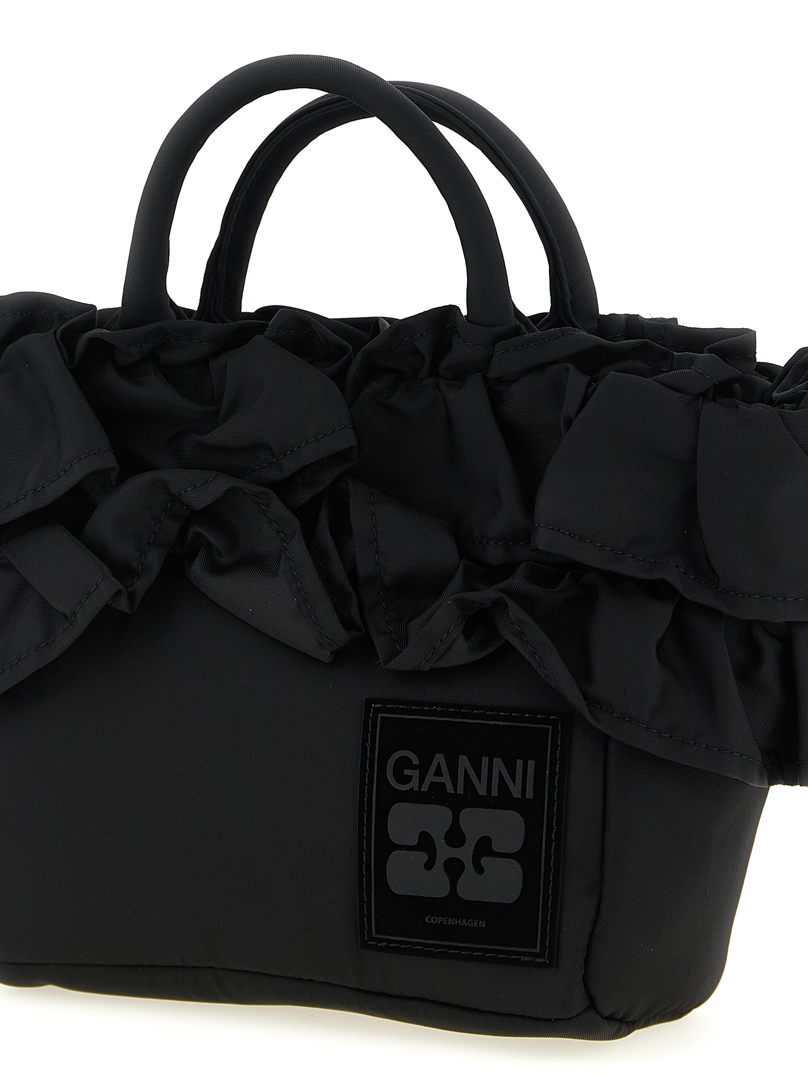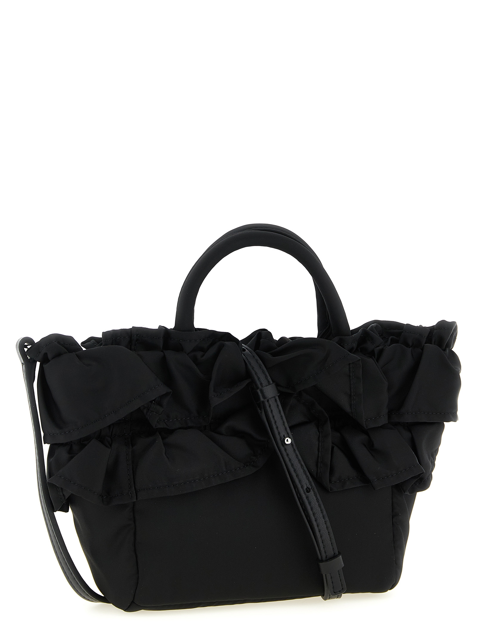 'Mini Shopper Ruffle' сумка з технічної тканини, подвійний ряд рюшів, силіконовий логотип в тон на передній частині, магнітна застібка, подвійна фіксована ручка, регульований і знімний плечовий ремінь. СТІЙКИЙ: Продукт виготовлений з перероблених матеріалів.