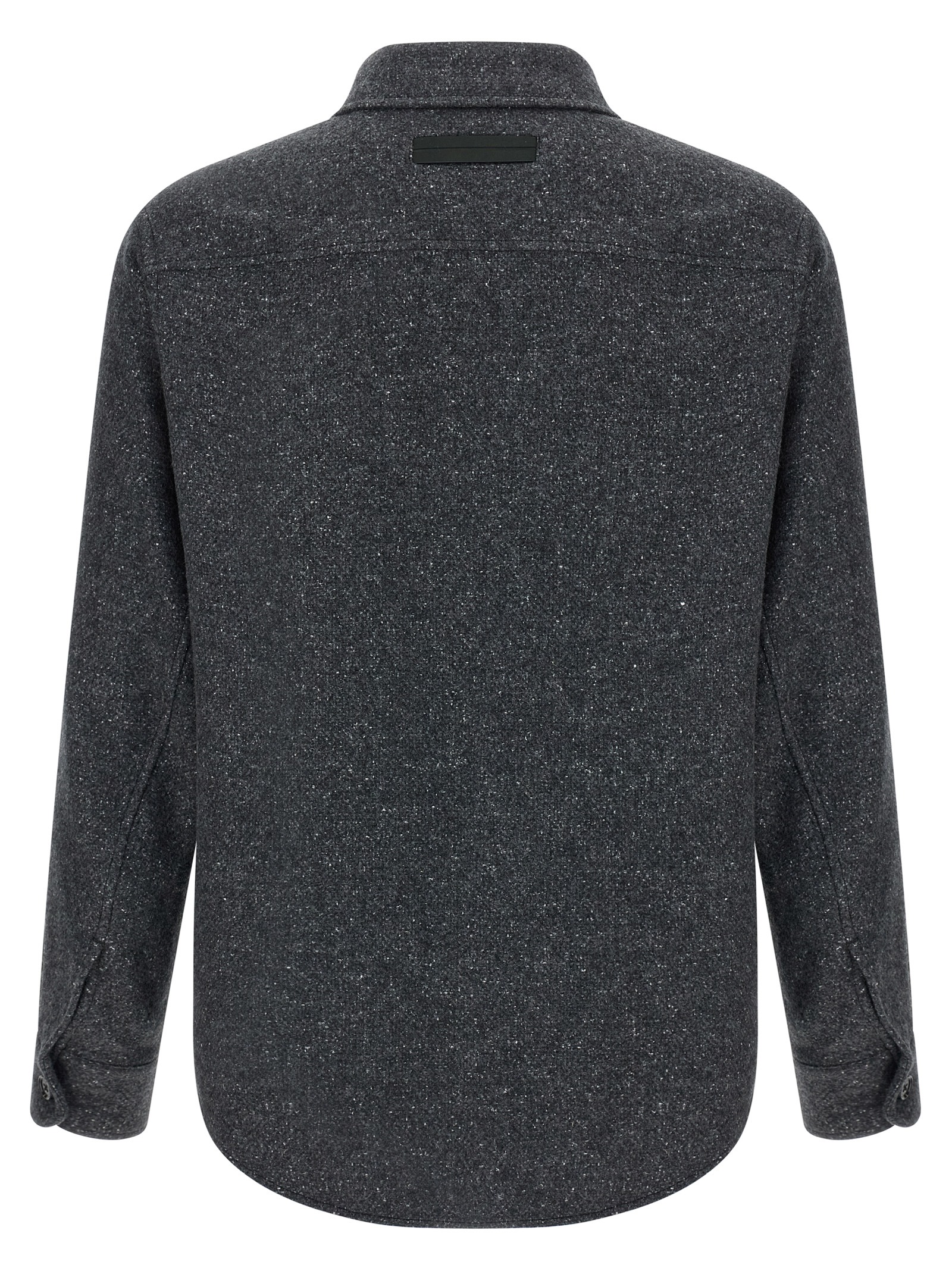 Сорочка з кашеміру та шовку в меланжевому поєднанні, застібка на гудзиках спереду, довгі рукави з манжетами, шкіряний 'Zegna 232 Road Brand Mark' на спині.