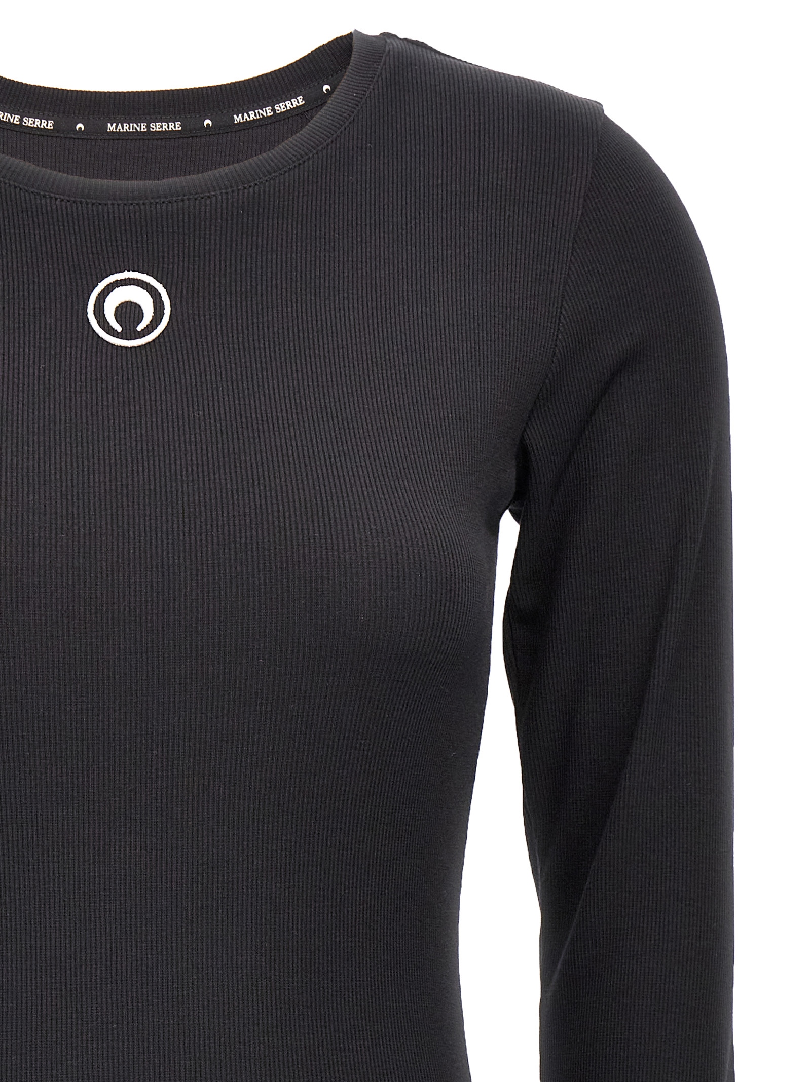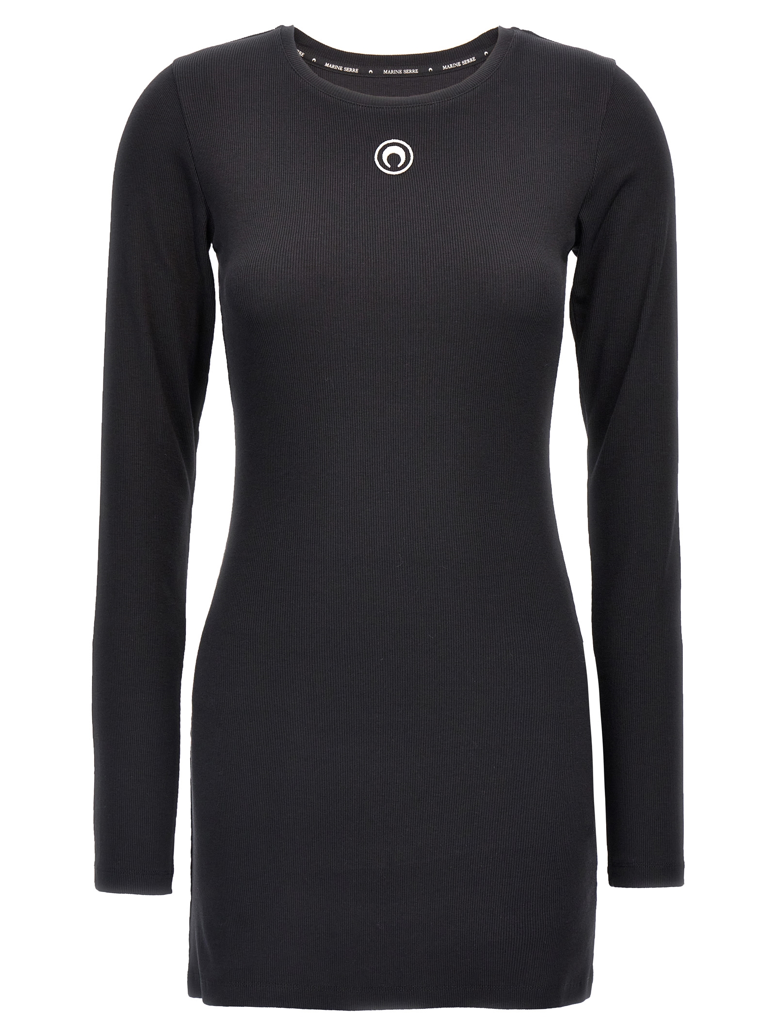 'Moon Logo' рибана бавовняна сукня з вишивкою логотипу спереду, круглий виріз, довгі рукави.