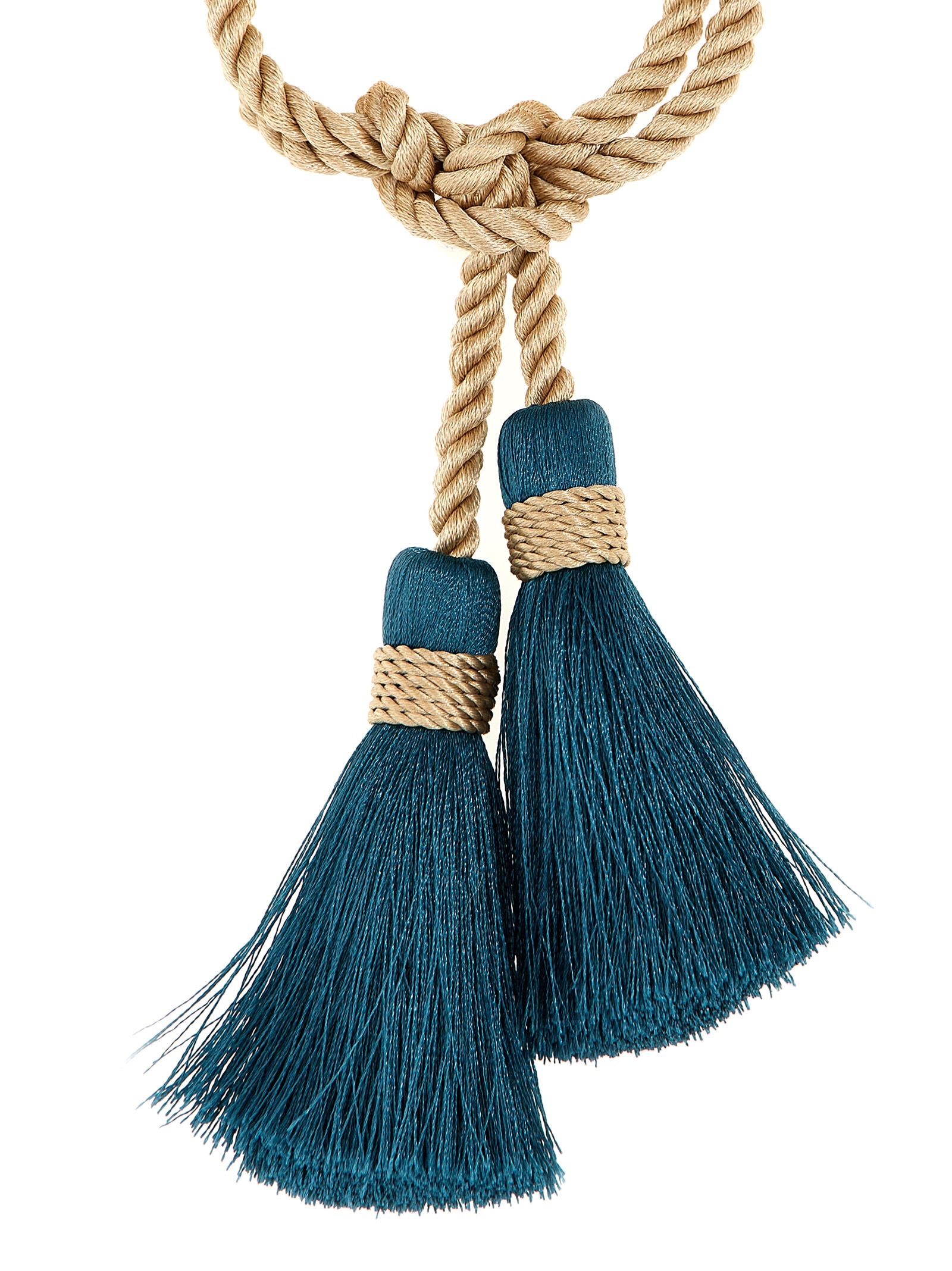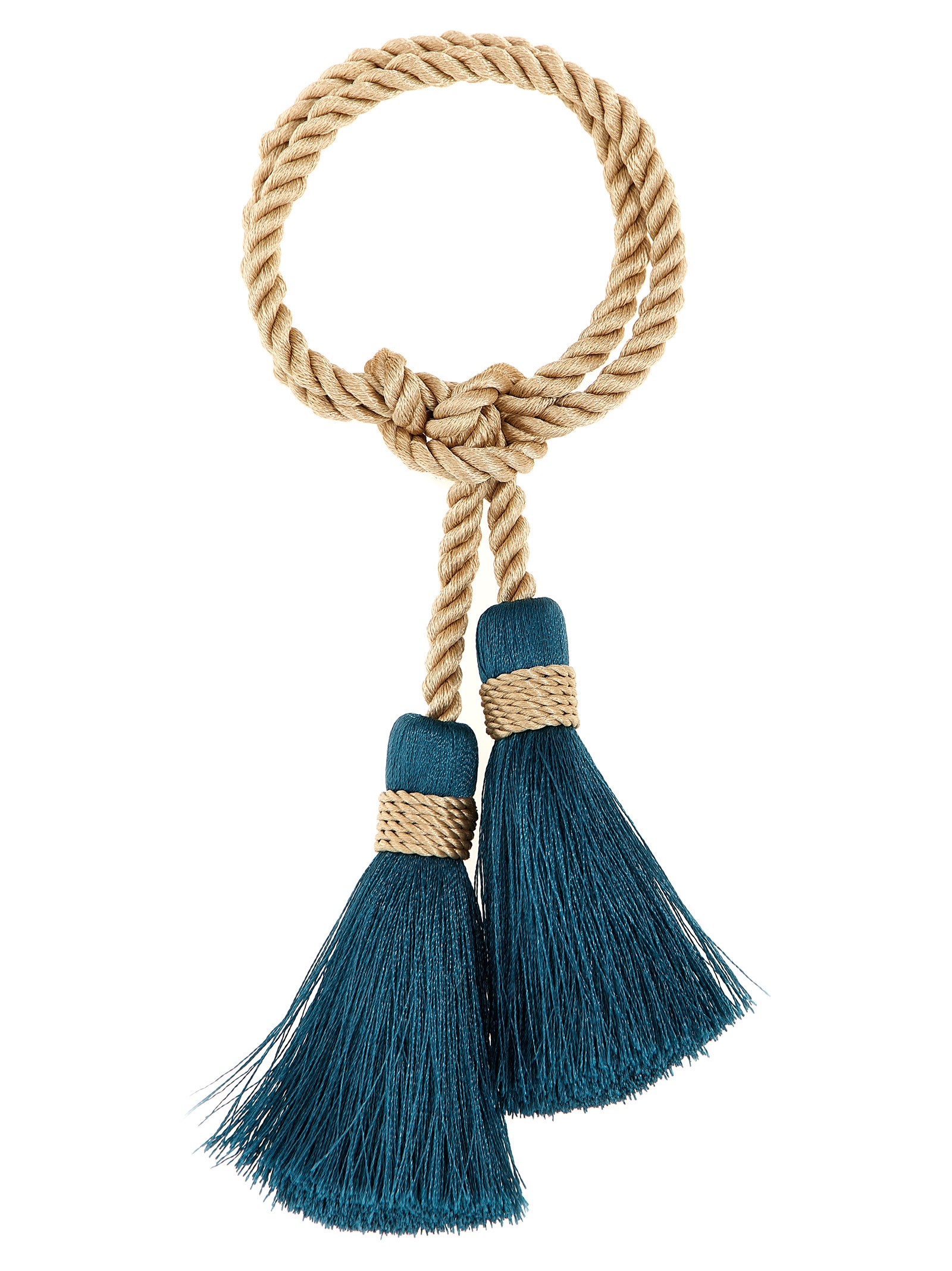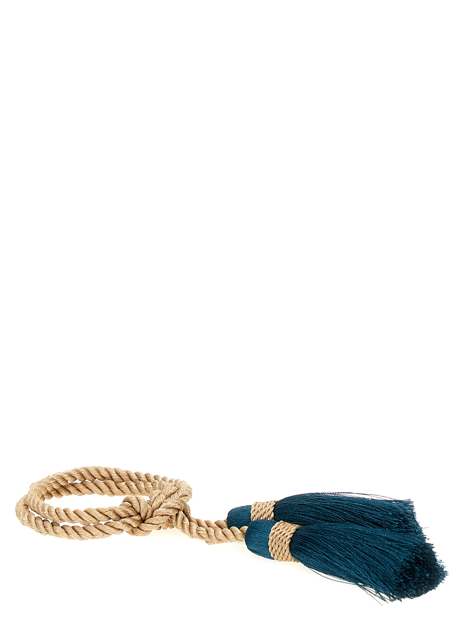 'Nappine' napkin holder in woven fabric and tassels.