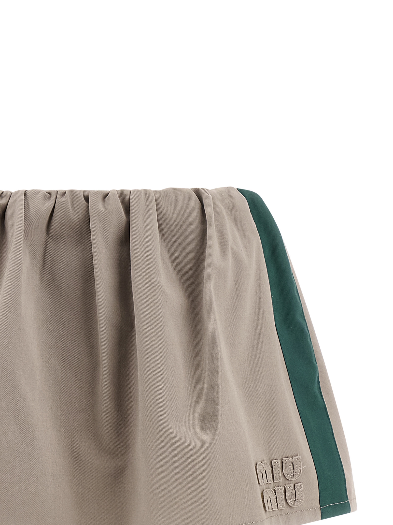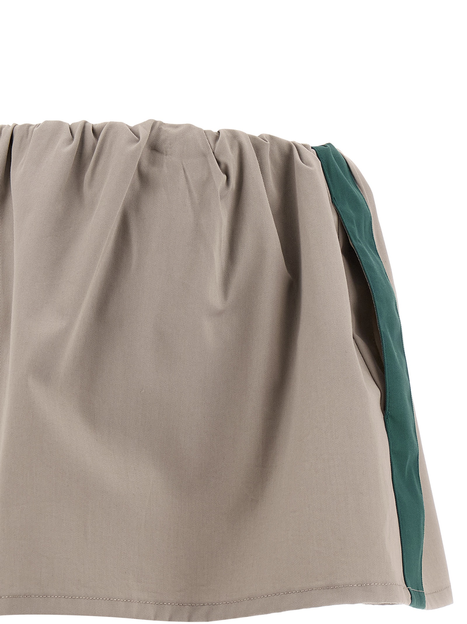 Міні-спідниця з старого бавовняного дрилю з контрастними вставками, нашивкою логотипа тоном в тон спереду, еластичним поясом зі шнурком, кишенями, внутрішніми трусиками.