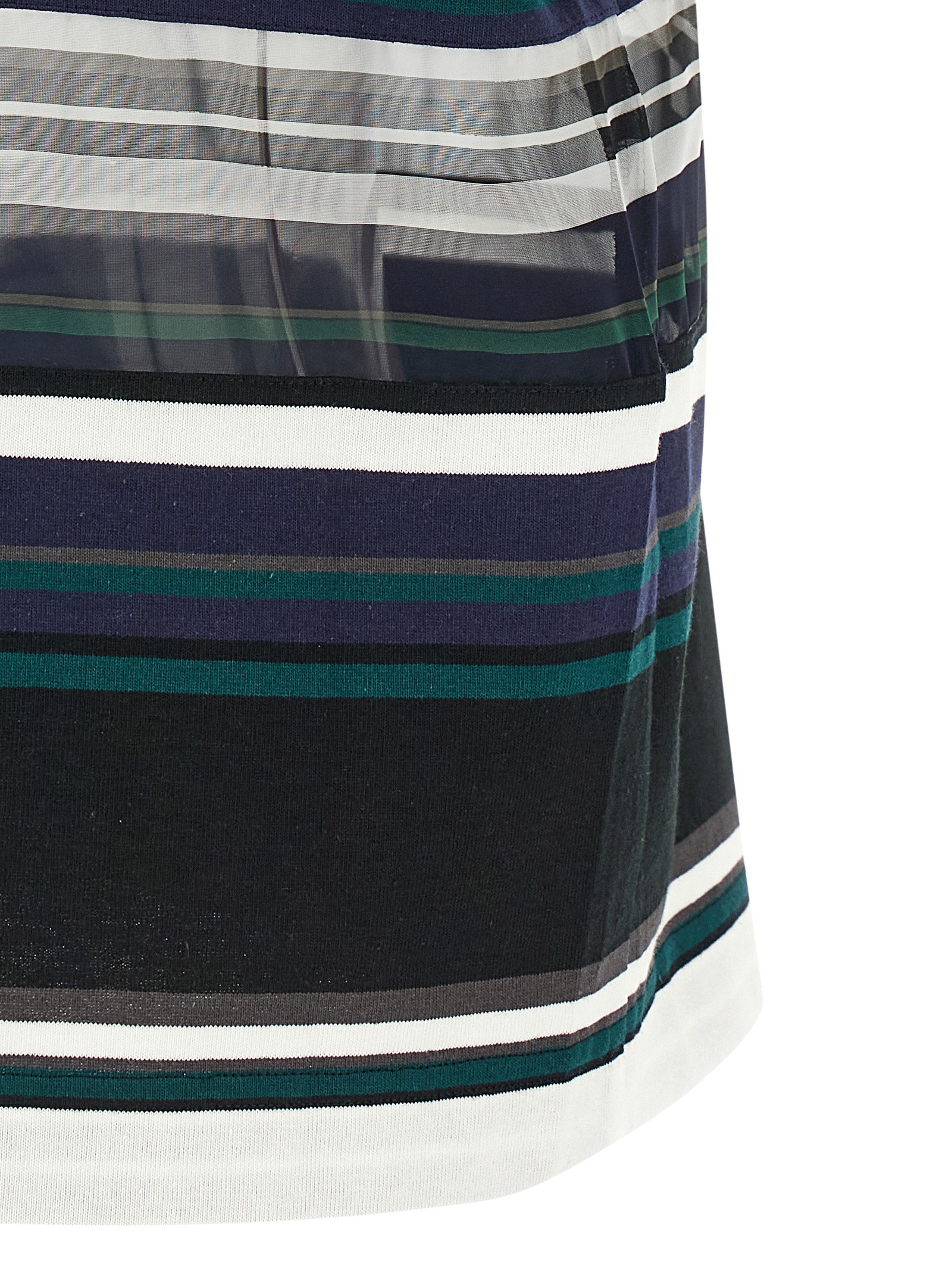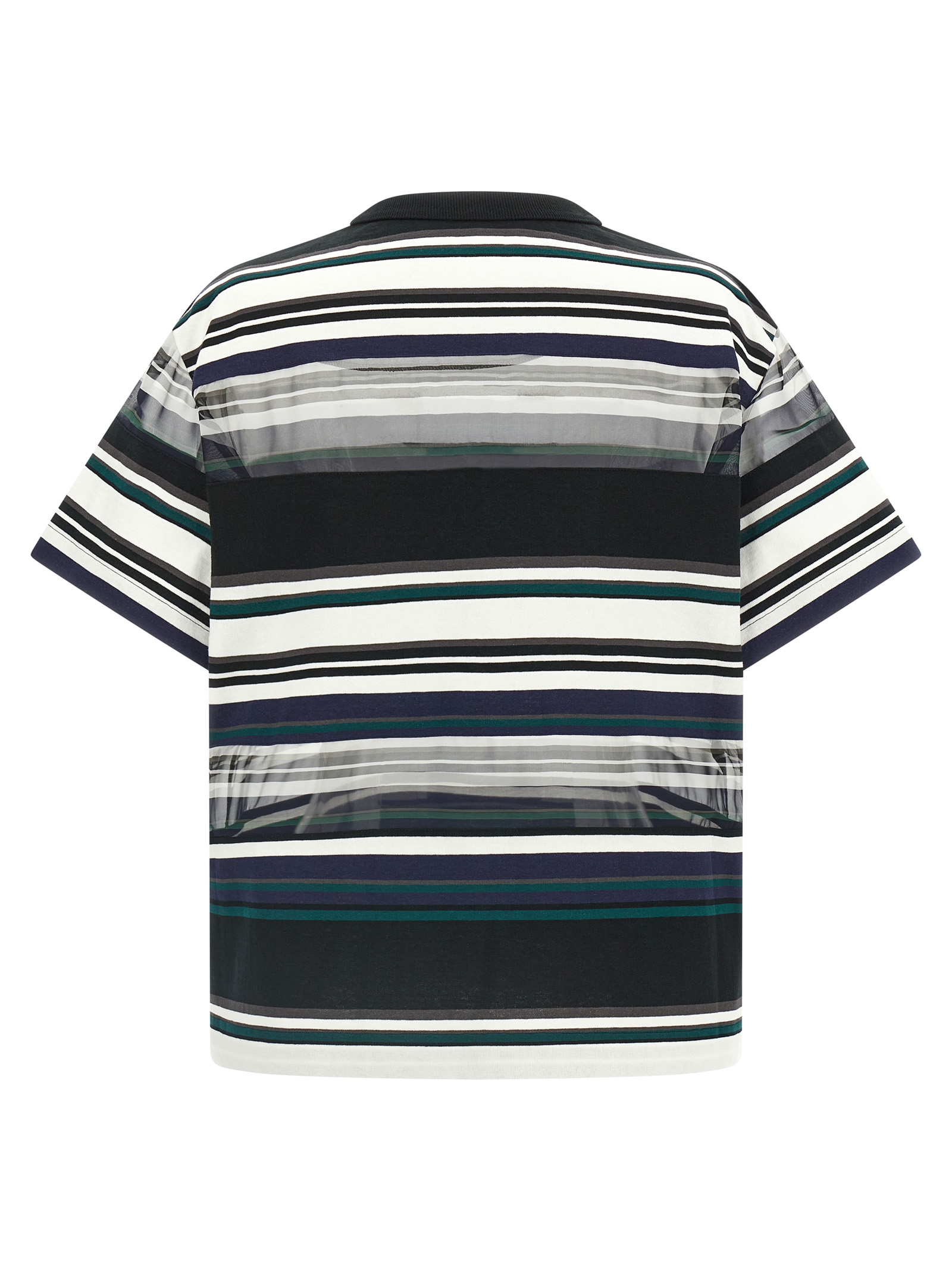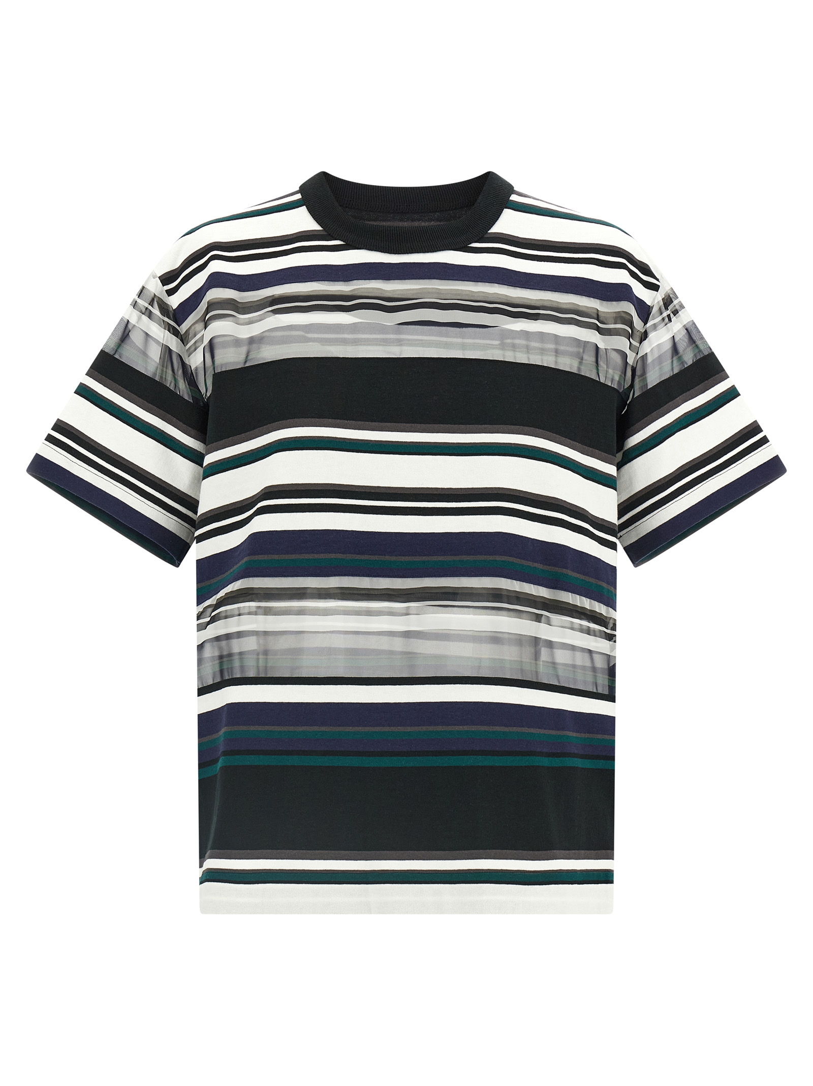 Футболка з бавовни з горизонтальними смужками та напівпрозорими вставками з органзи, круглий виріз, короткі рукави.