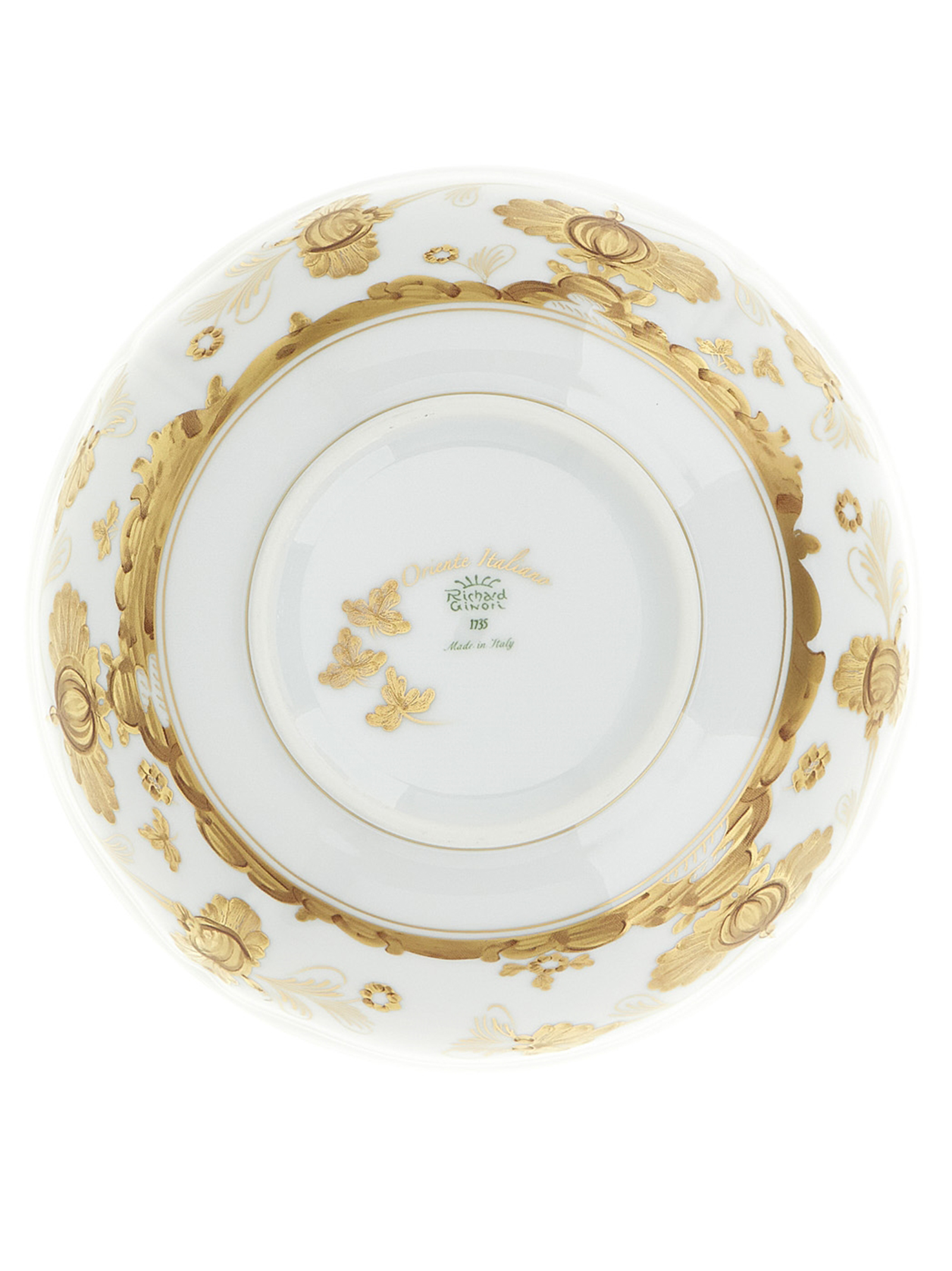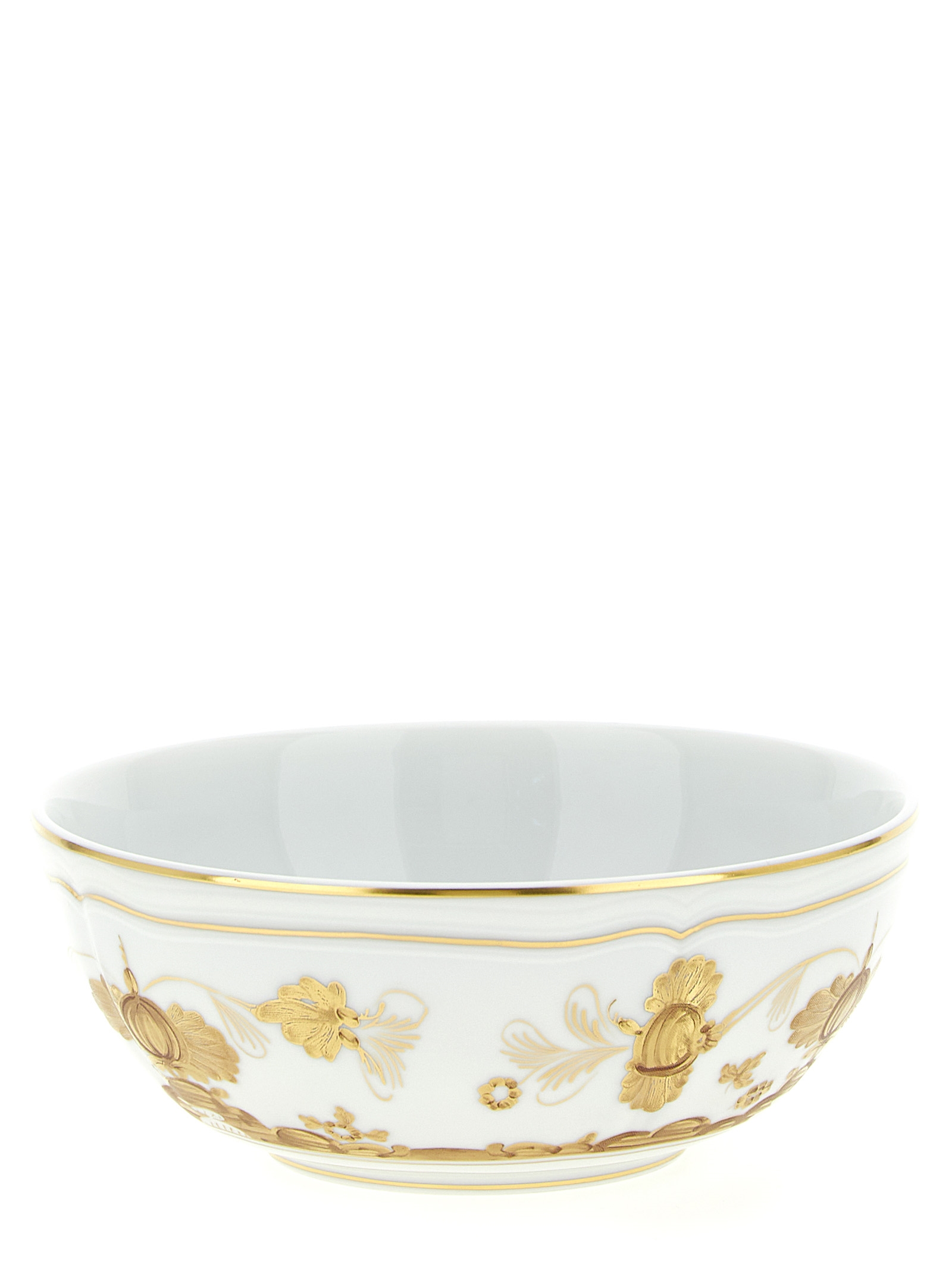 Porcelain cap with white Aurum decoration and gold thread. 'Oriente Italiano' collection. Not suitable for microwave. Dishwasher safe with gentle cycle.