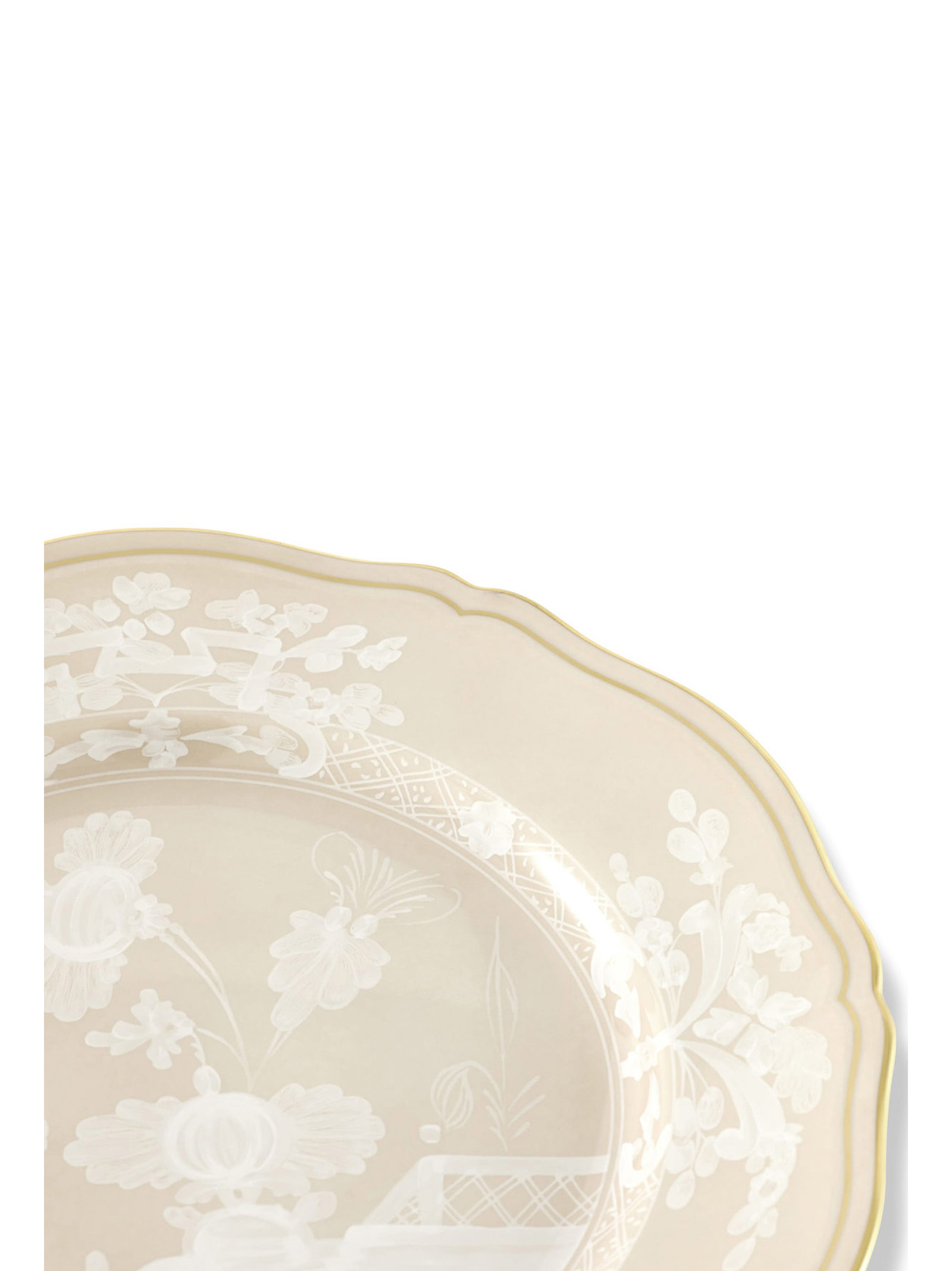 Порцелянова обідня тарілка з меренговим декором та золотою ниткою. Колекція 'Oriente Italiano'.