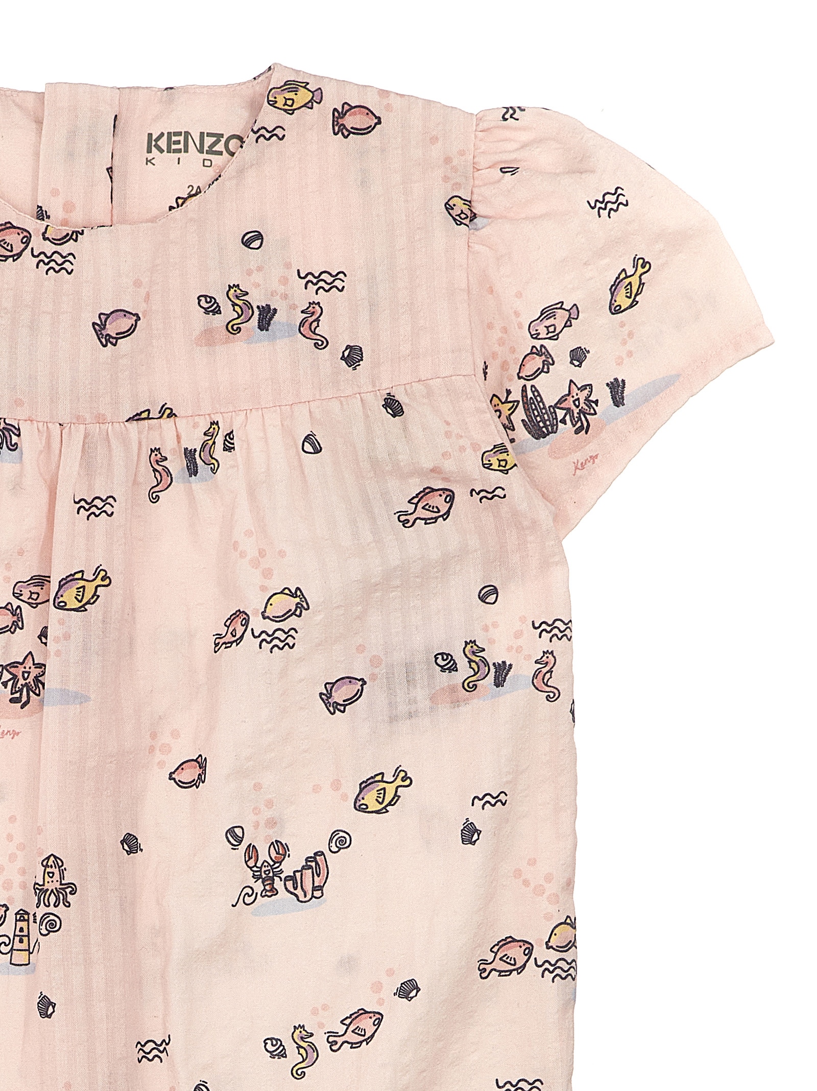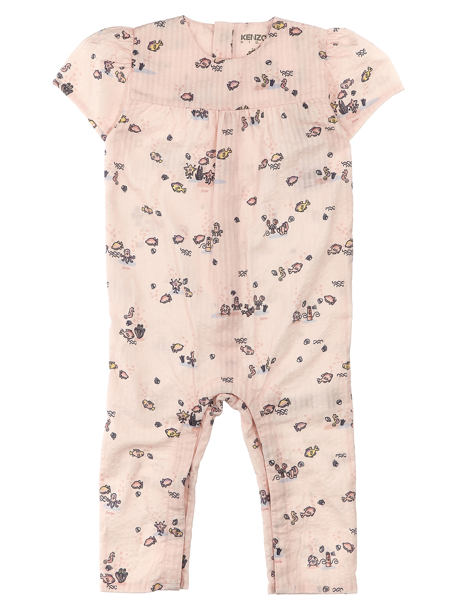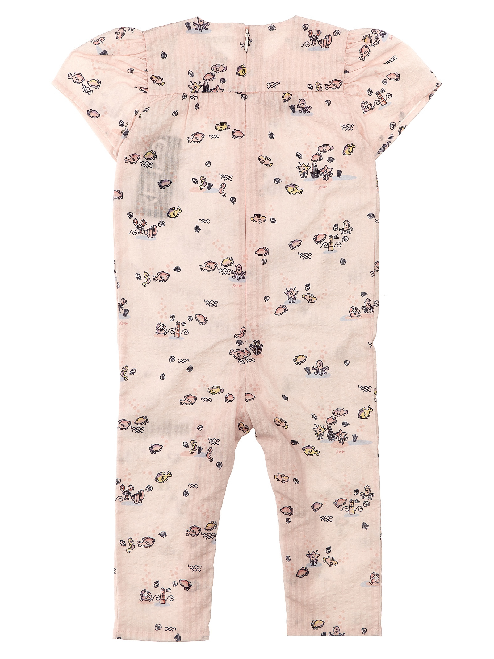 ДІТИ Бавовняний комбінезон з принтом по всій поверхні, застібка на блискавці ззаду, довгі штанини, короткі рукави.