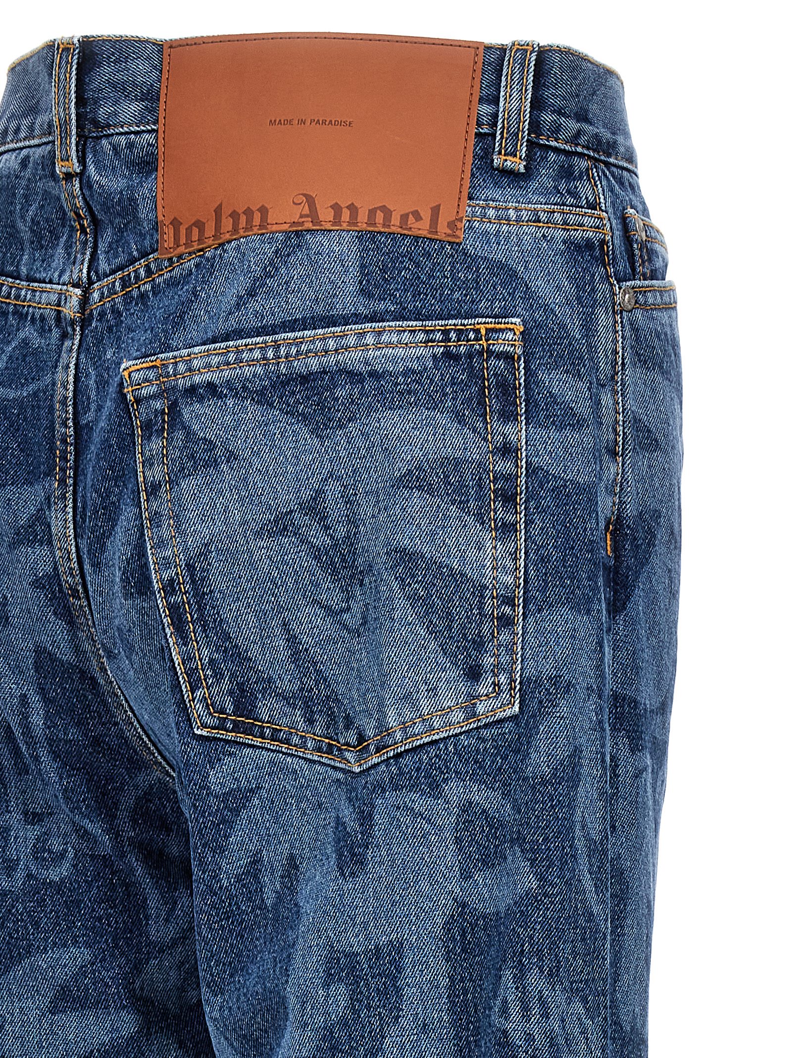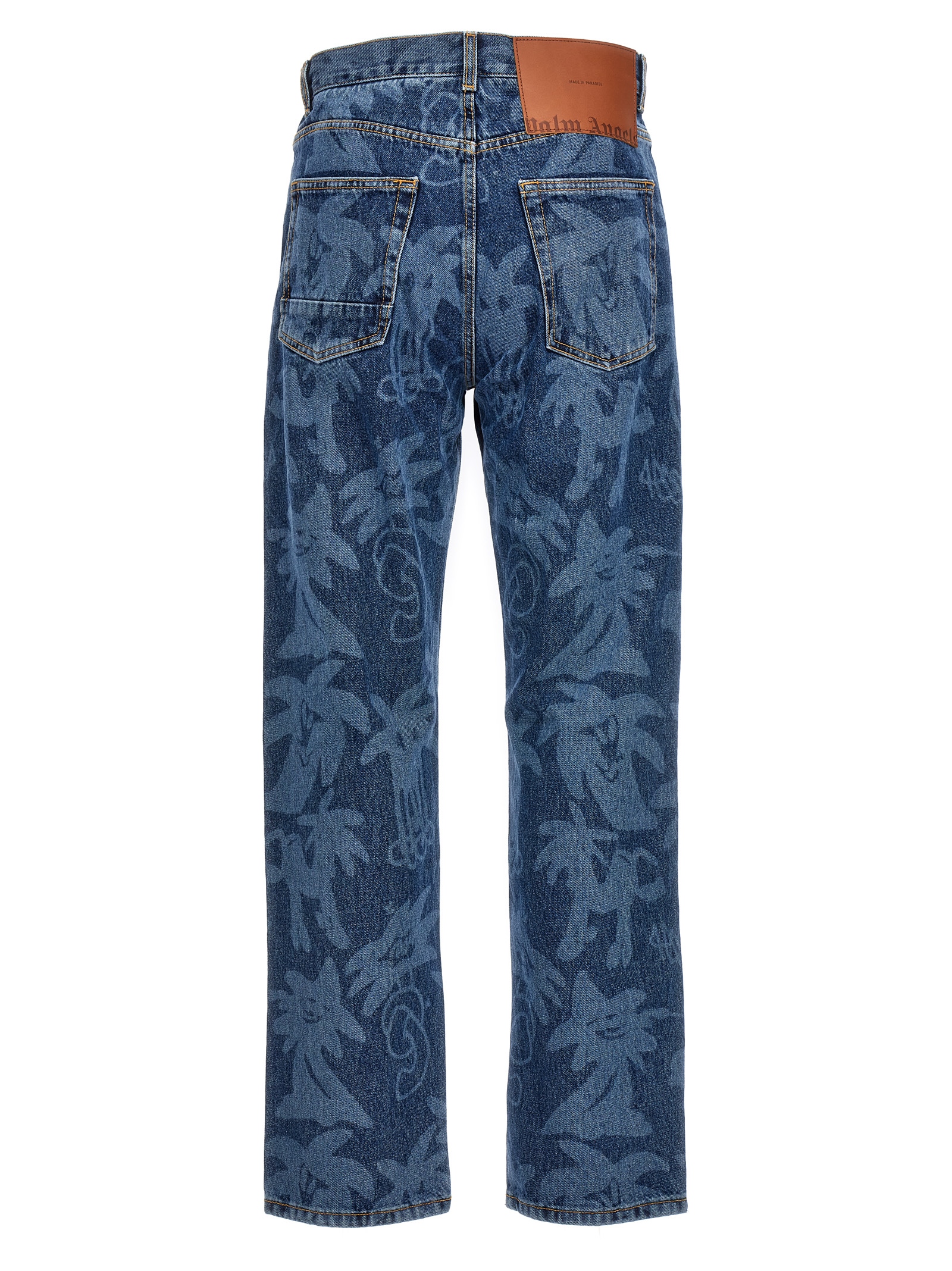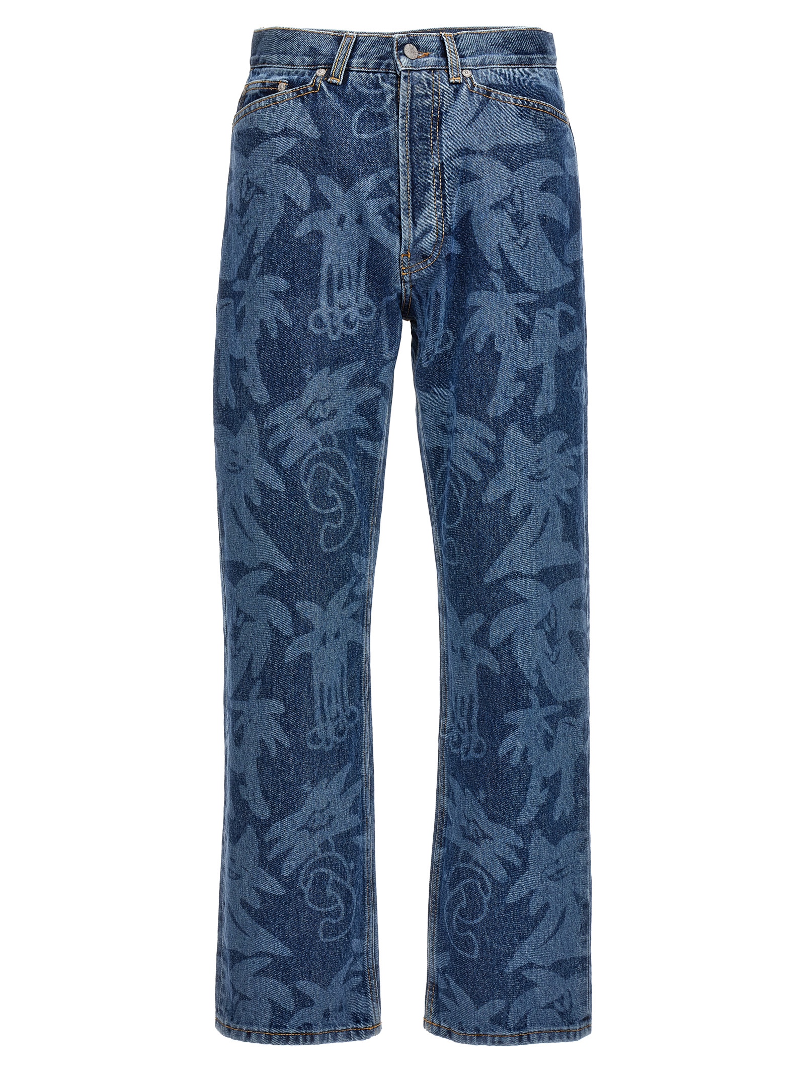 Джинси Palmity Allover Laser з бавовняного деніму з принтом по всій поверхні, кнопковою застібкою, п'ятьма кишенями та великим шкіряним логотипом.