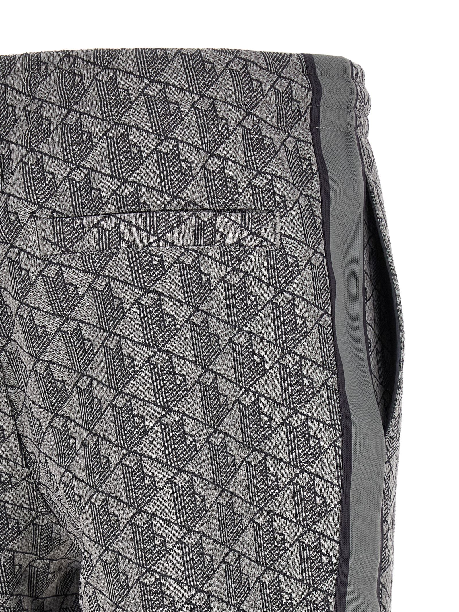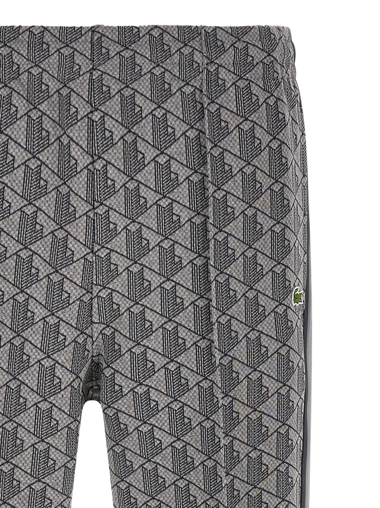 'Paris' джогери з вінтажного жакардового монограмного бавовняного бленду з бічними вставками суцільного кольору, прямі штани, нашивка з логотипом і центральна передня строчка, еластичний пояс зі шнурком, прорізні кишені.