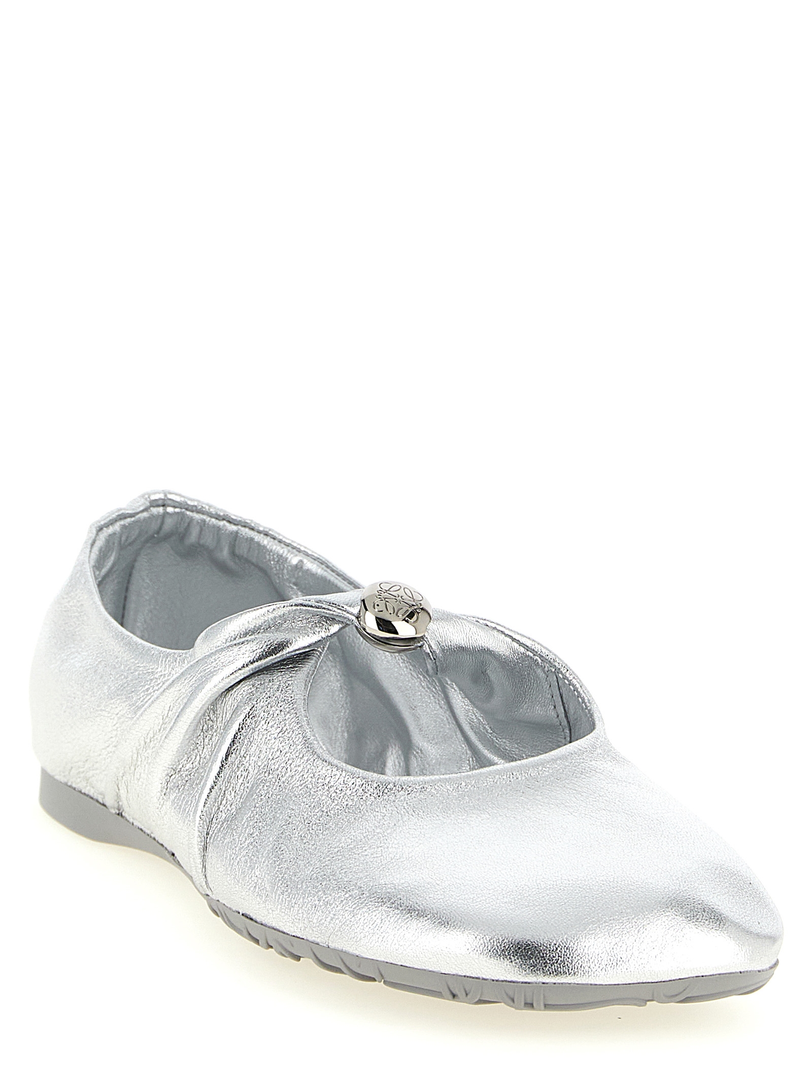 'Pebble Soft' балетки з ламінованої ягнячої наппа, гнучкий верх, іконічний носок у формі пелюстки, ремінець з металевою деталлю з гравіруванням логотипу Anagram, м'яка шкіряна устілка, гумова підошва.