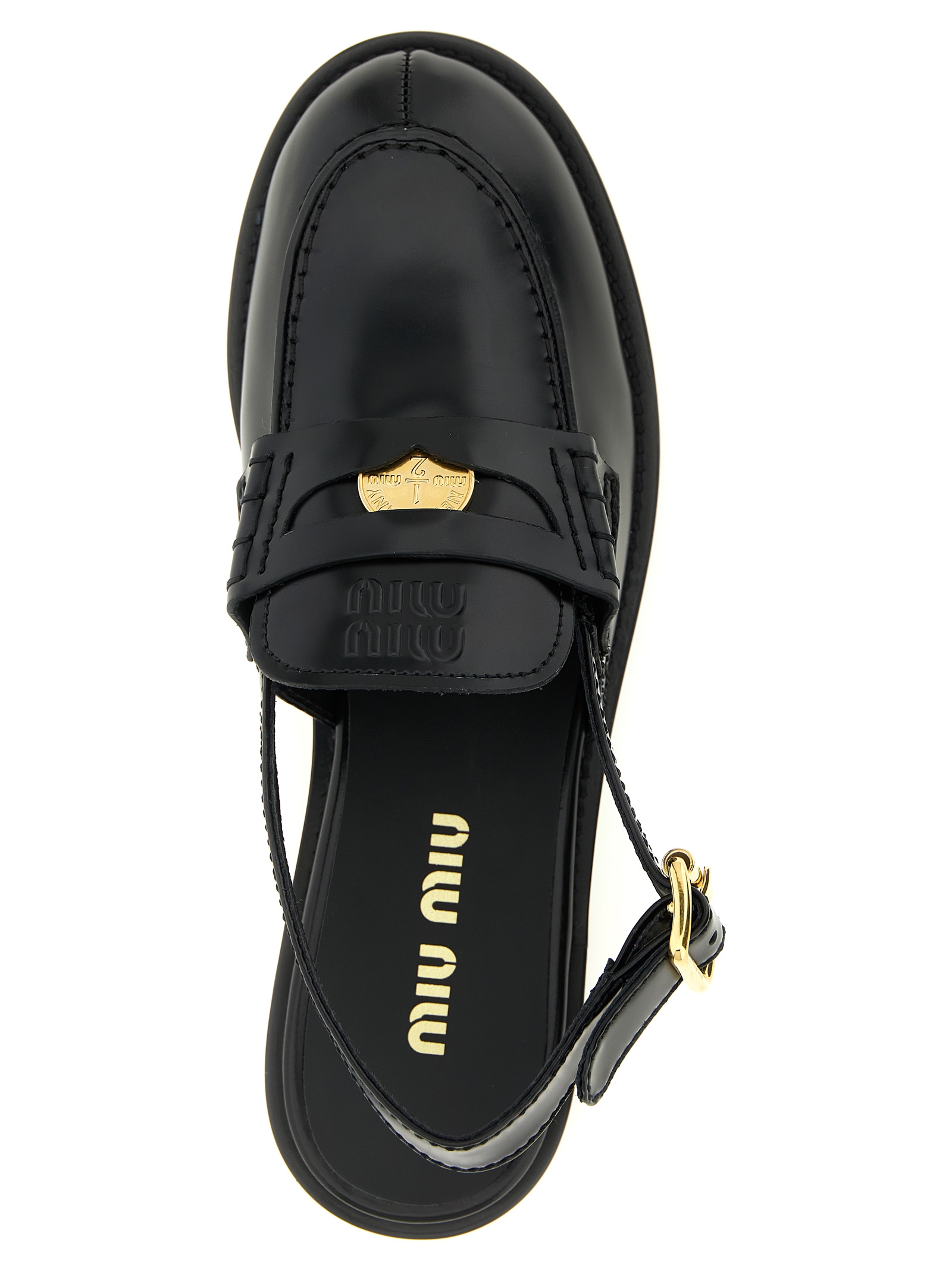 'Penny Loafers' шкіряні мюлі з металевою деталлю у вигляді пенні та втиснутим логотипом спереду, регульований ремінець, гумова підошва.