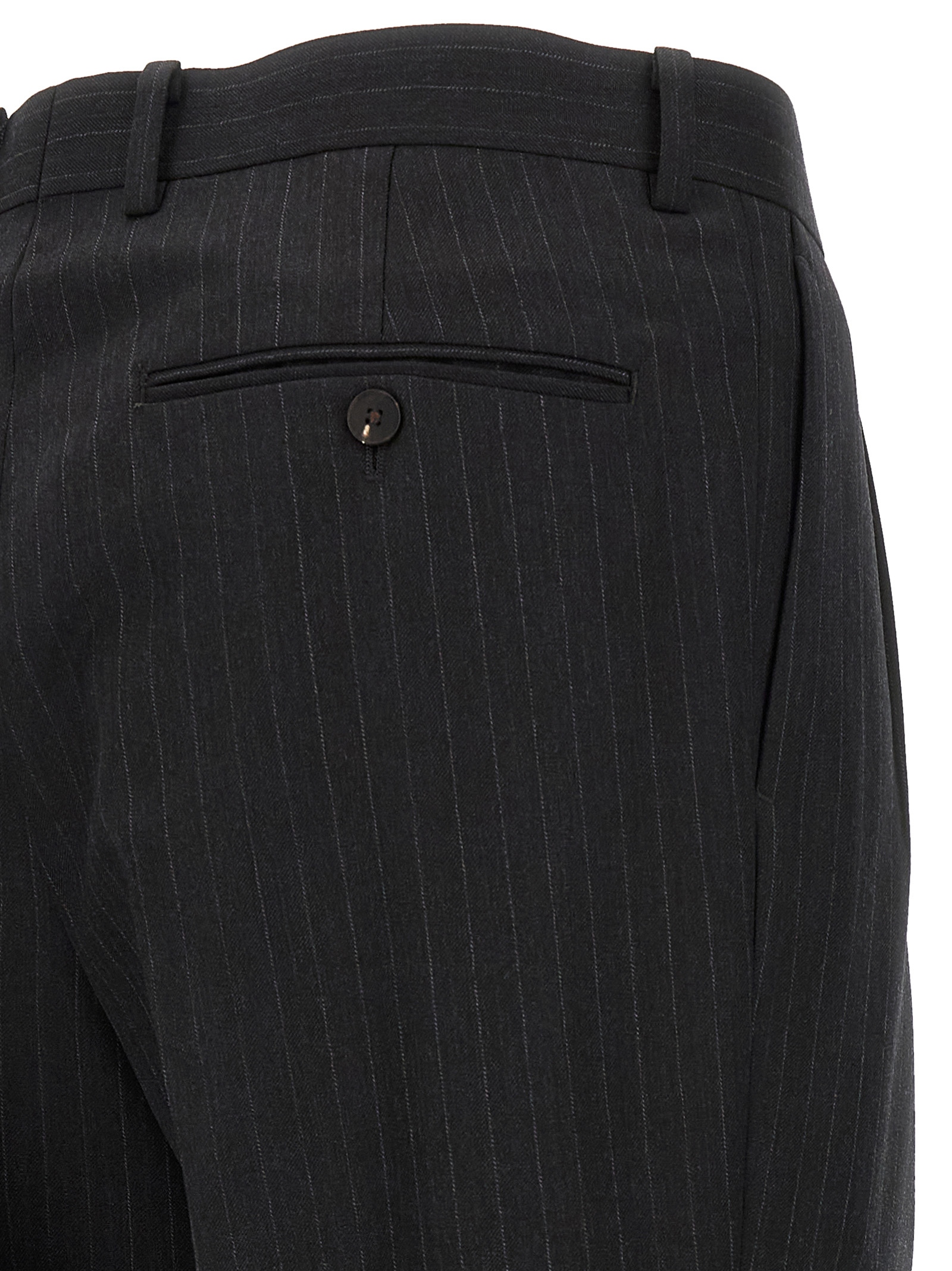 Брюки з вовни Merino Extra Fine Super 130 для основи та пряжі англійської вовни Bluefaced для смужкового візерунка, смужки, прасовані ноги, застібка на блискавці та ґудзику, кишені.