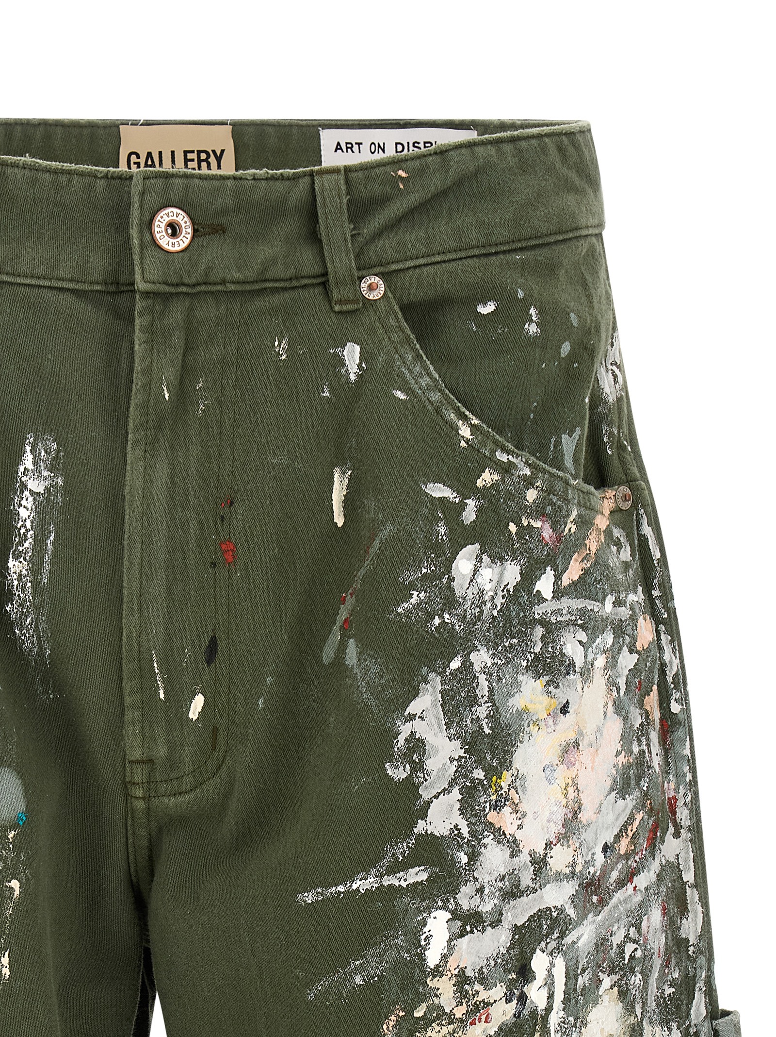 Бермуда 'Platoon Painter' із бавовни, розмальовані вручну майстрами лос-анджелеського будинку моди GALLERY DEPT., широкий крій, передня застібка на блискавку та ґудзик, п’ять кишень та шкіряна бирка з логотипом на спинці.