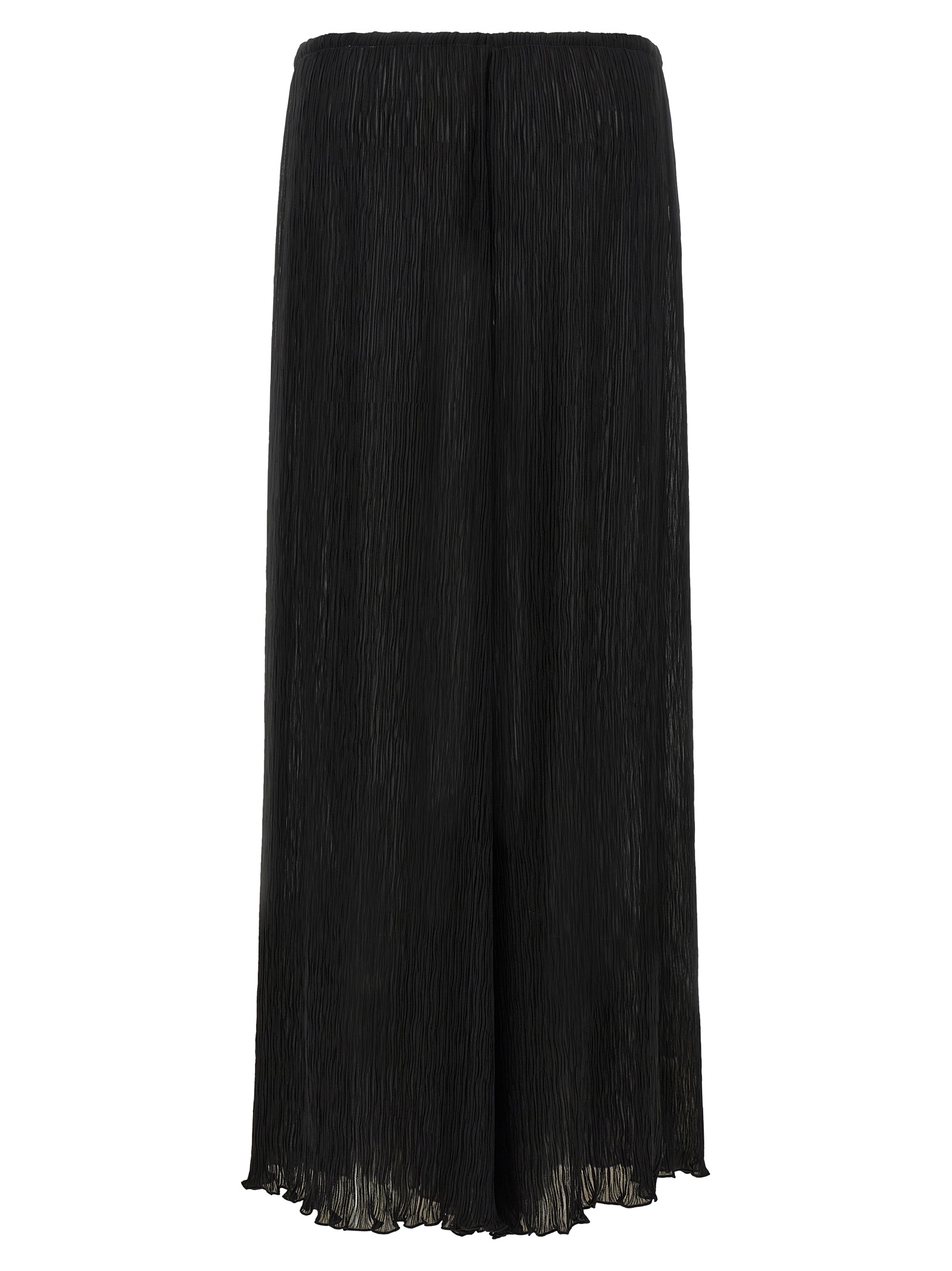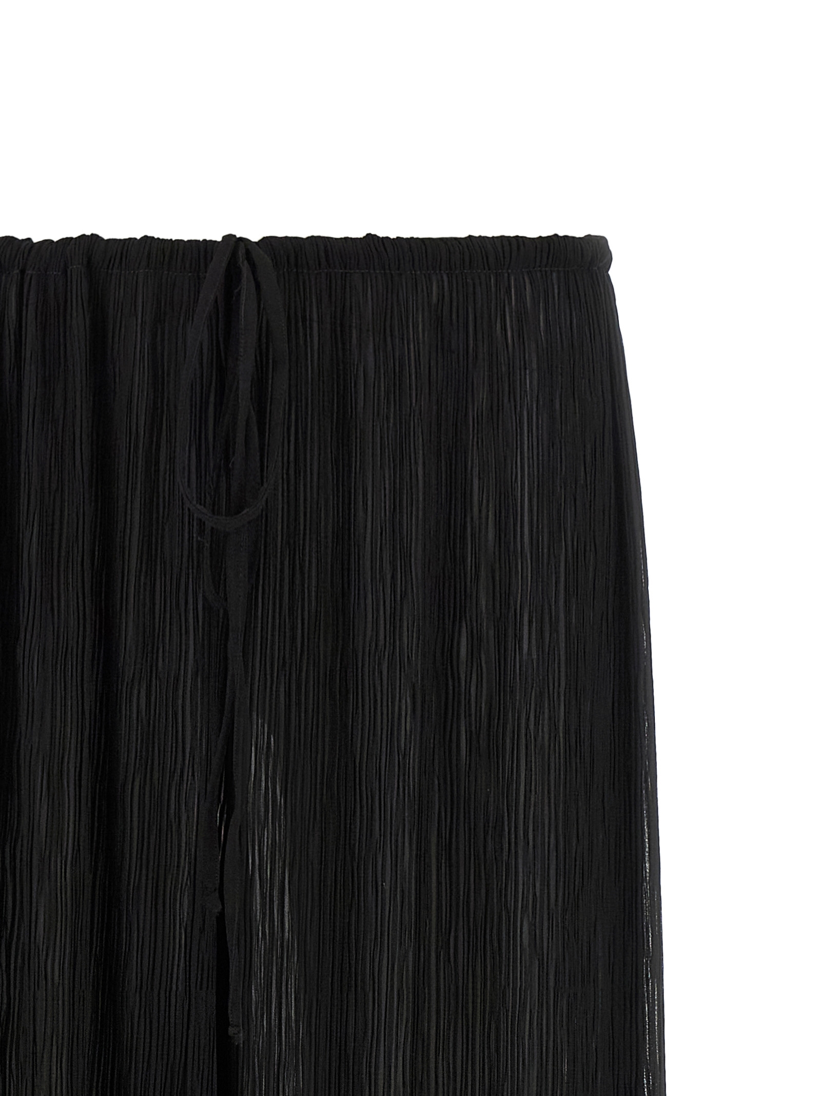 Легкі штани з мікроскладками з георгетту, широкі прямі штани, кулиска на талії.