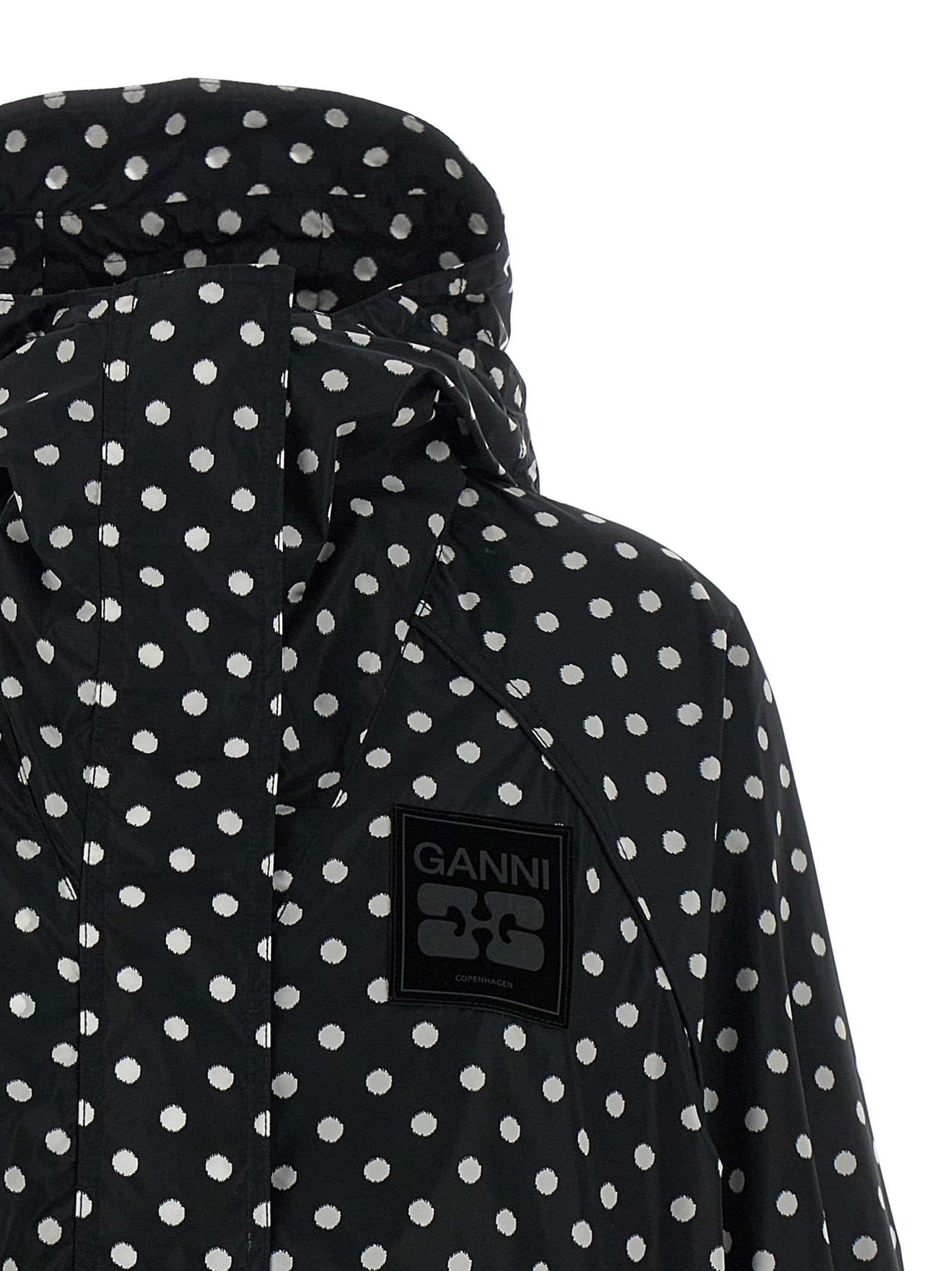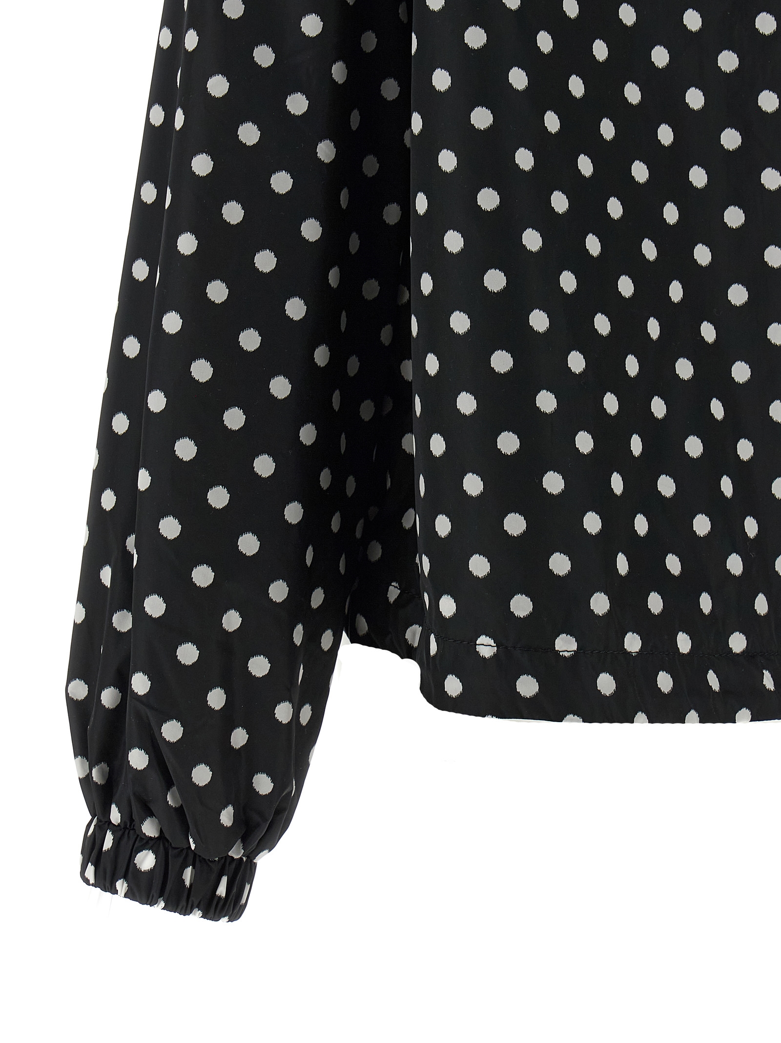 Нейлонова вітровка з принтом в горошок по всій поверхні, капюшон, силіконовий логотип та застібка на блискавці та передні кнопки, кишені, довгі рукави з еластичними манжетами, шнурок на подолі, щільна нейлонова підкладка. СТІЙКИЙ: продукт виготовлений з переробленого поліаміду.