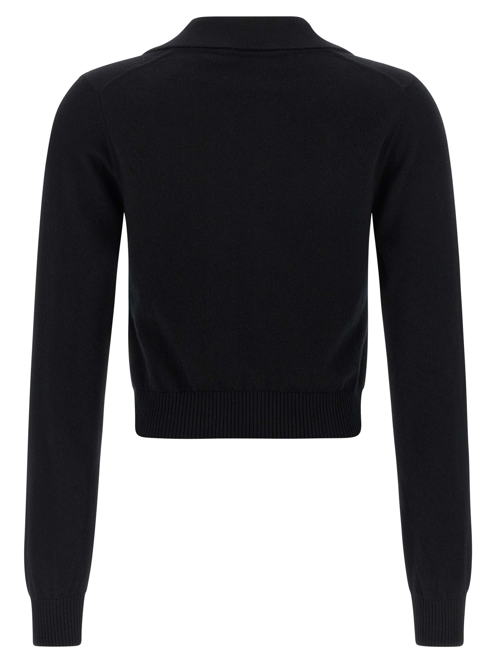 Светр з кашеміру в стилі поло з коміром та V-подібним вирізом, вишивка логотипу в тон спереду, довгі рукави з манжетами та трохи зменшеними плечима.