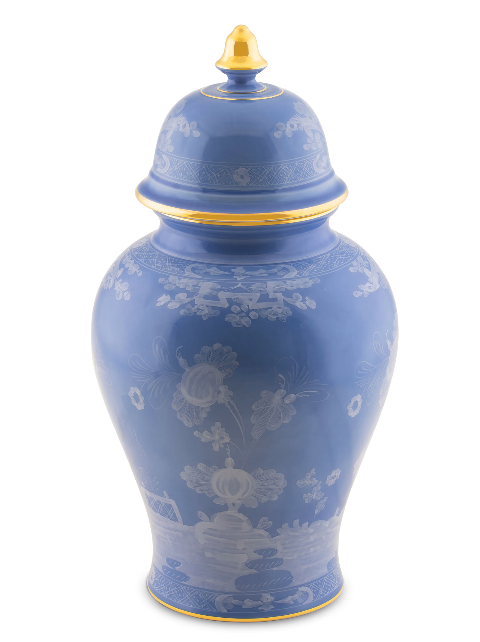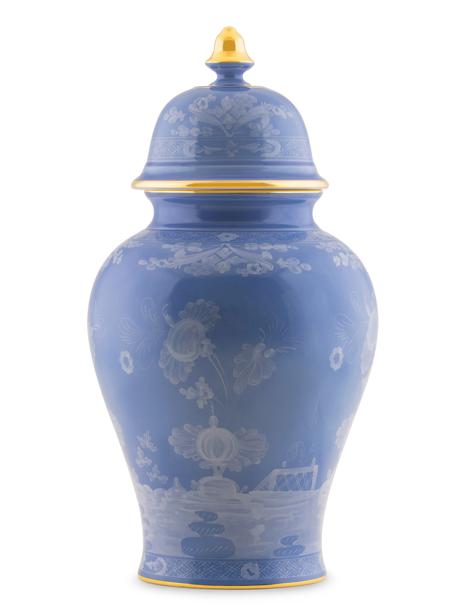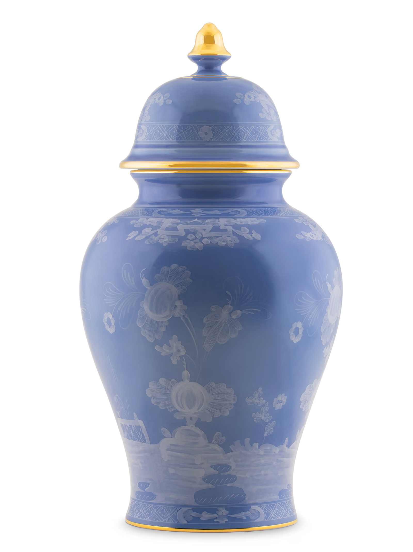 Potiche велика порцелянова ваза з декором перивінклу та золотим ниткою. Колекція 'Oriente Italiano'. Не підходить для мікрохвильової печі. Мити / чистити вручну.