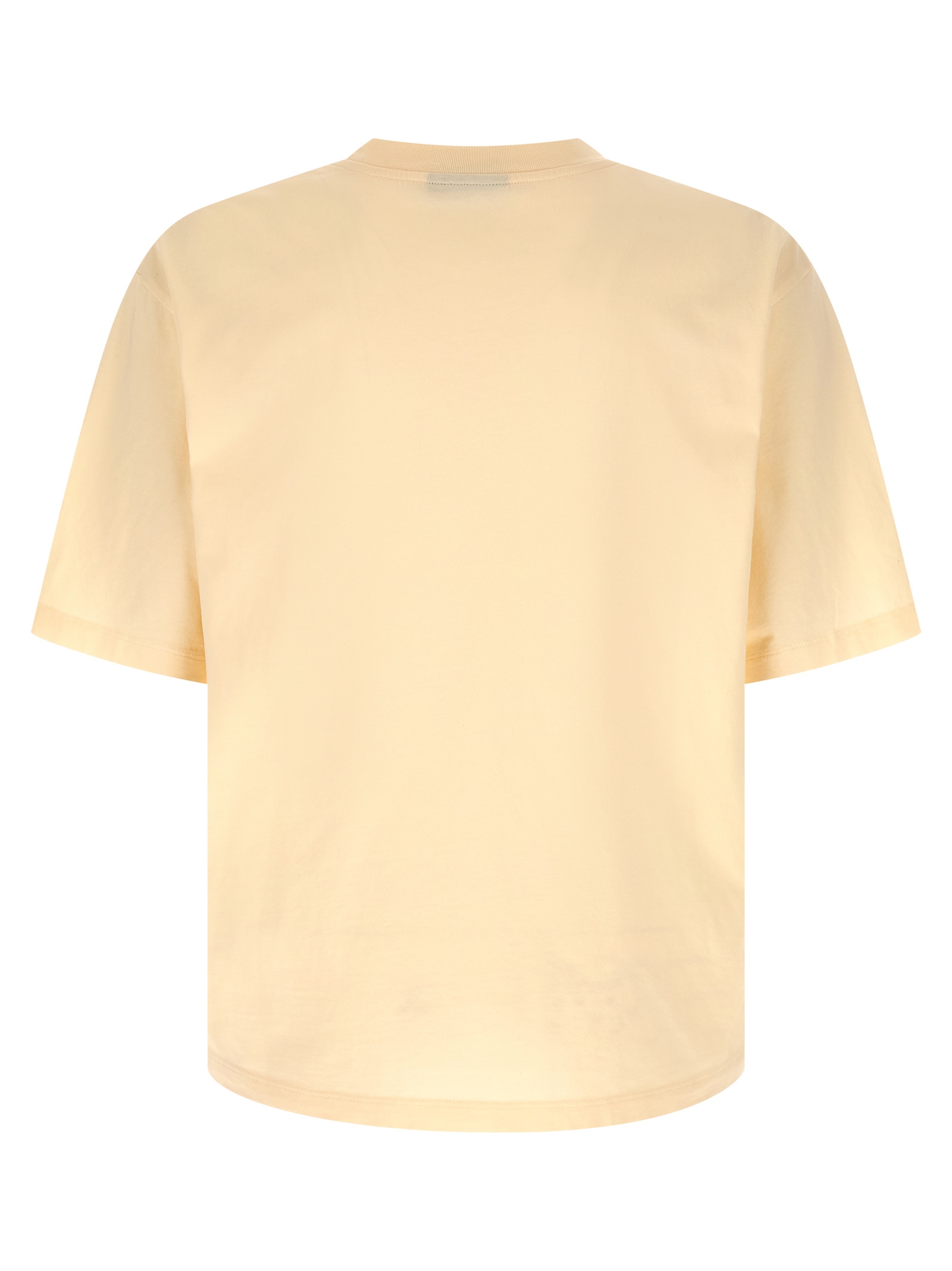 Бавовняна футболка з джерсі, передній принт, круглий виріз, бічні розрізи, асиметричний поділ.
