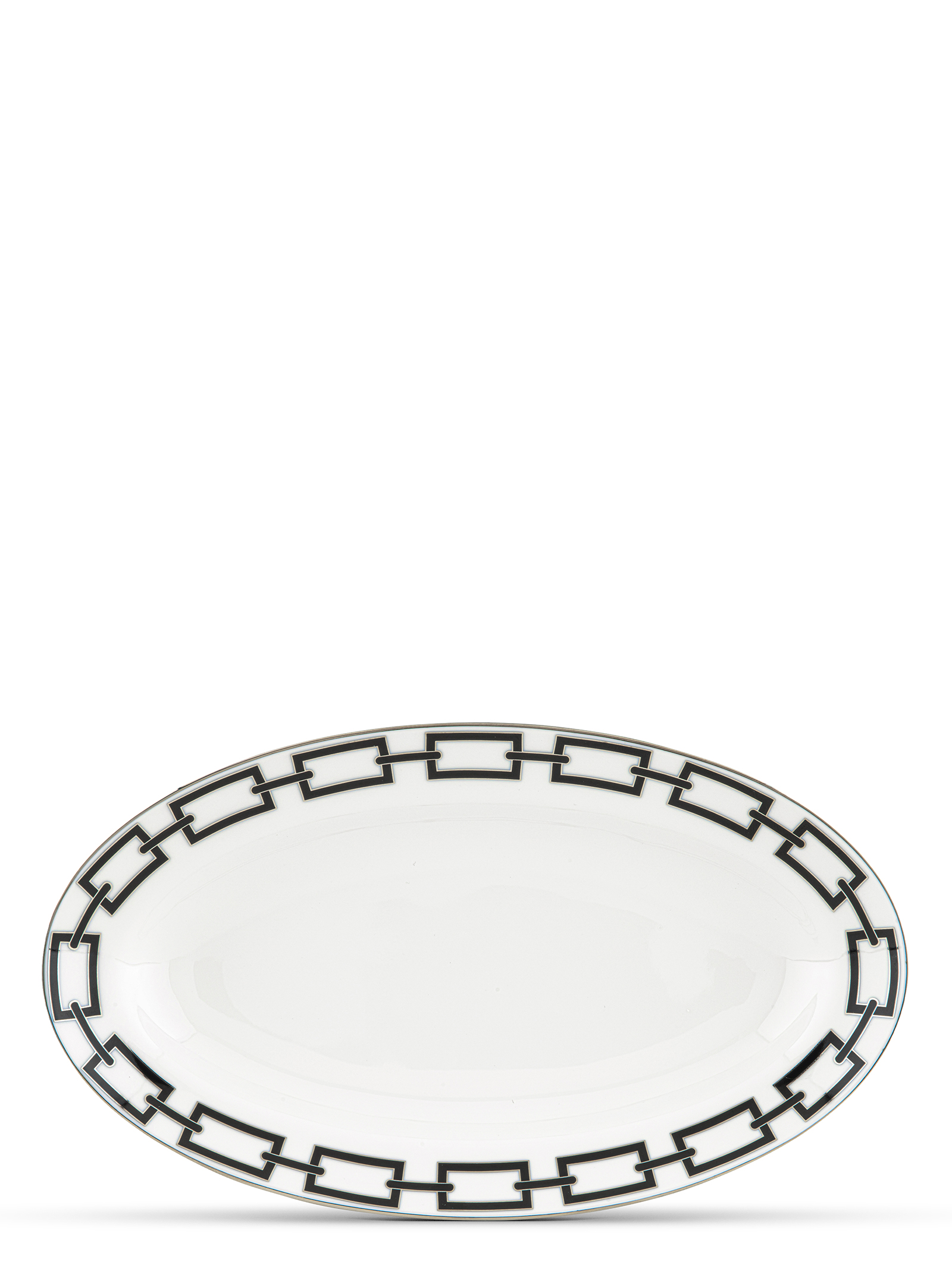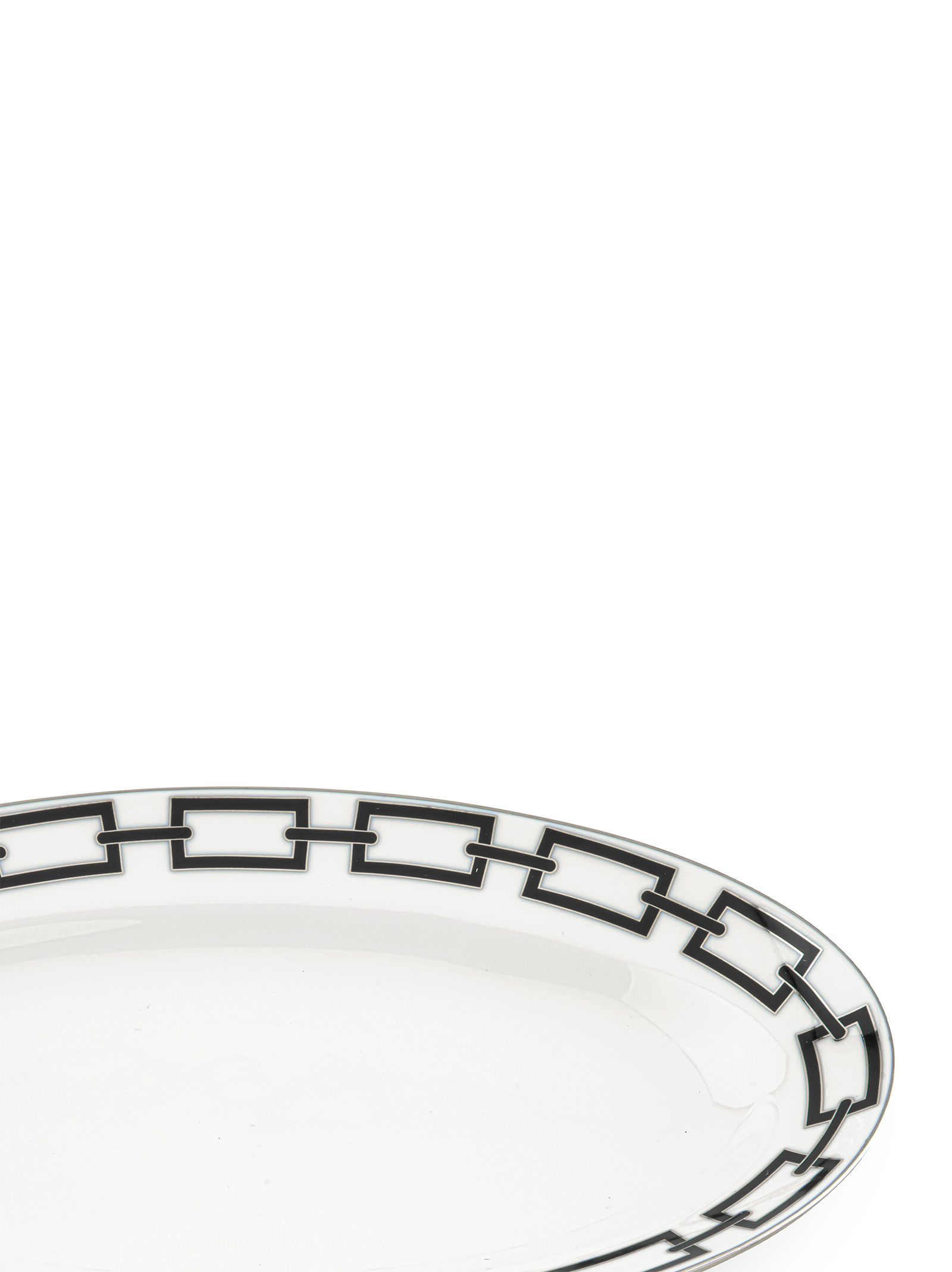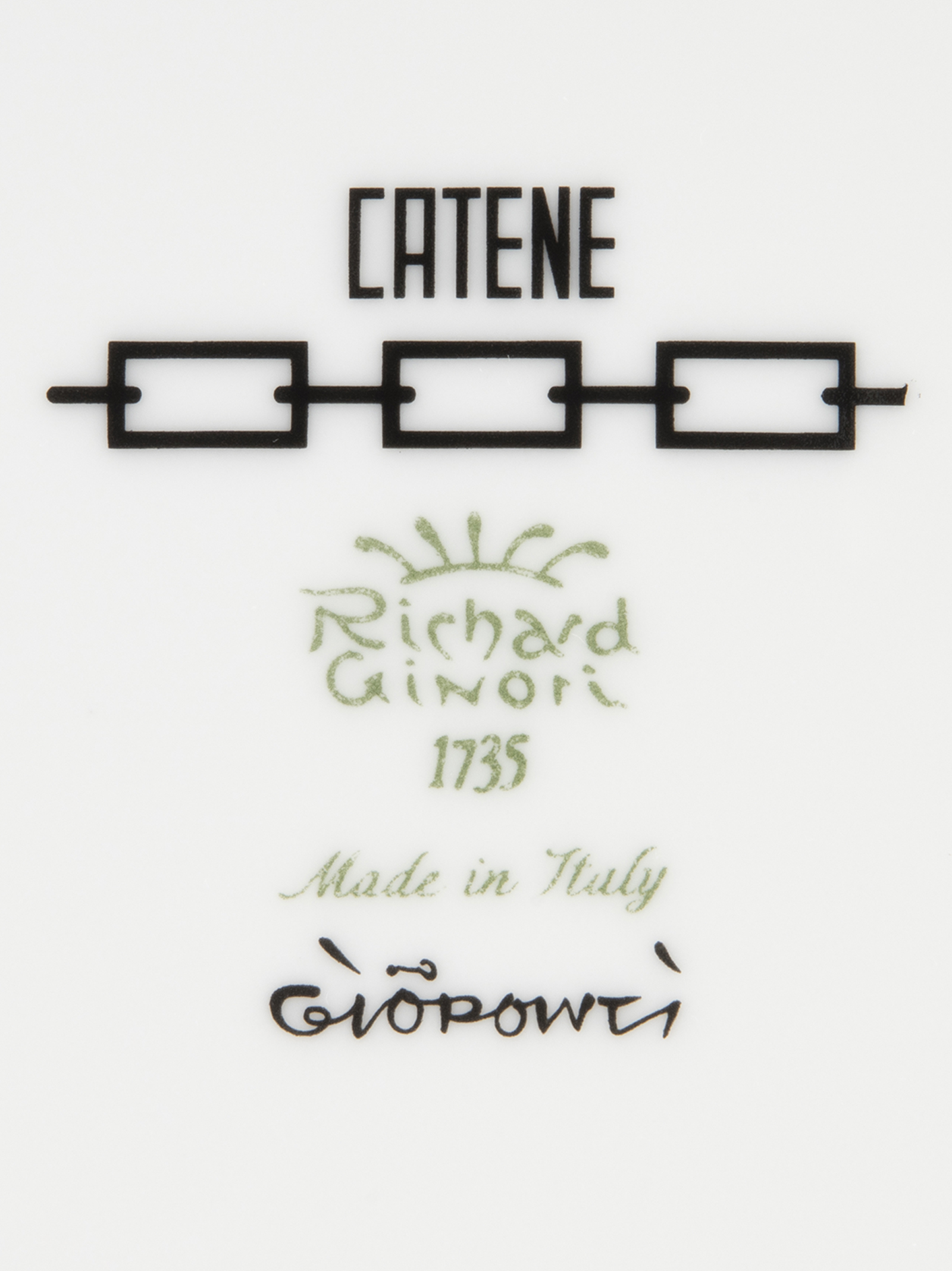 Порцеляна Raviera з чорною та платиновою декорацією. Колекція 'Catene' від Gio Ponti. Підходить для мікрохвильової печі. Можна мити в посудомийній машині.