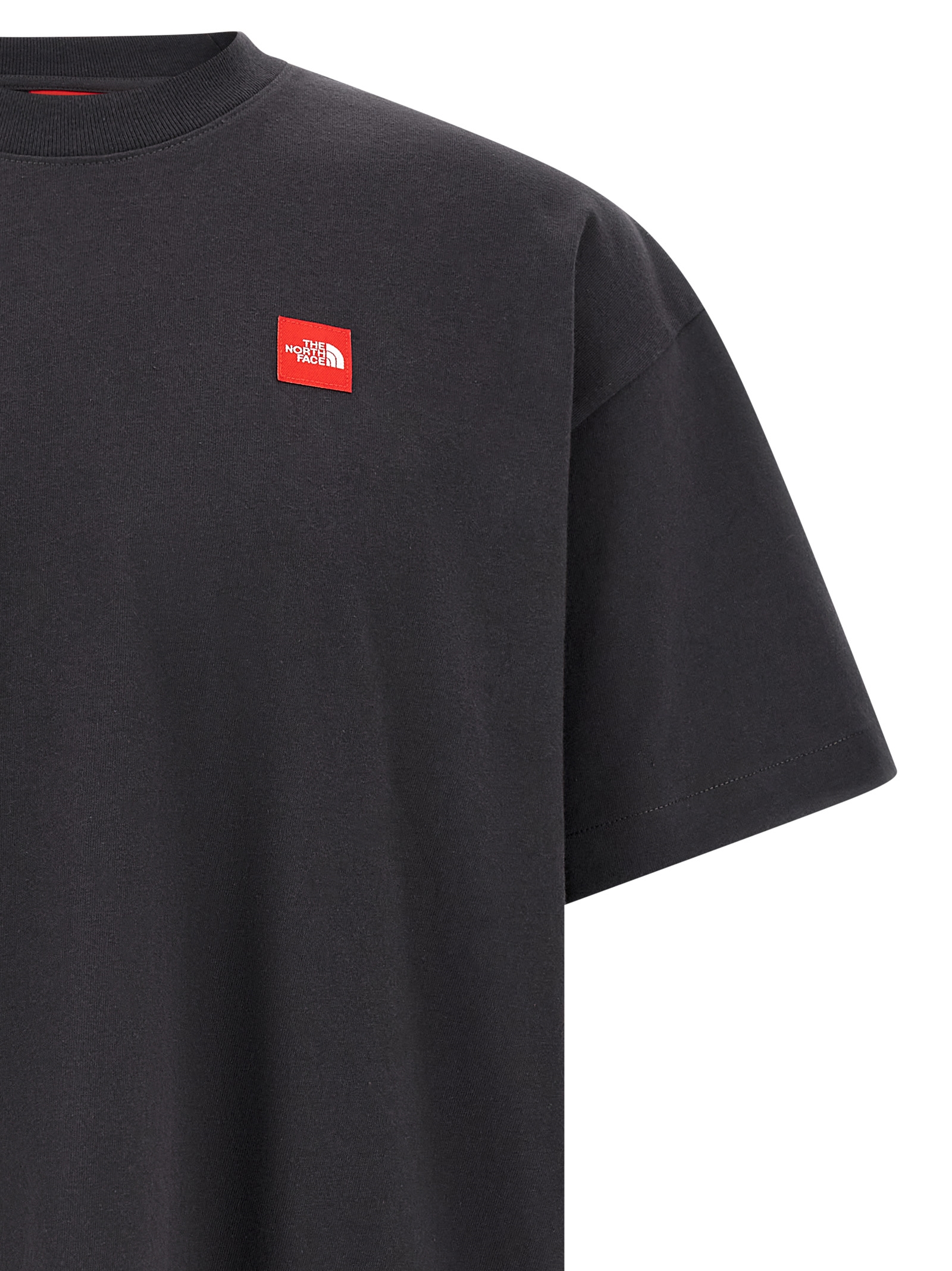 Футболка з відновлюваної бавовни, нашивка логотипу 'Red Box' спереду, круглий виріз, короткі рукави зі зміщеними плечима. УПРАВЛЯЄМО: Цей виріб виготовлений з регенеративної бавовни.